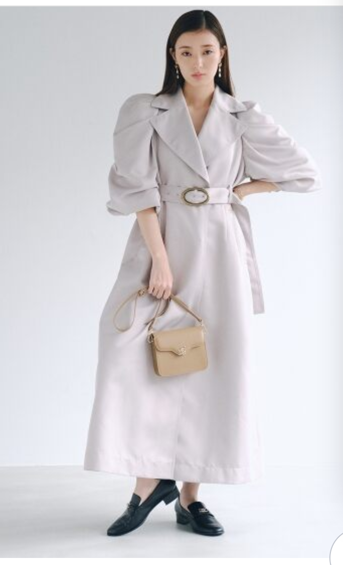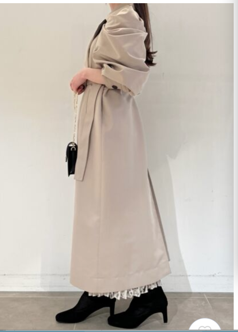 深めのタックを効かせボリュームを持たせたパワーショルダーが特徴的。「SNIDEL」ならではの手法でベーシックアイテムをモードにアップデートした、こだわりのトレンチコートが届きました。存在感のある大きめの襟はトレンド感を高め、小顔効果も期待大。付属のベルトでウエストをマークしワンピース風に着こなすのもオススメです。