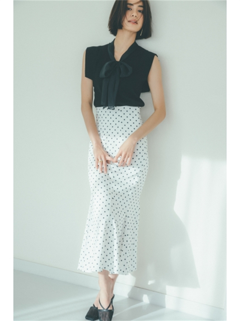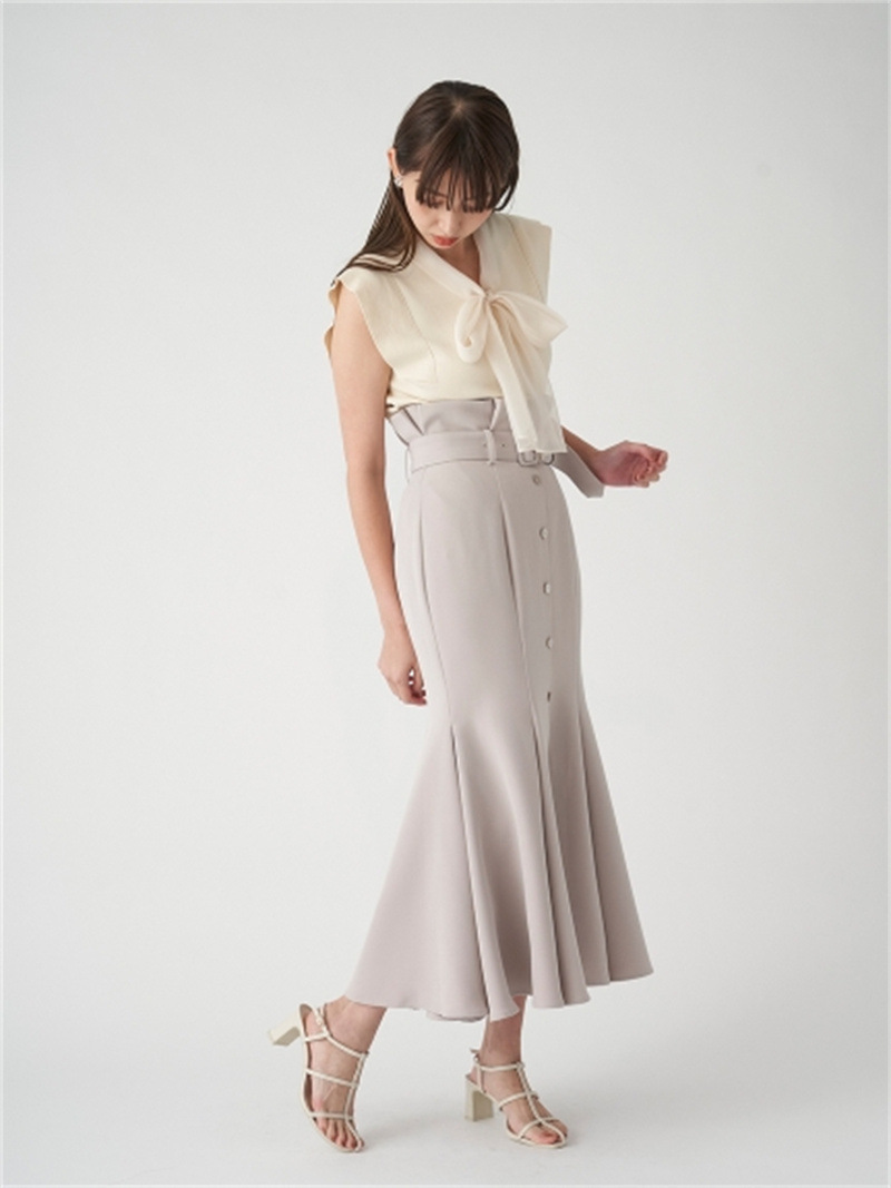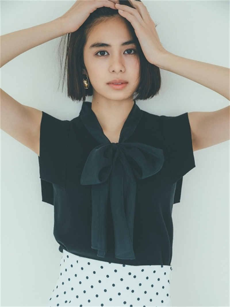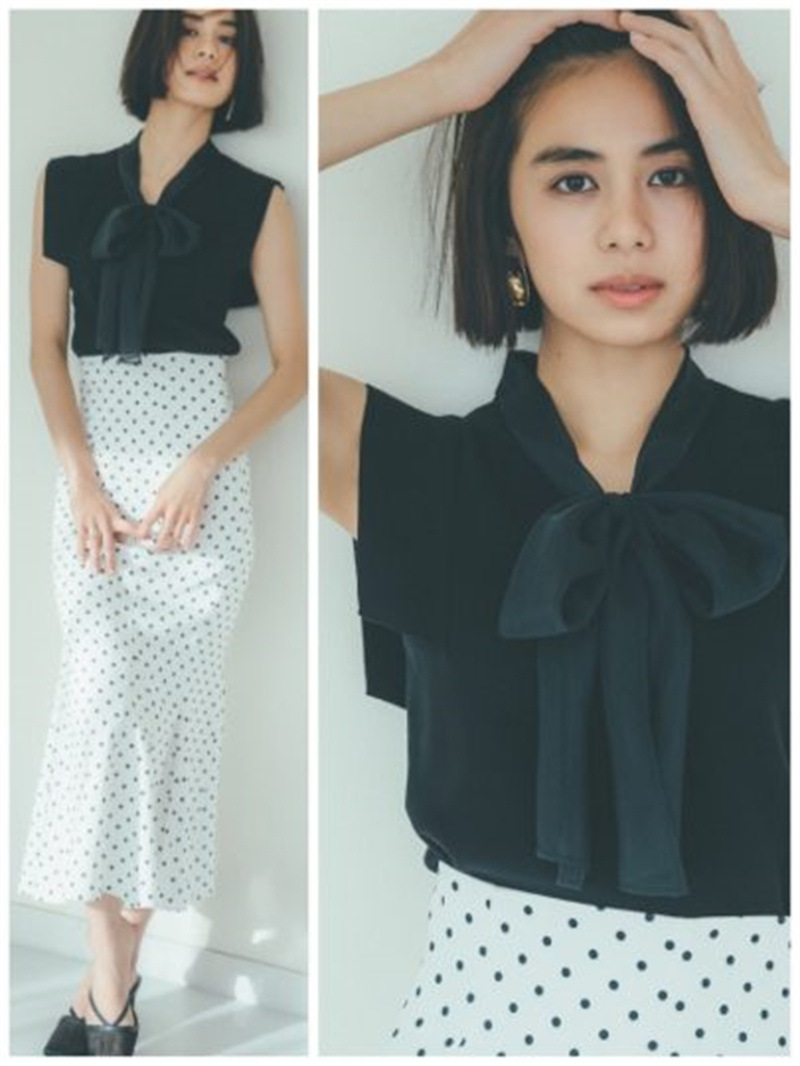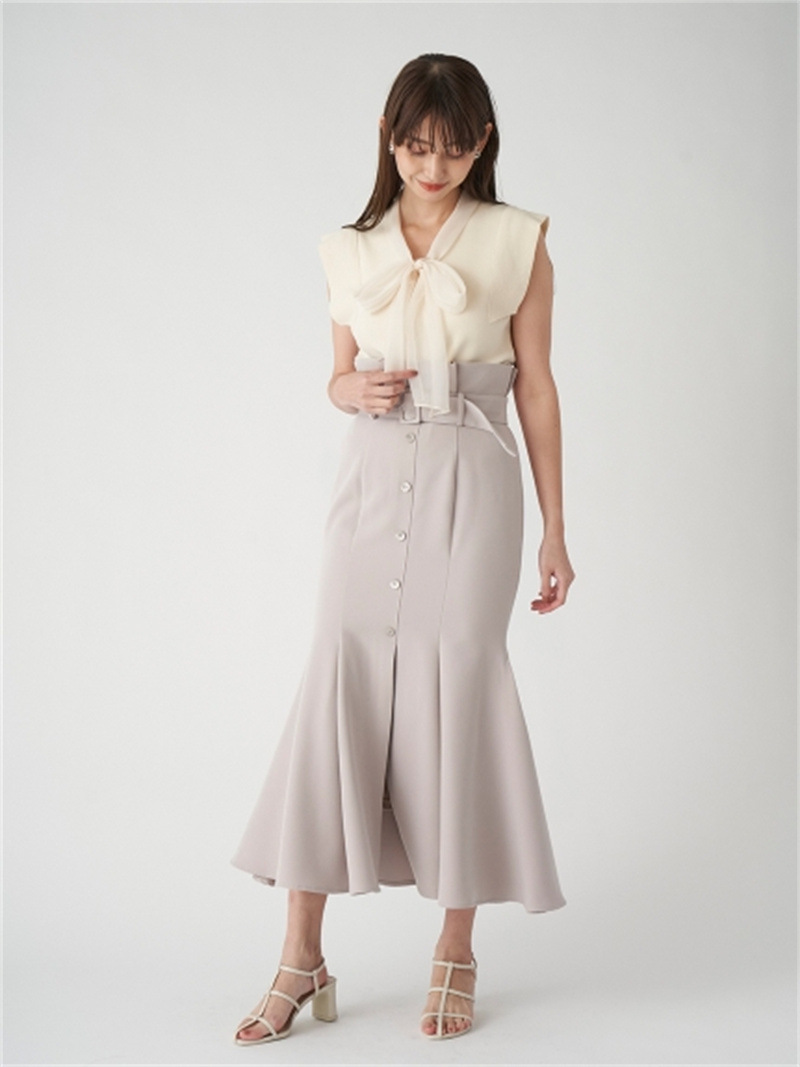 品の良い総針ニットに、シアーなオーガンジーの襟をドッキングし表情豊かに仕上げたプルオーバー。胸元で結んだボウタイリボンやフリリーなスリーブで、女性らしくエレガントなルックスにまとめています。ボディラインに優しく沿うすっきりとしたシルエットは様々なアイテムと好相性。タックインしてももたつかないので旬のハイウエストボトムともバランス良く決まります。
