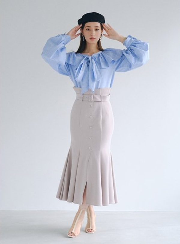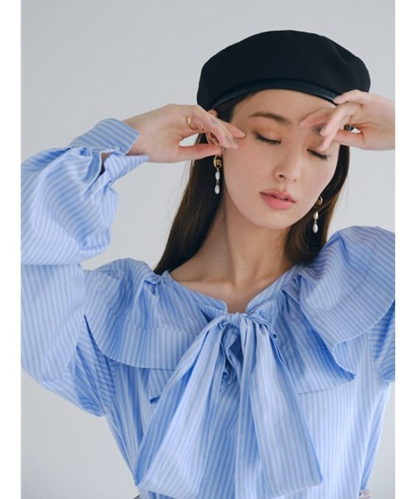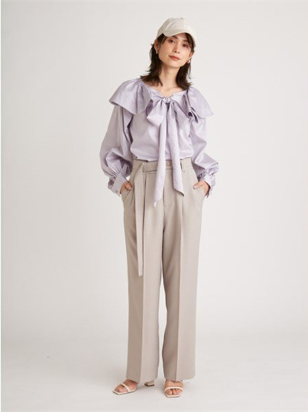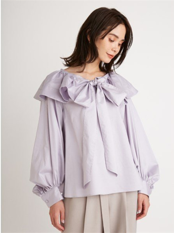 エレガントに波打つボリューミーなフリル襟が印象的。キュッと結んだ大きめのリボンも相まって、大人の愛らしさを存分に引き立ててくれるブラウス。ふんわりと丸みを持たせたボリュームスリーブでトレンド感もしっかりとKEEP。パンツともスカートとも相性が良く、ボトムスにINしてすっきりと着こなすのがオススメです。