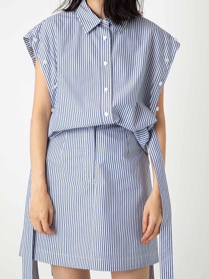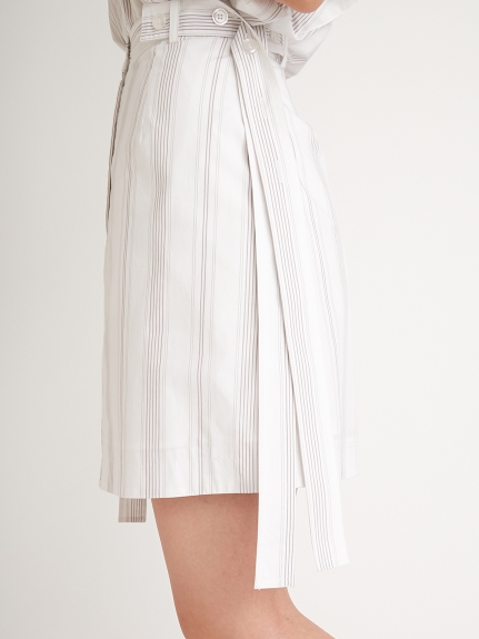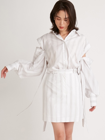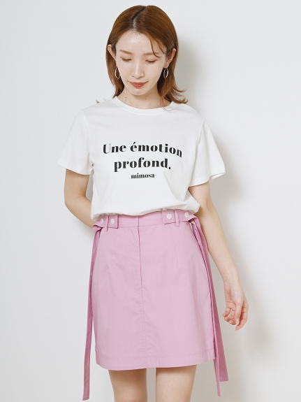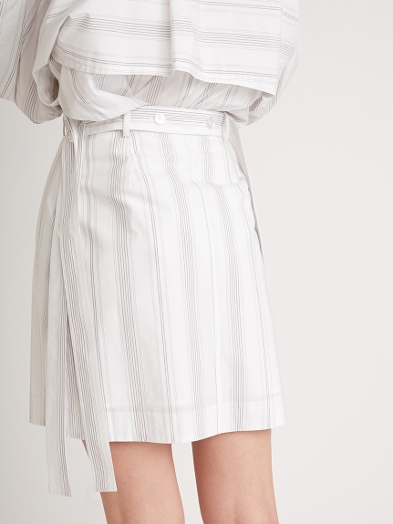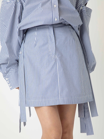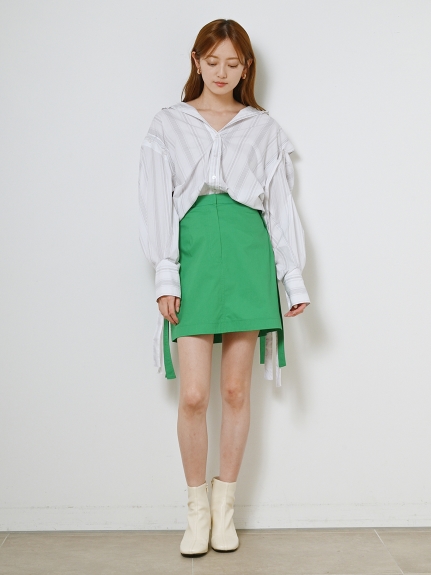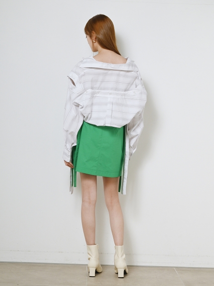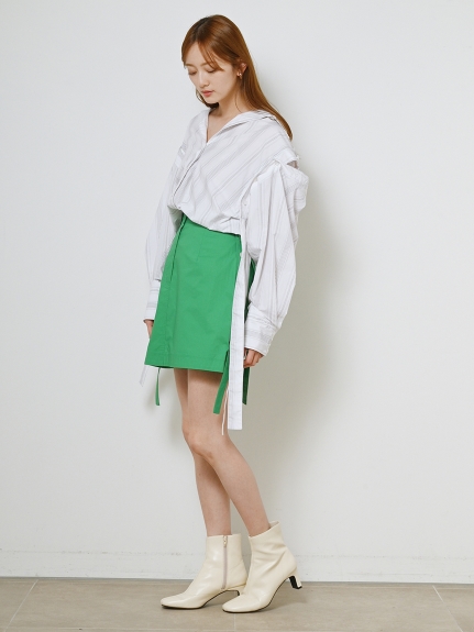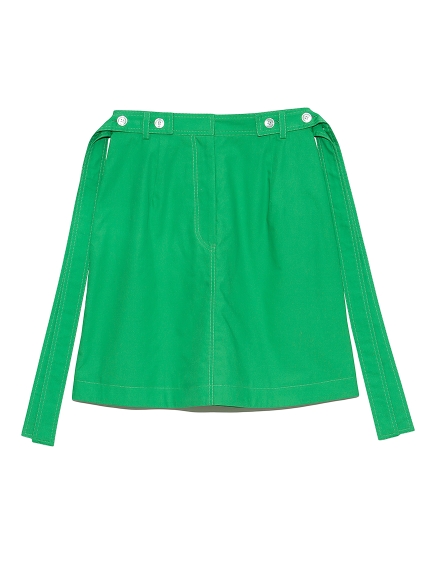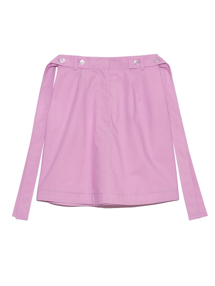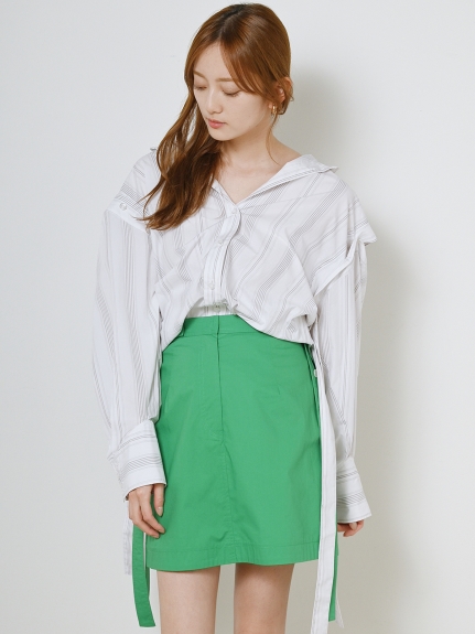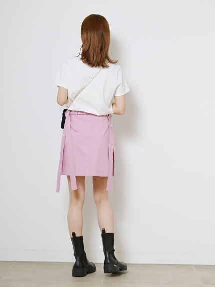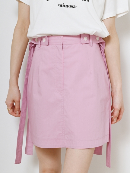 一見シンプルながら両脇にベルトを垂らした「SNIDEL」らしいこだわりのデザインが目を引くミニスカート。ベルトは取り外しできるので表情の変化も楽しめます。スタンダードな台形シルエットは様々なアイテムと好相性。同素材のオーバーシャツ(SWFB221129)を組み合わせた今年らしいセットアップスタイルもオススメです。フロントだけインすればミニワンピース風にも着こなせます。