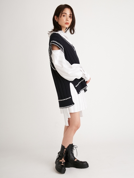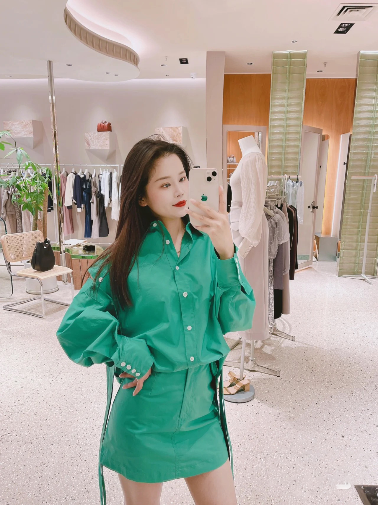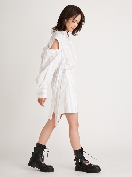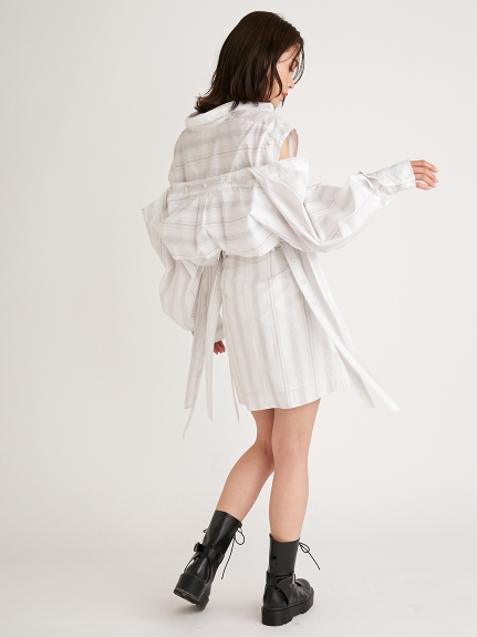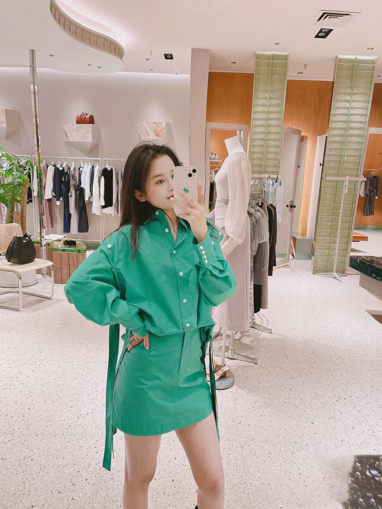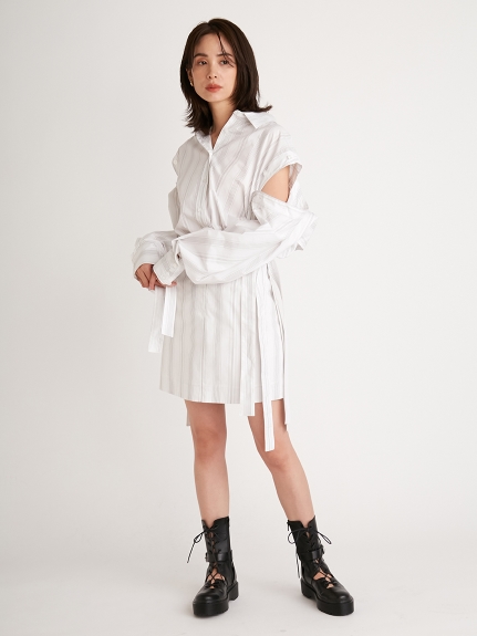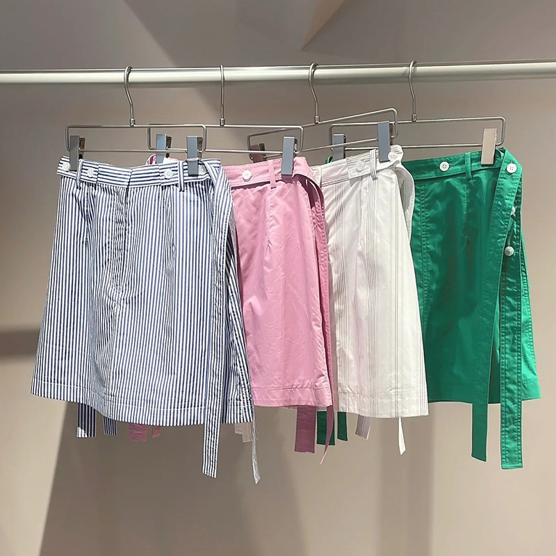 一見シンプルながら両脇にベルトを垂らした「SNIDEL」らしいこだわりのデザインが目を引くミニスカート。ベルトは取り外しできるので表情の変化も楽しめます。スタンダードな台形シルエットは様々なアイテムと好相性。同素材のオーバーシャツ(SWFB221129)を組み合わせた今年らしいセットアップスタイルもオススメです。フロントだけインすればミニワンピース風にも着こなせます。