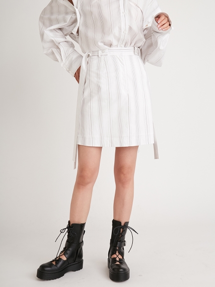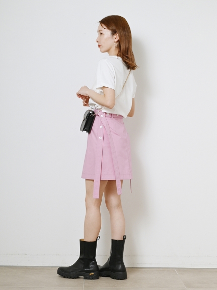 【こだわりのベルトデザインでモードに仕上げたミニスカート】