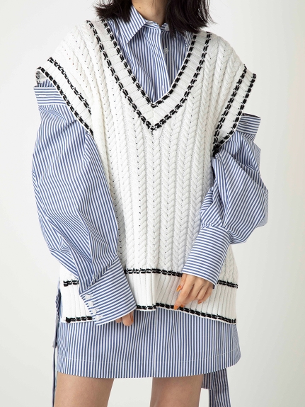 クリーンなムードを漂わせるライトなコットン生地を使用。無地の2色はオーガニックコットンを使用。ホワイトはグレーの細めのランダムストライプ、ブルーはベーシックながらトレンドの青白の細ピッチストライプ、グリーン&ピンクは無地ですがトレンドライクな発色のいい色でご用意しました。