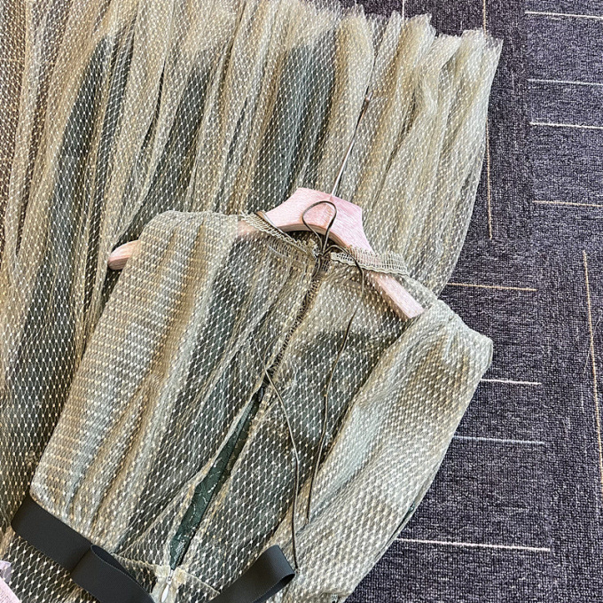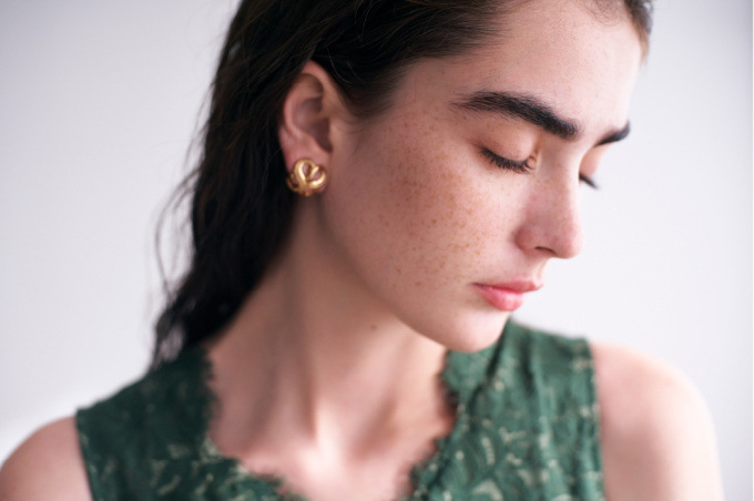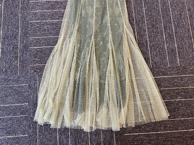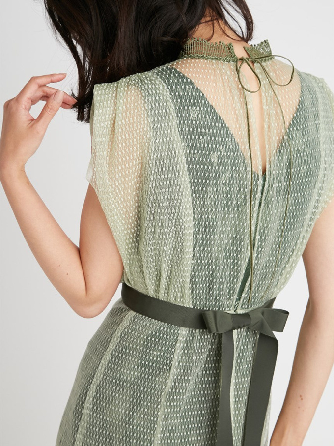透明感のあるドットチュールと繊細なレース素材を使用しました。シックな雰囲気のグレー、春らしい印象のグリーン、フェミニンなニュアンスのラベンダーの3色でお届けします。