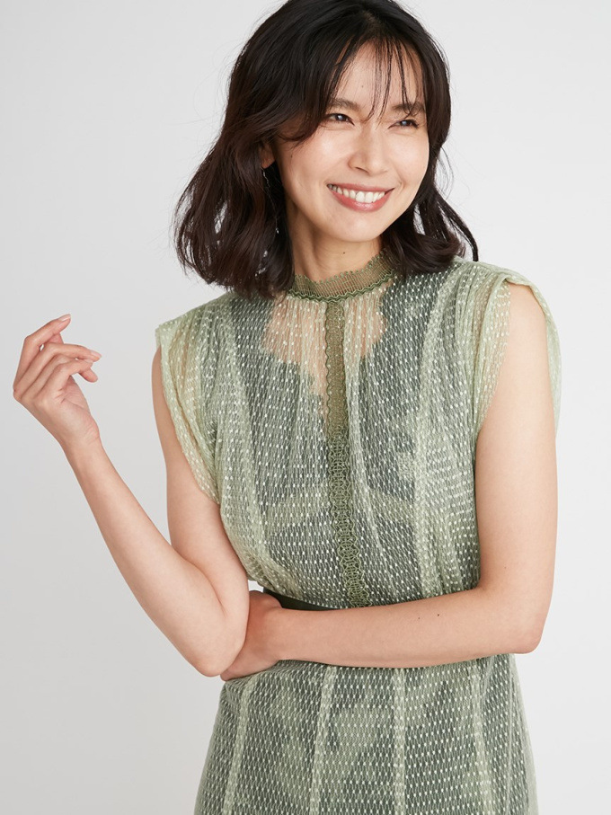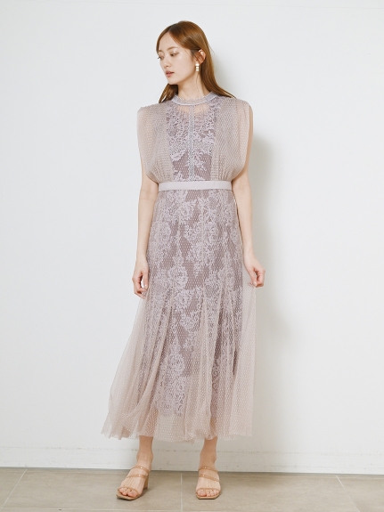 【繊細なマテリアル使いが洗練フェミニンスタイルを叶えるレイヤードドレス】