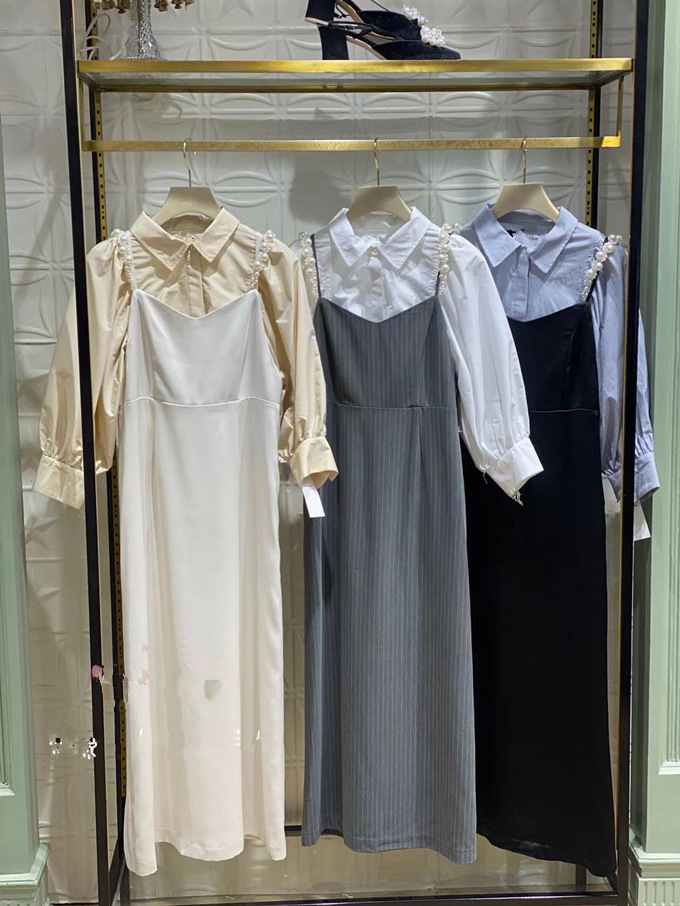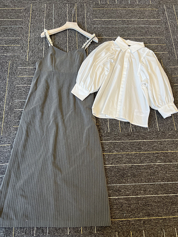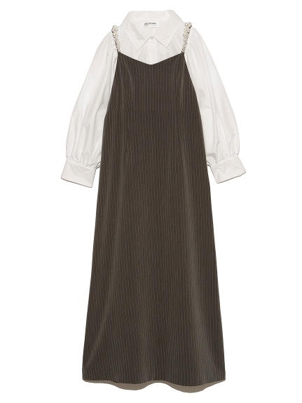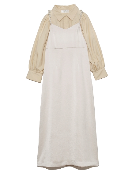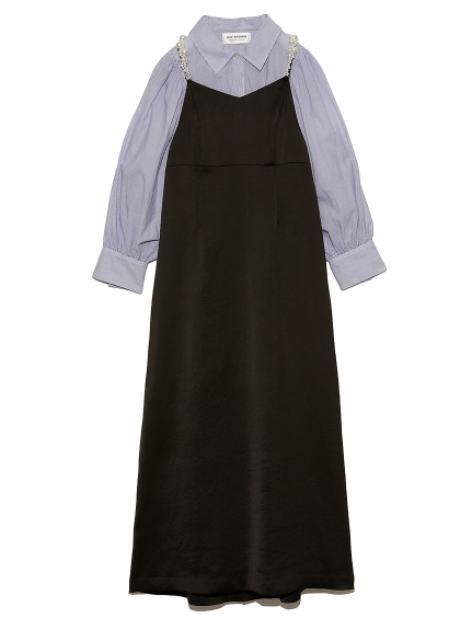[L.B CANDY STOCK]シャツコンビパールキャミワンピース 入金確認後3-5営業日発送(土日祝日除く)