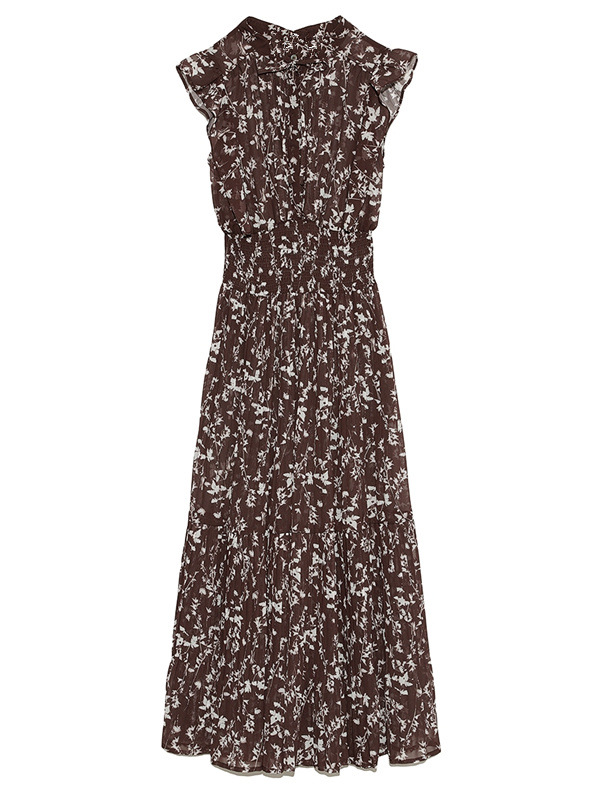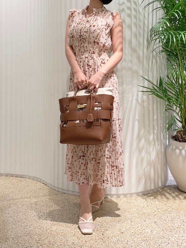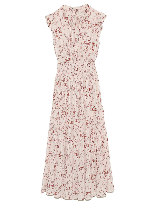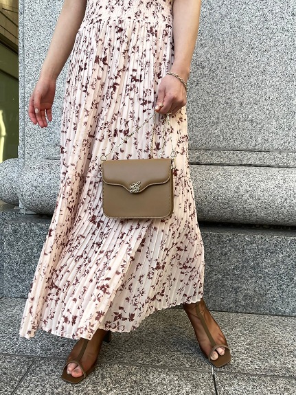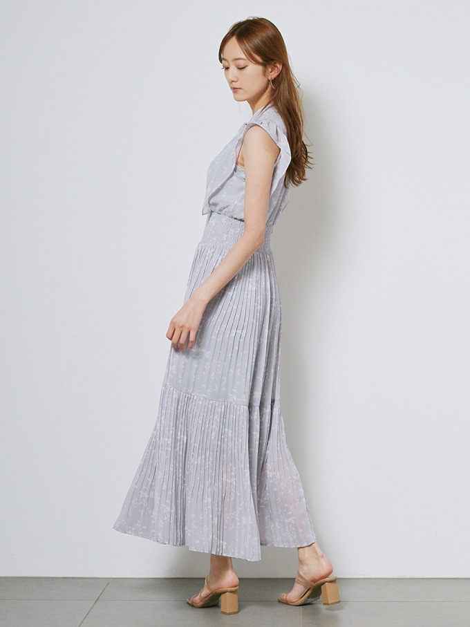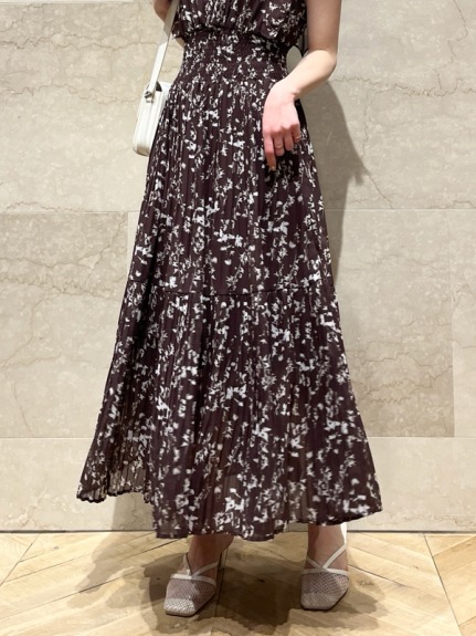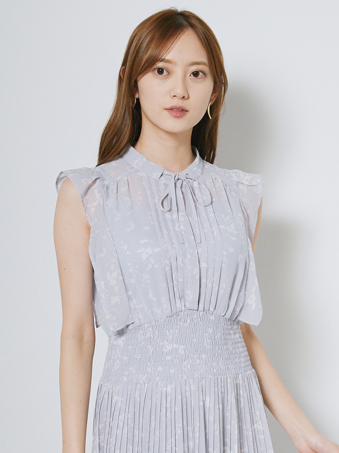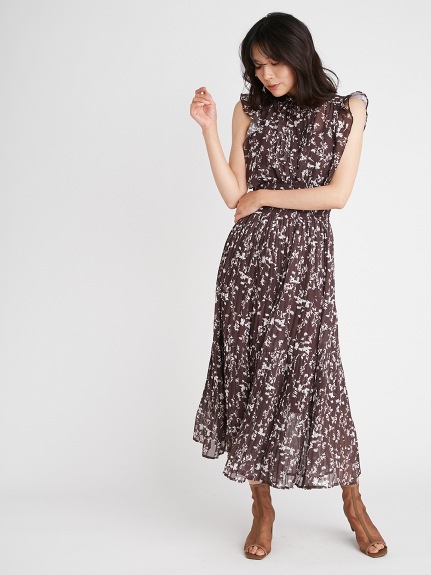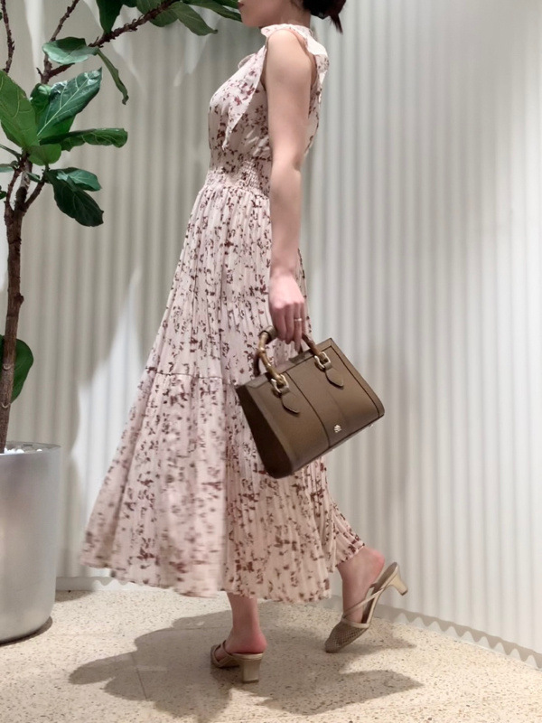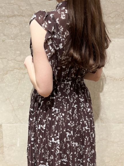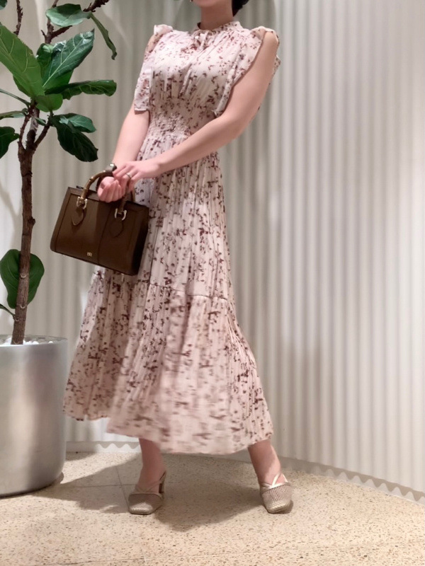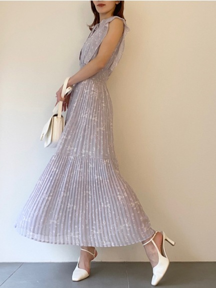 「SNIDEL」ならではの上品で愛らしいオリジナルプリントを浮かべたワンピース。胸元でキュッと結んだリボンやボリュームのあるフリルでとことんレディに仕上げています。シャーリングを効かせたウエストから裾に向かってひらりと広がるフレアシルエットでスタイルアップ効果は抜群。全体に細かく畳んだプリーツが表情にきちんと感を与え、洗練ムードを高めてくれます。インナーキャミソール付きで透け感を気にせず着られるのも嬉しいポイント。
