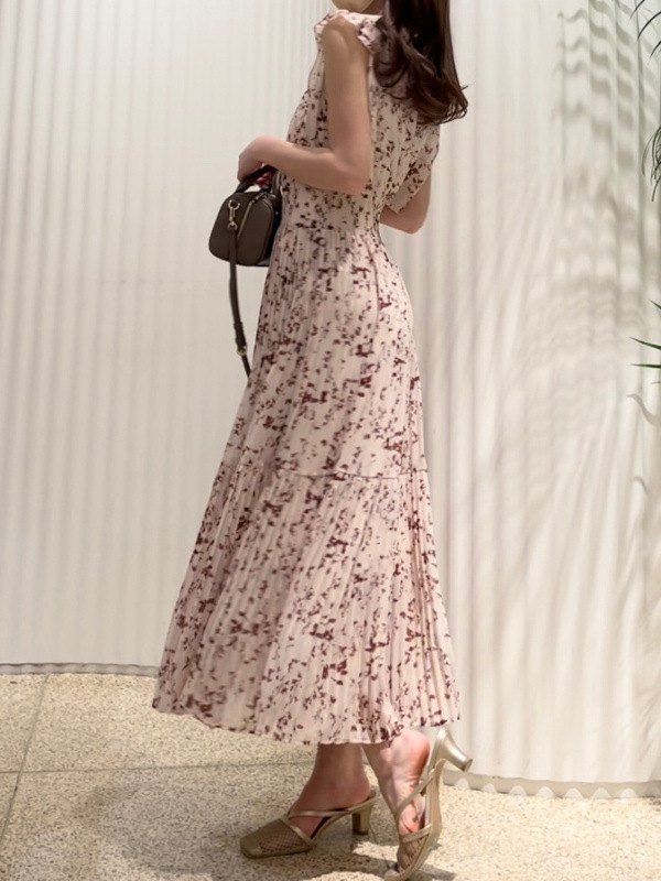 プリントプリーツワンピース 入金確認後3-5営業日発送(土日祝日除く)