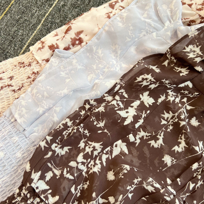 軽やかな透け感のあるシフォン素材を使用。春らしいピンクベージュ、ラベンダーに、シックなダークブラウンを加えた3色展開です。