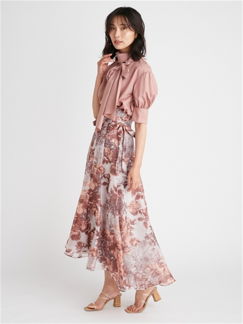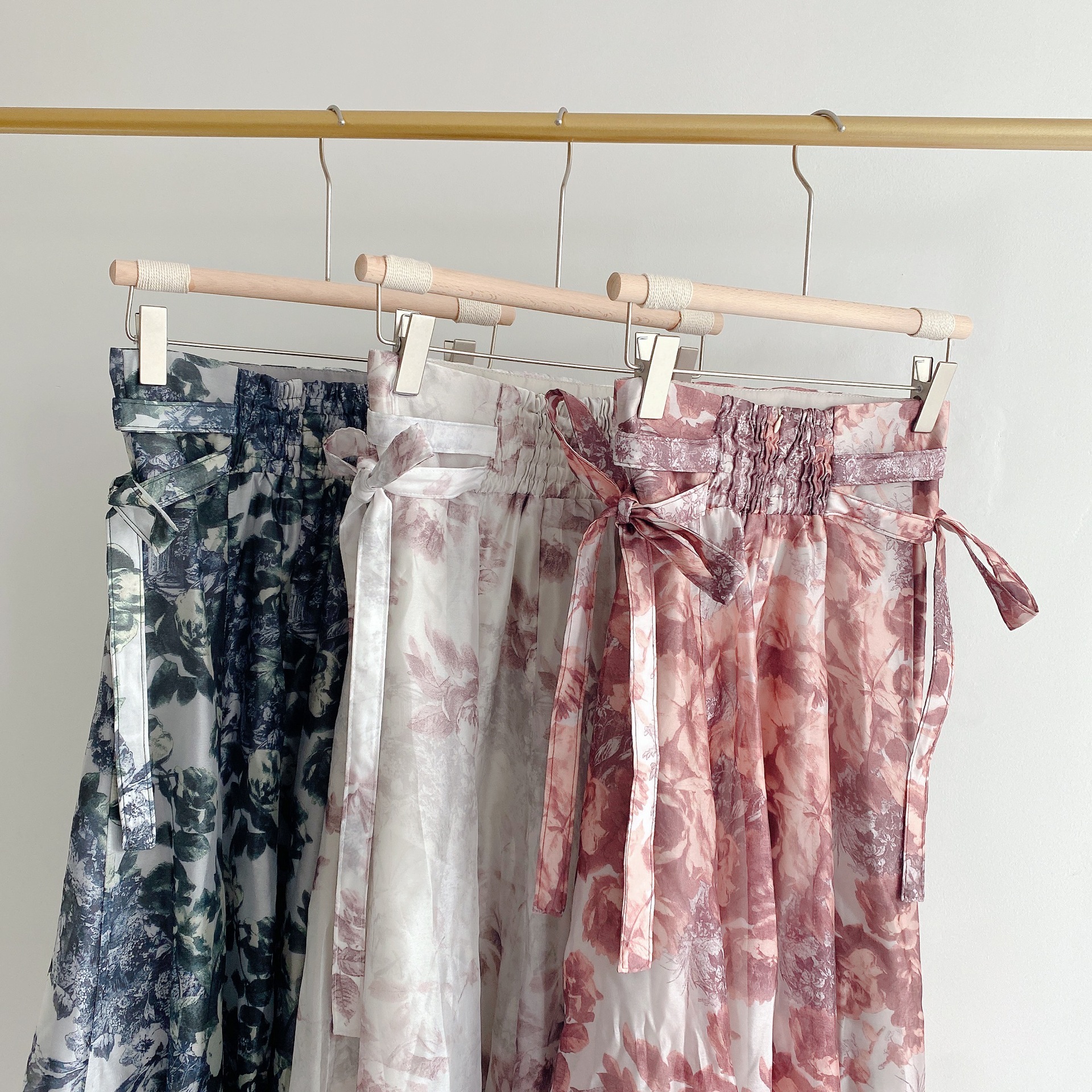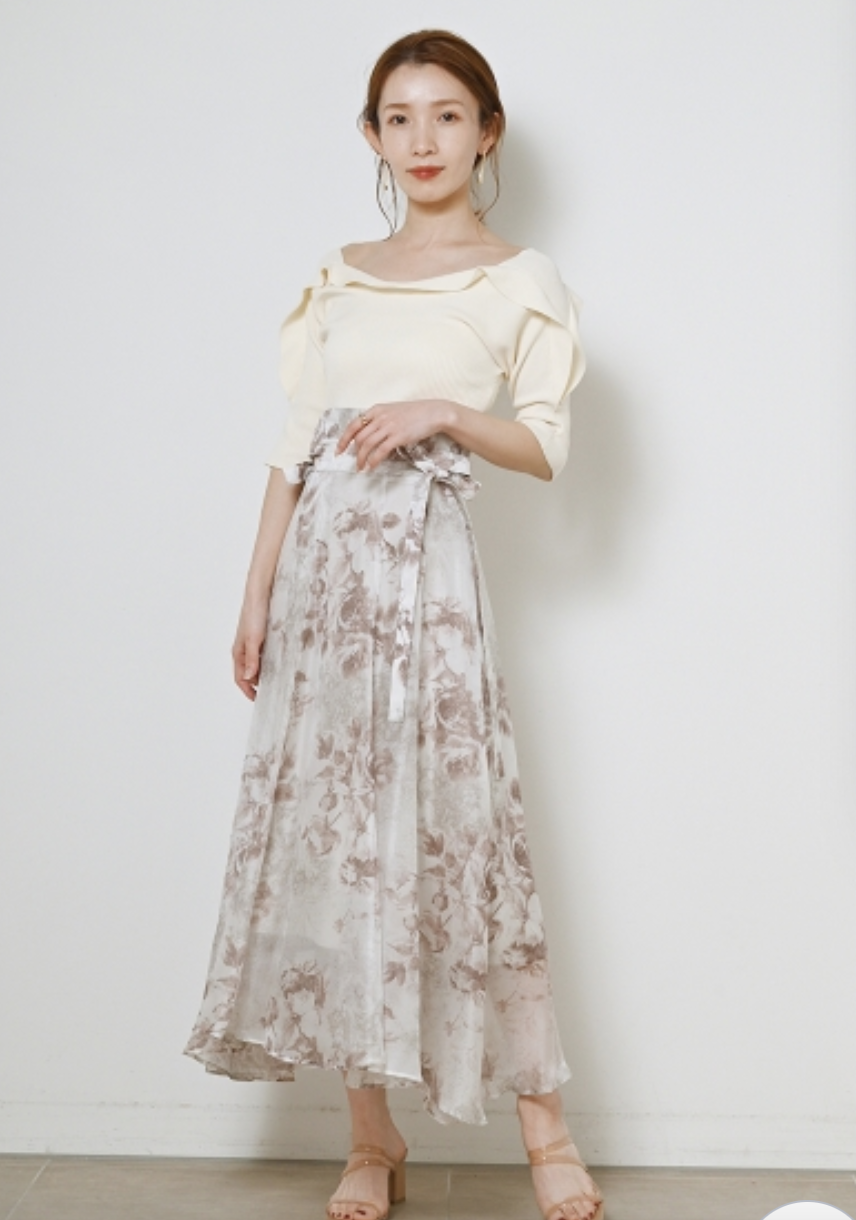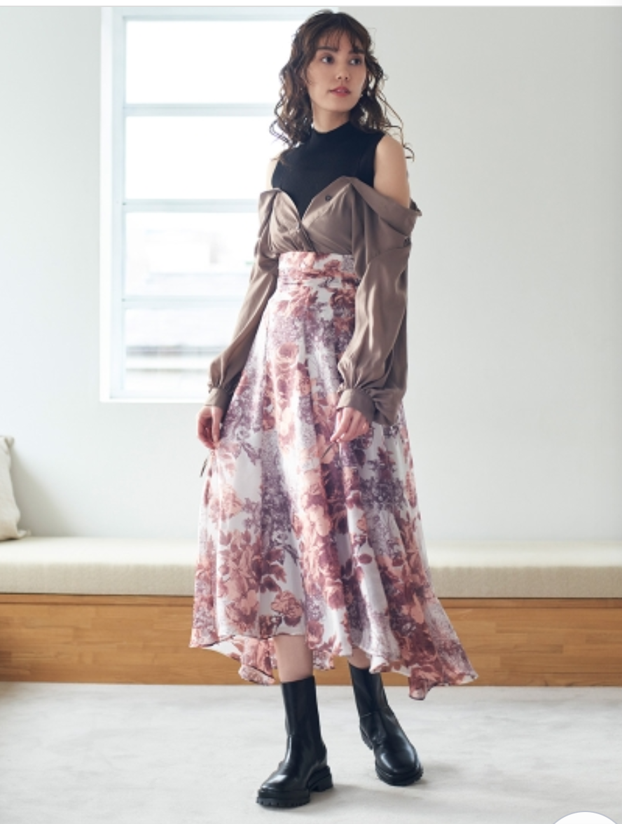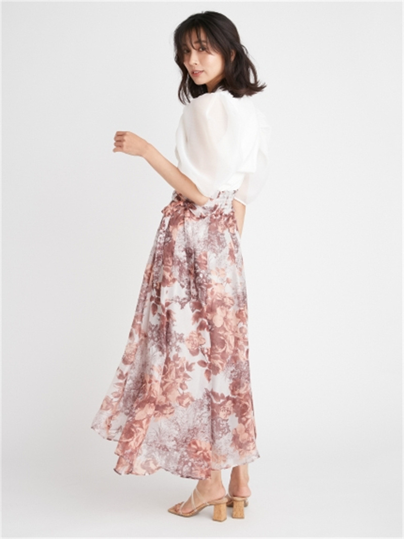 【繊細なプリントがスタイリングにエレガンスムードをもたらすスカート】