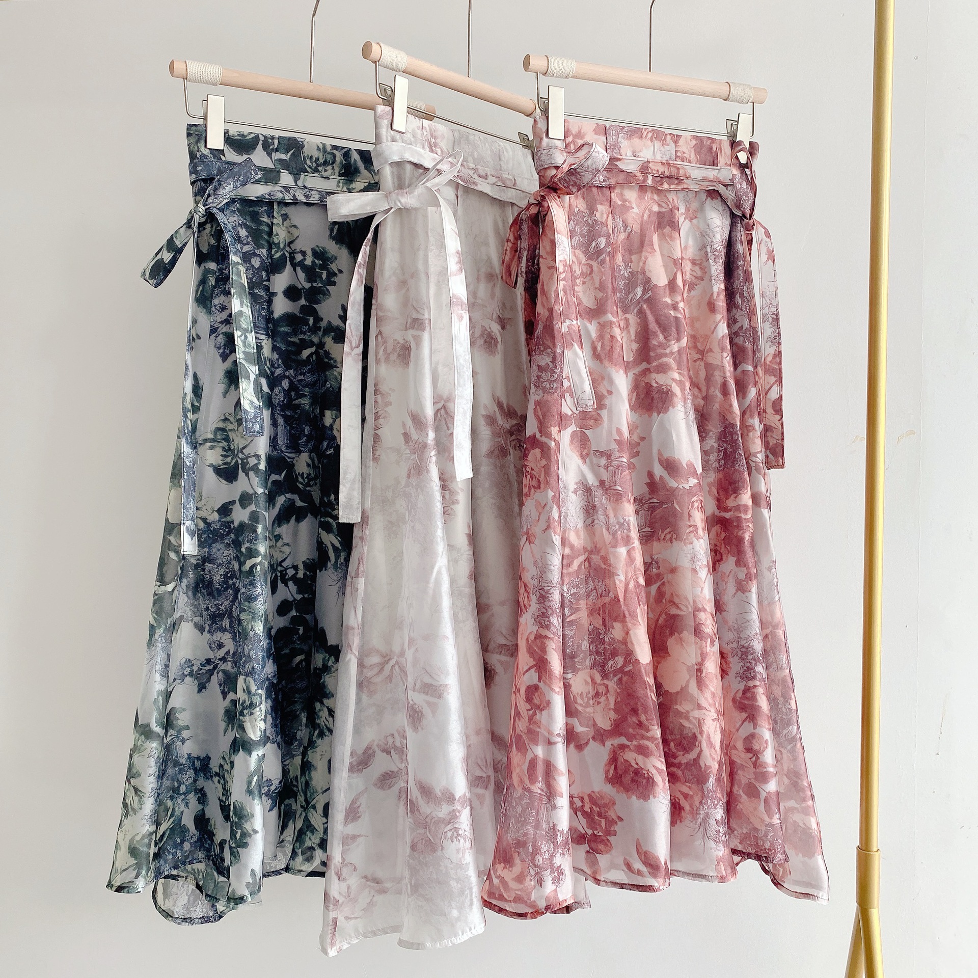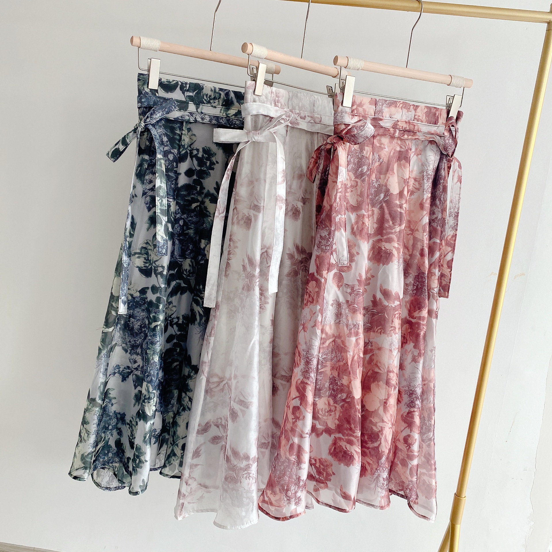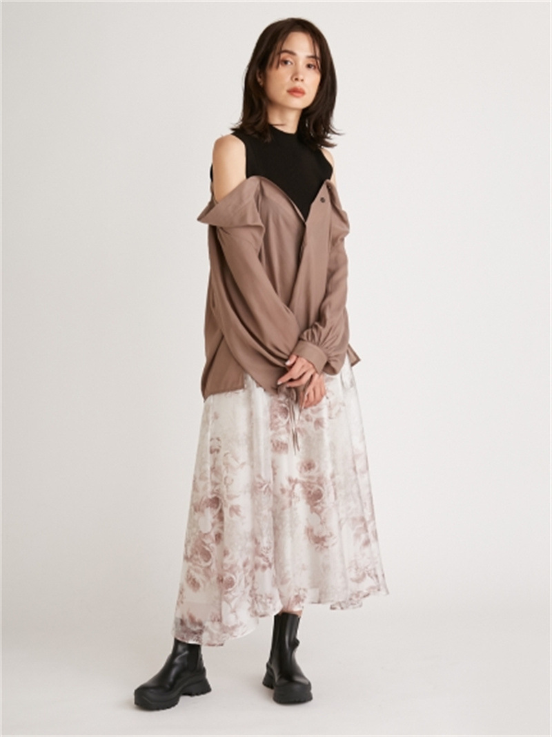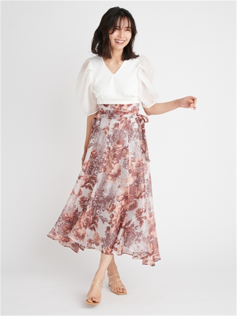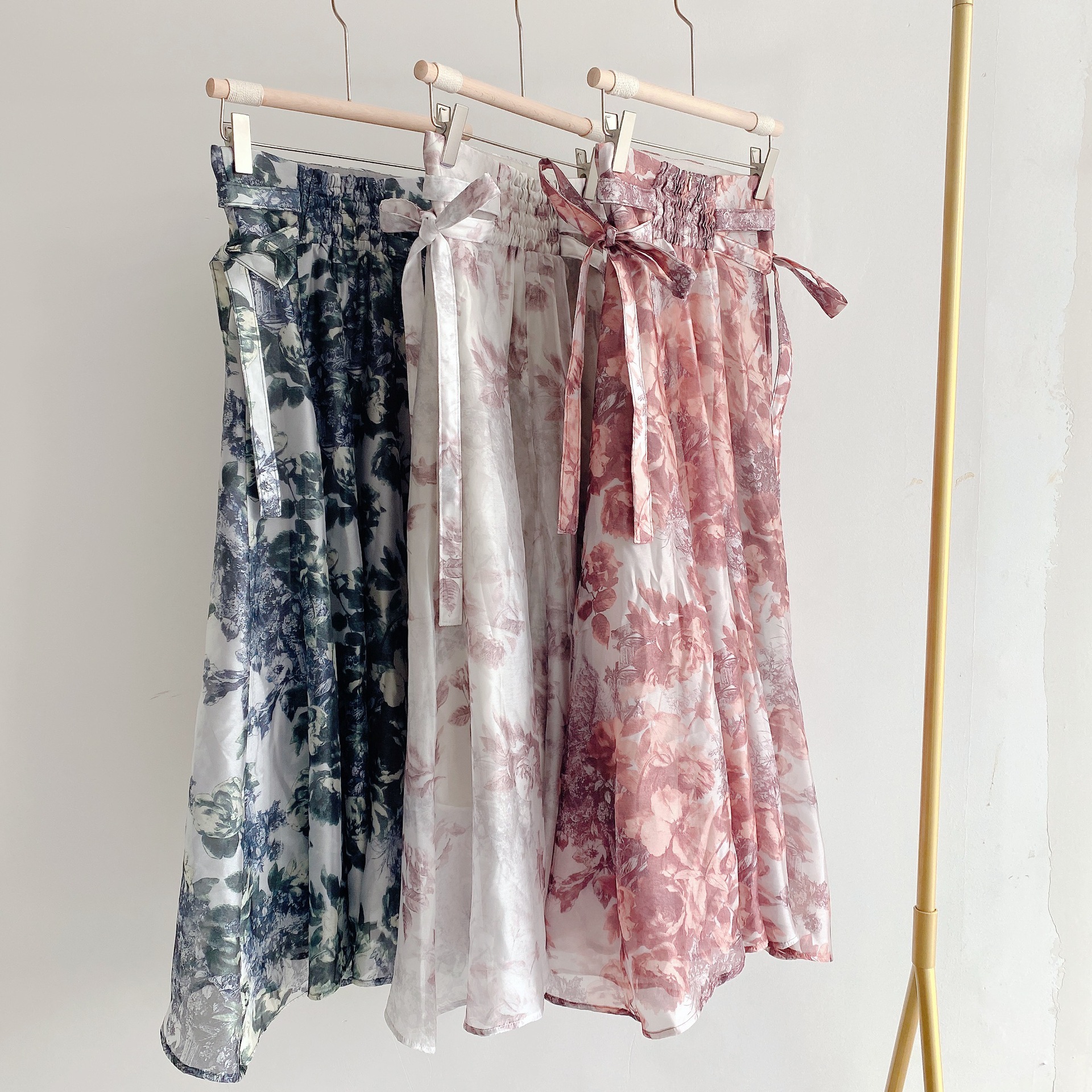 【繊細なプリントがスタイリングにエレガンスムードをもたらすスカート】