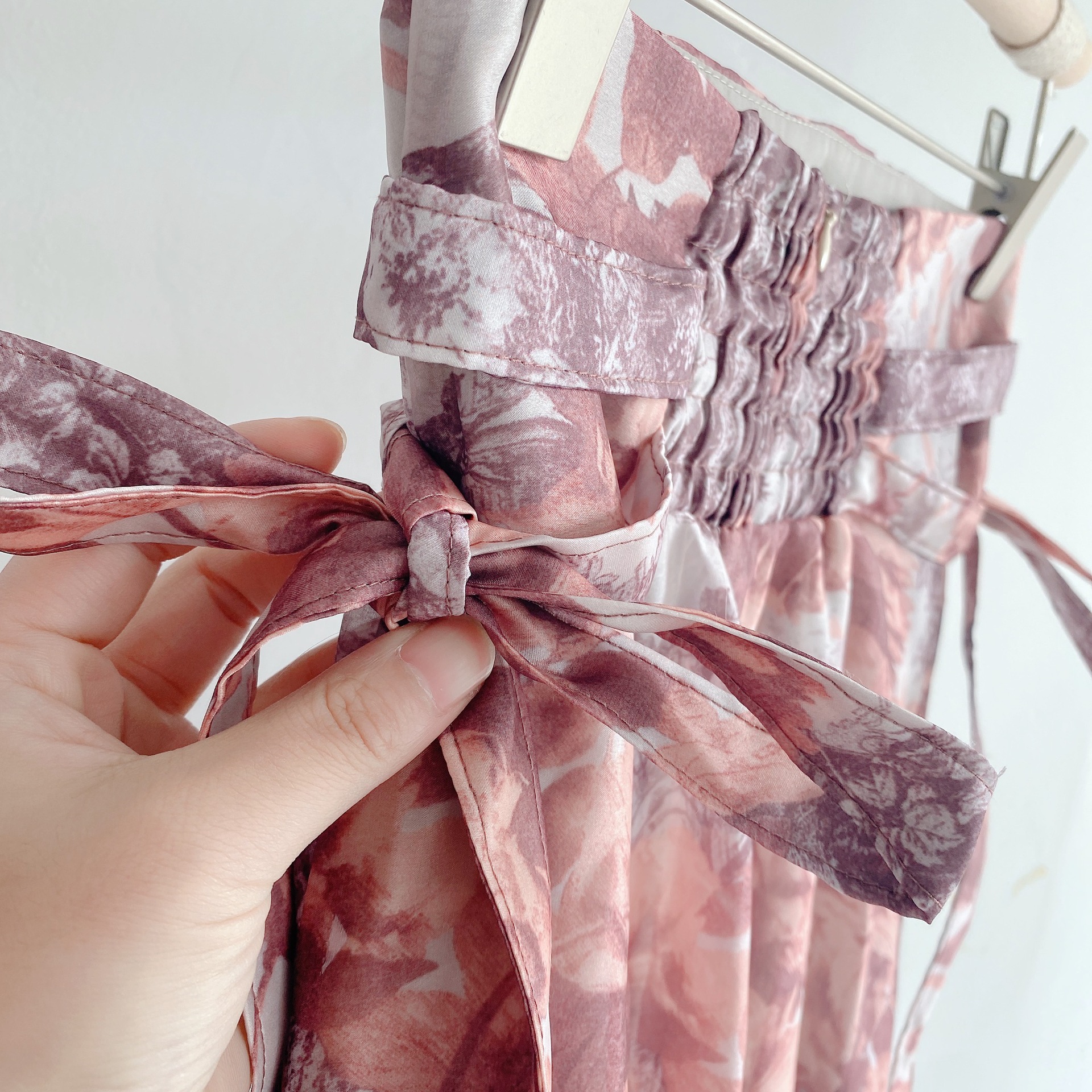 ロココ調の絵画を思わせるトワルドジュイの繊細なプリントをのせたスカート。裾に向かって軽やかに広がるナローフレアシルエットと相まって、エレガンスムードたっぷりに仕上がりました。両サイドでキュッと結んだウエストリボンは女性らしさを高めるアクセントに。こだわりのディテールを活かすならトップスをINした今年らしいスタイリングがオススメです。