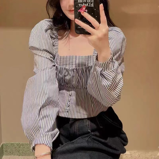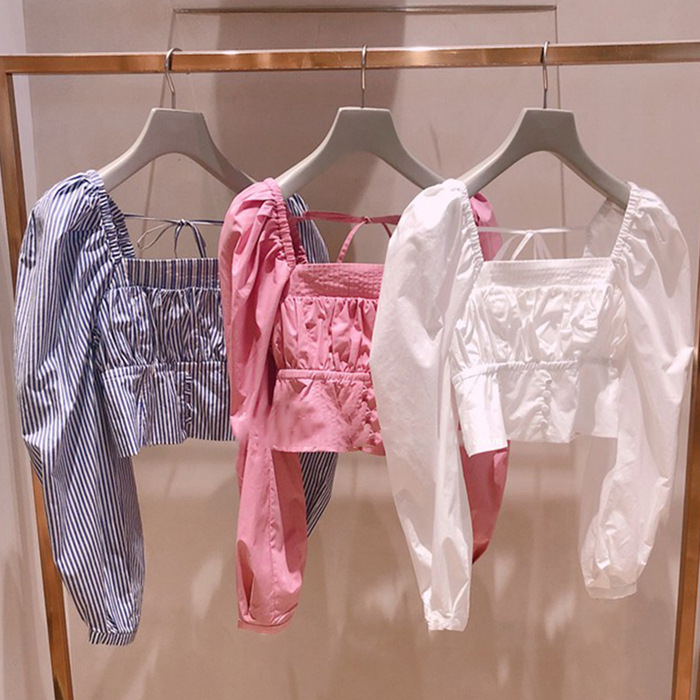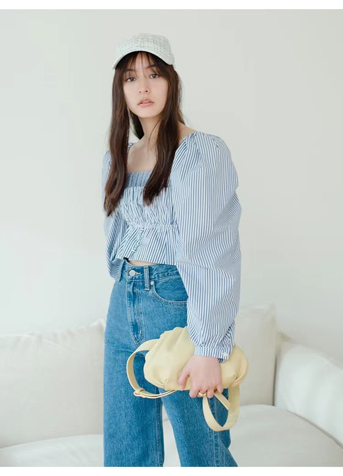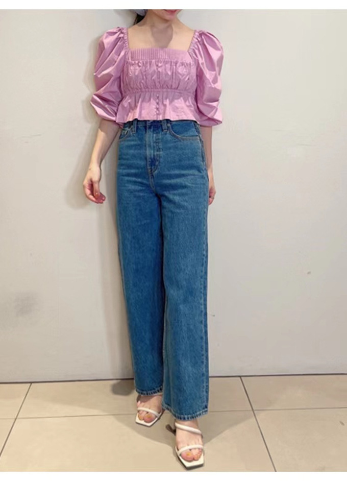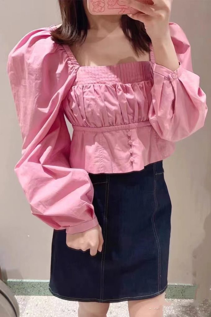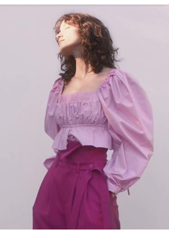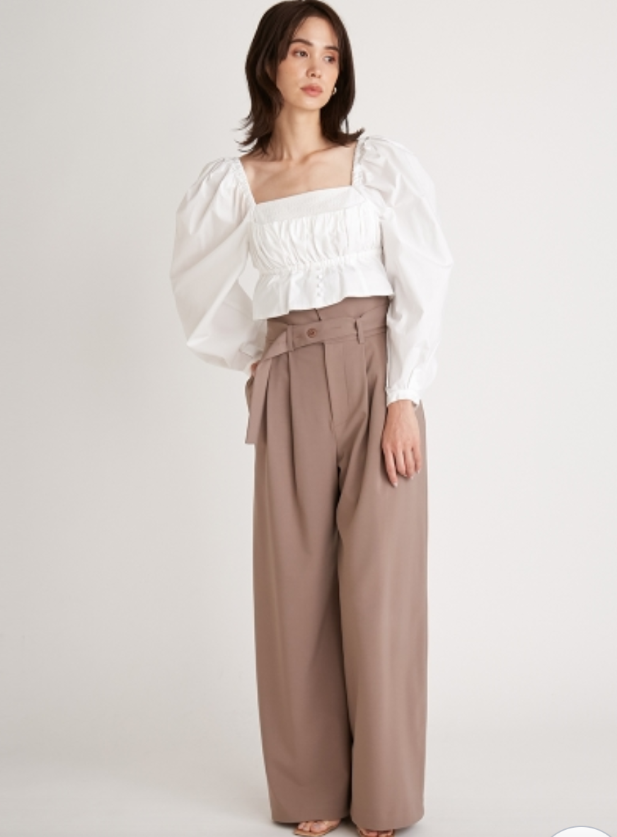 ビスチェを思わせるクラシカルなデザインが印象的なブラウス。胸元にはギャザーとピンタックを施し、ボリュームたっぷりの袖もプラスしてレディ度満点に仕上げました。クロップド丈のペプラム風シルエットが今季らしいデザインに。マニッシュなハイウエストパンツと合わせて、甘さ控えめに着こなすのがおすすめです。
