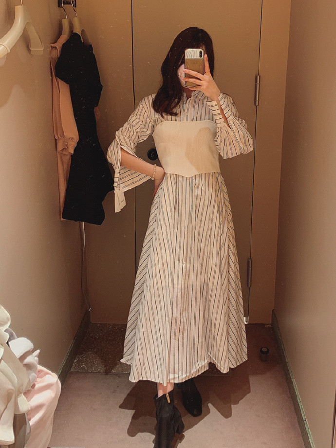 【クラシカルなドッキングデザインでトレンドスタイルが完成するワンピース】