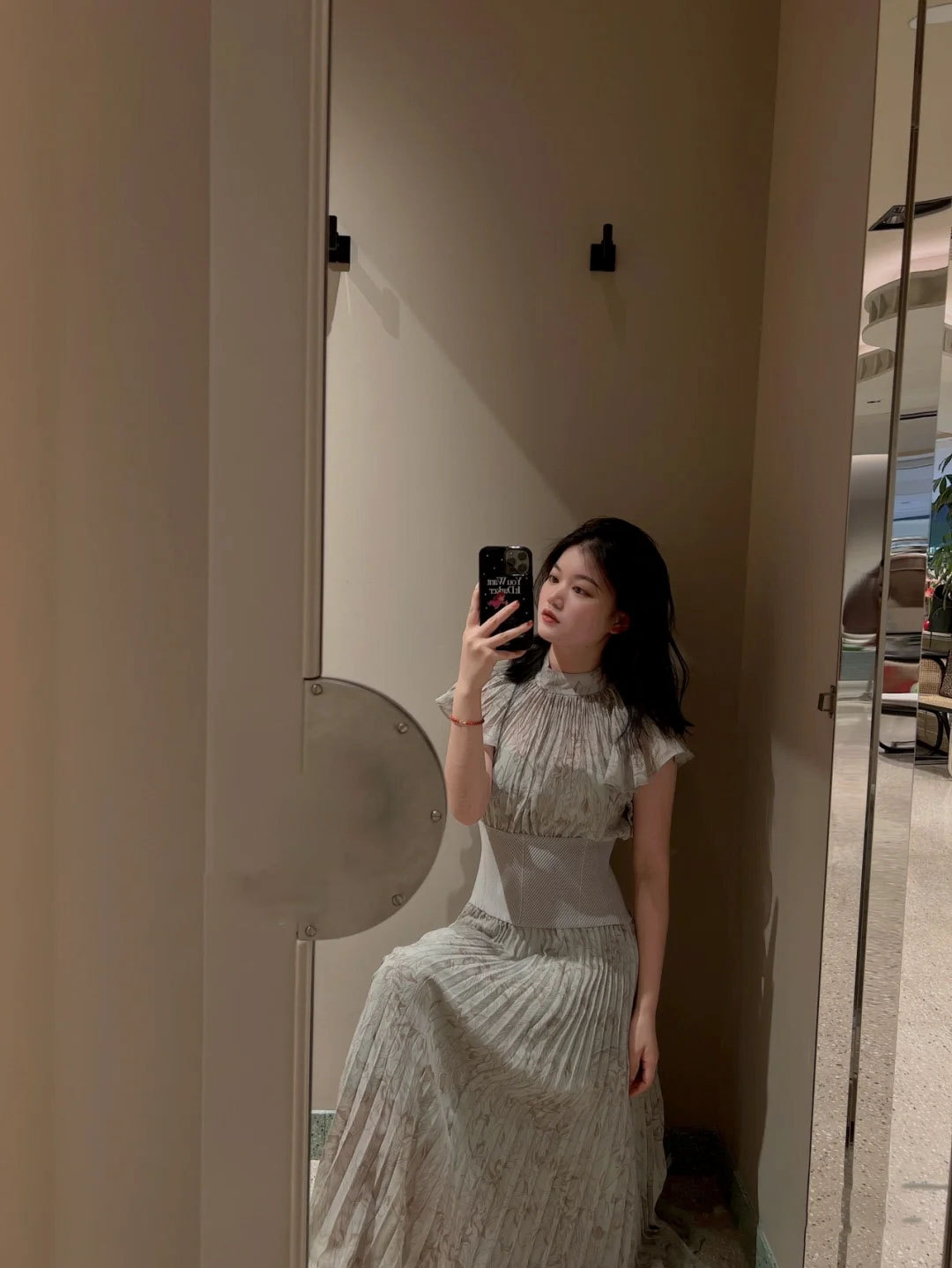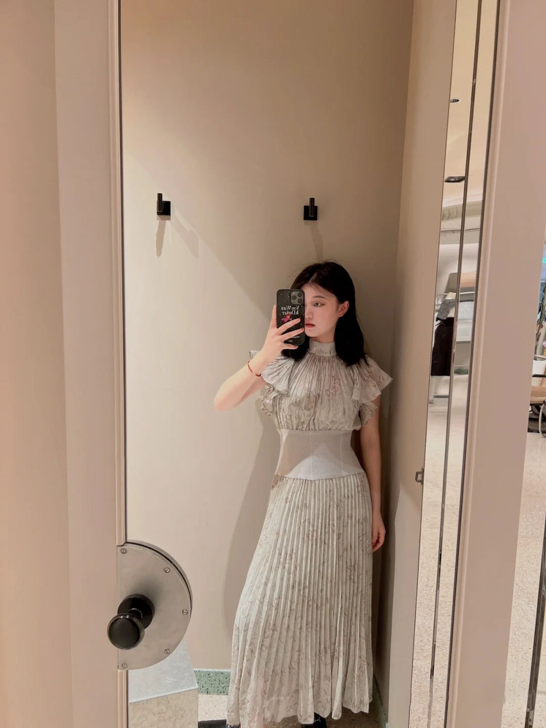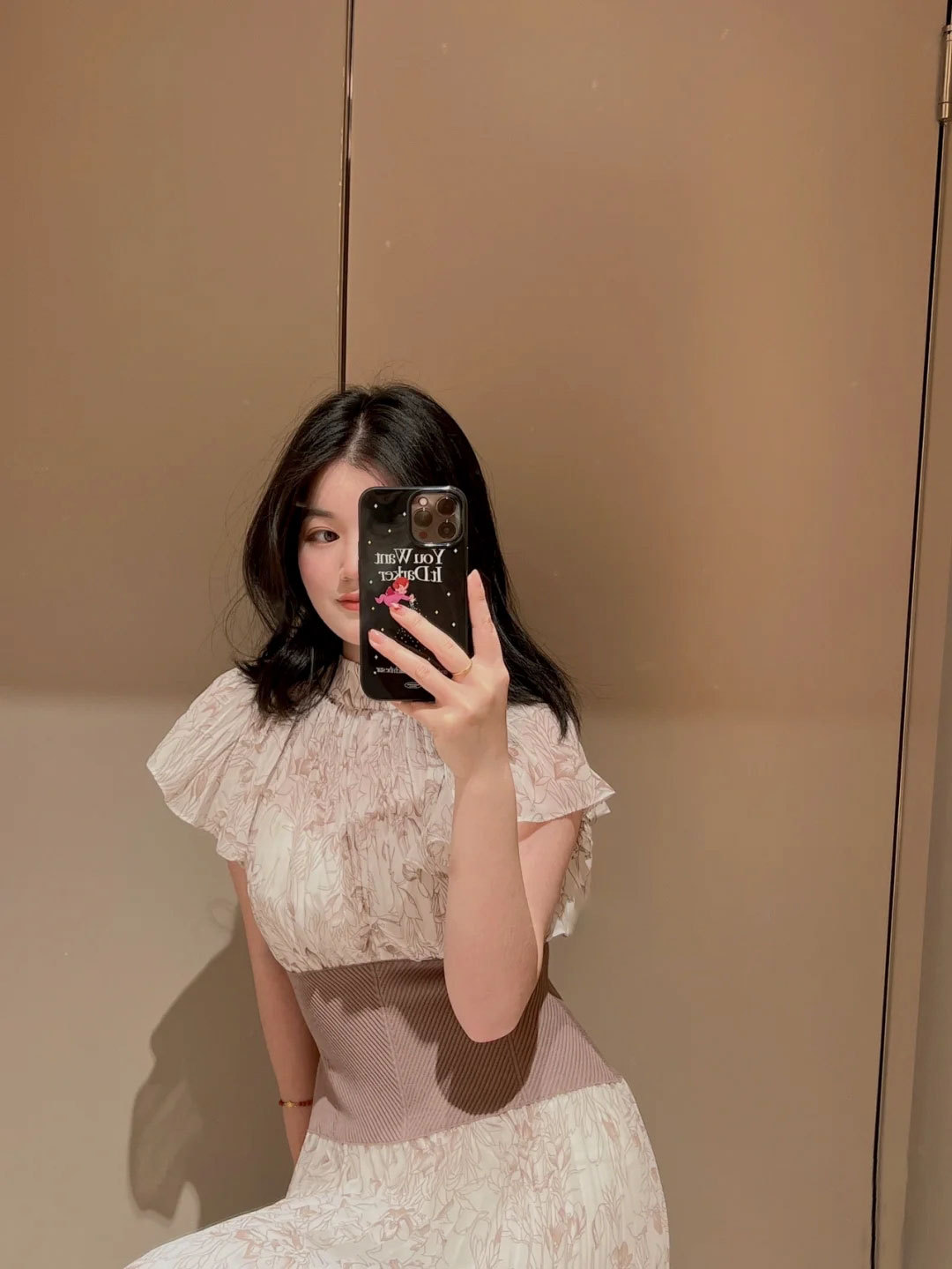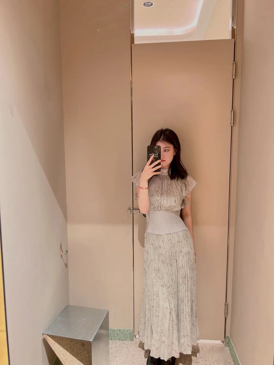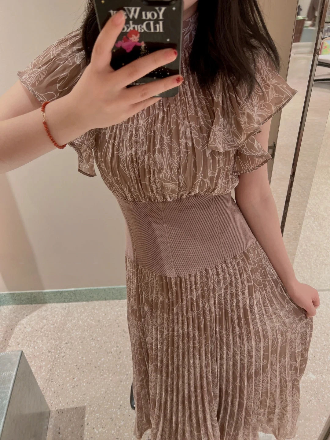 前シーズン人気を集めたワンピースが今季も登場。女性らしい華やかさを演出するシアーなシフォンに線画で表現した花柄を浮かべ大人っぽくまとめました。異素材の絶妙なバランスがモード感を演出するウエストのリブ切り替えは、身体のカーブを強調しスタイルアップ効果は絶大。エレガントに波打つフレアスリーブや品の良いスタンドカラーなど「SNIDEL」らしいディテールは継承し、どこまでも女性らしく仕上げています。