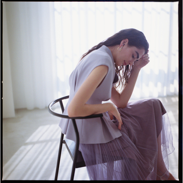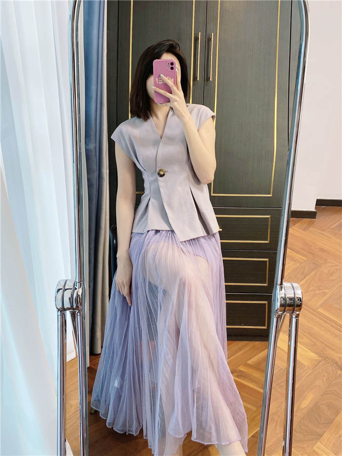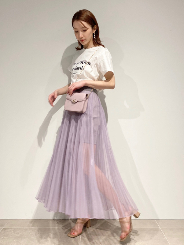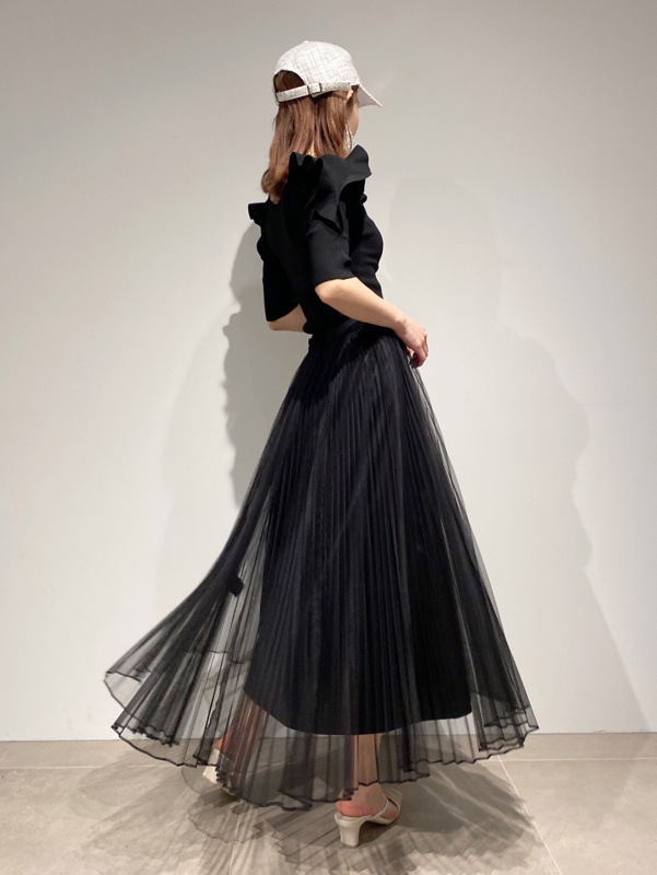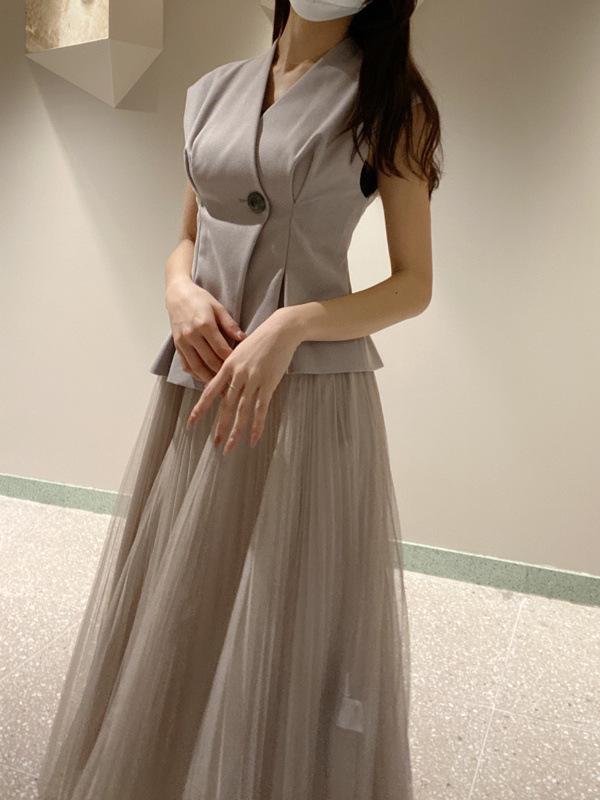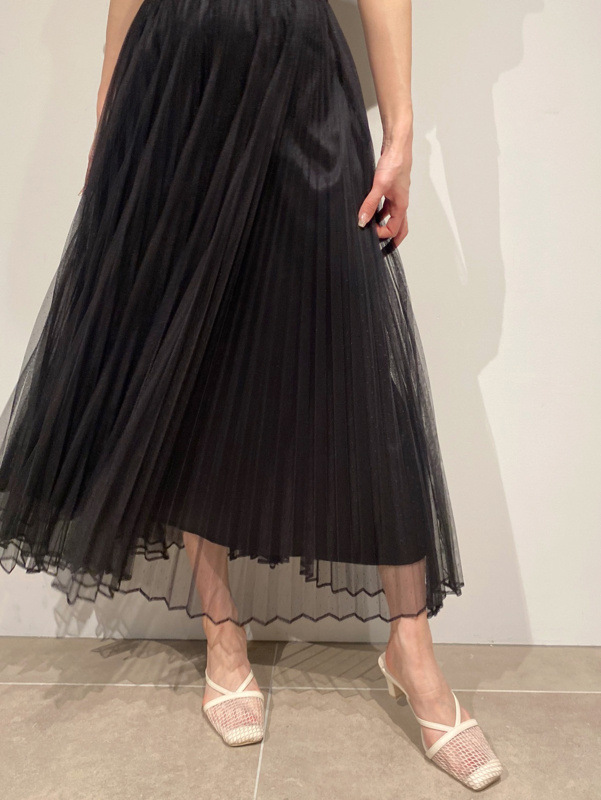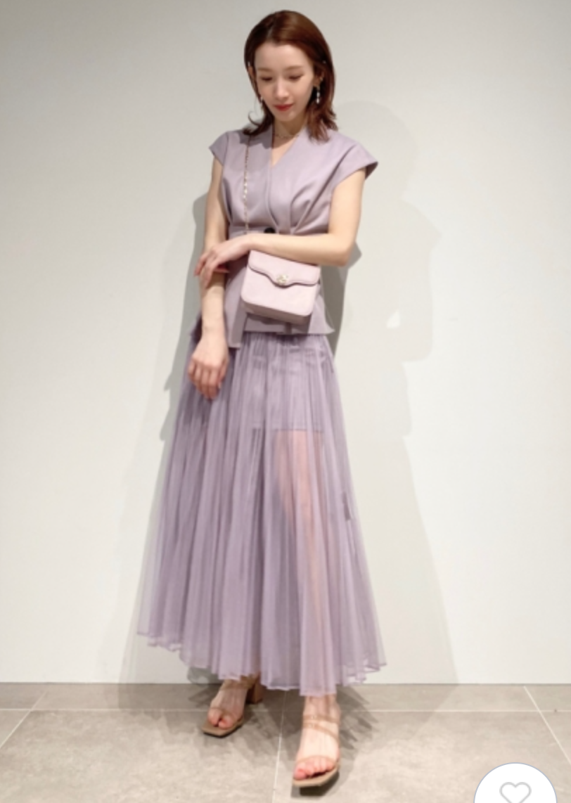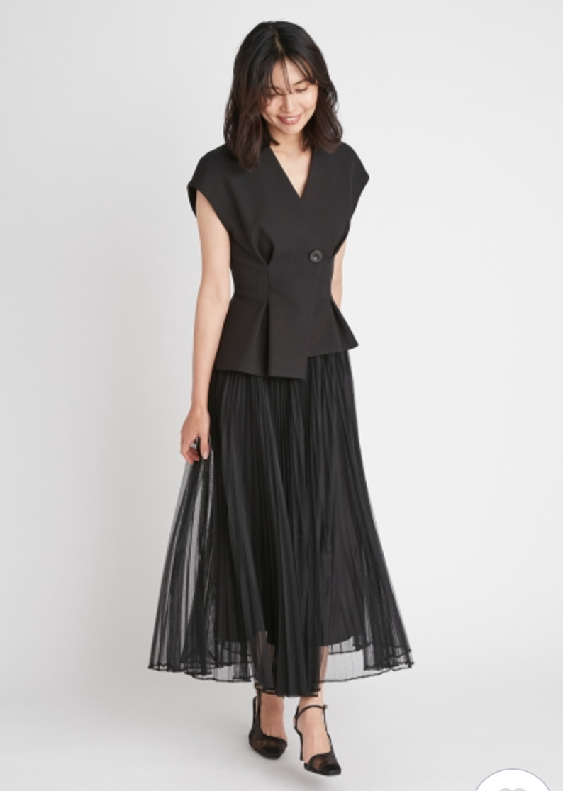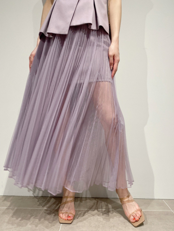 ジレは品の良いしなやかなマテリアルを使用し、スカートは透明感のあるチュール素材を使用。着まわしやすく定番のブラック&モカに加え、女性らしい優しいニュアンスのラベンダーの3色をご用意しました。