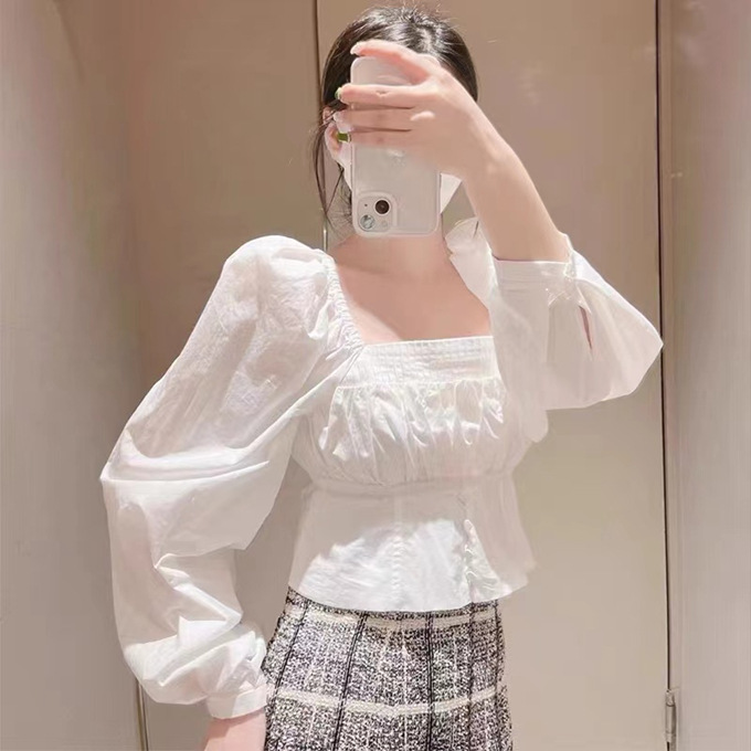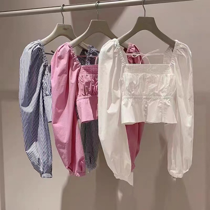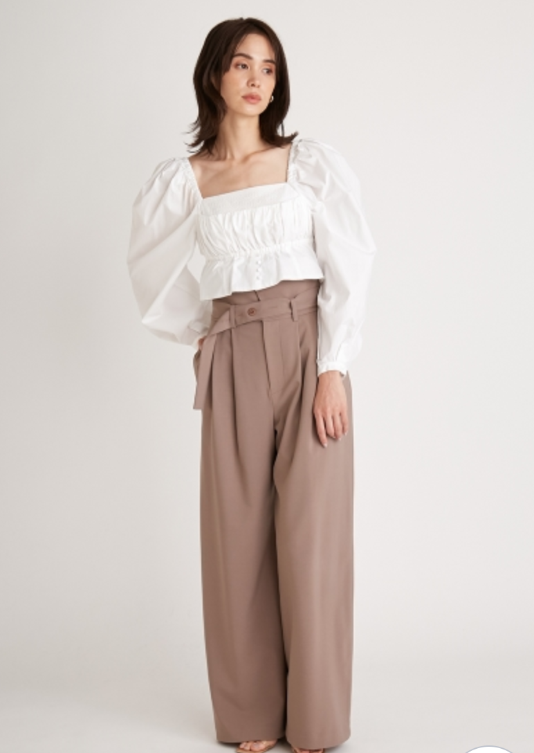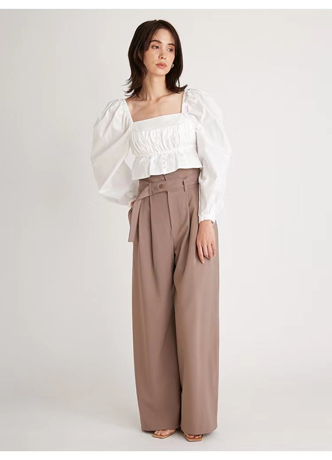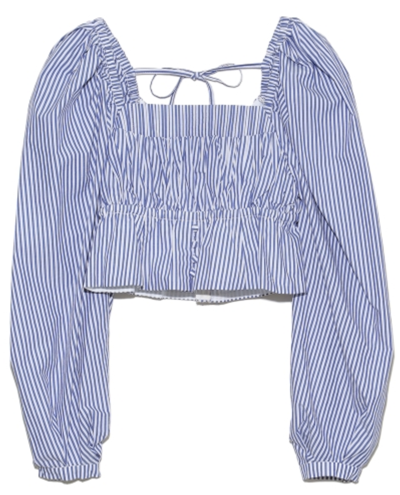 ビスチェを思わせるクラシカルなデザインが印象的なブラウス。胸元にはギャザーとピンタックを施し、ボリュームたっぷりの袖もプラスしてレディ度満点に仕上げました。クロップド丈のペプラム風シルエットが今季らしいデザインに。マニッシュなハイウエストパンツと合わせて、甘さ控えめに着こなすのがおすすめです。