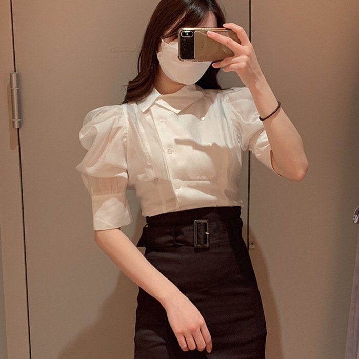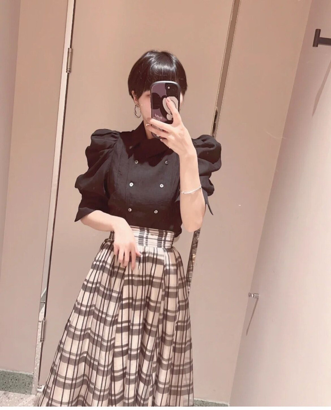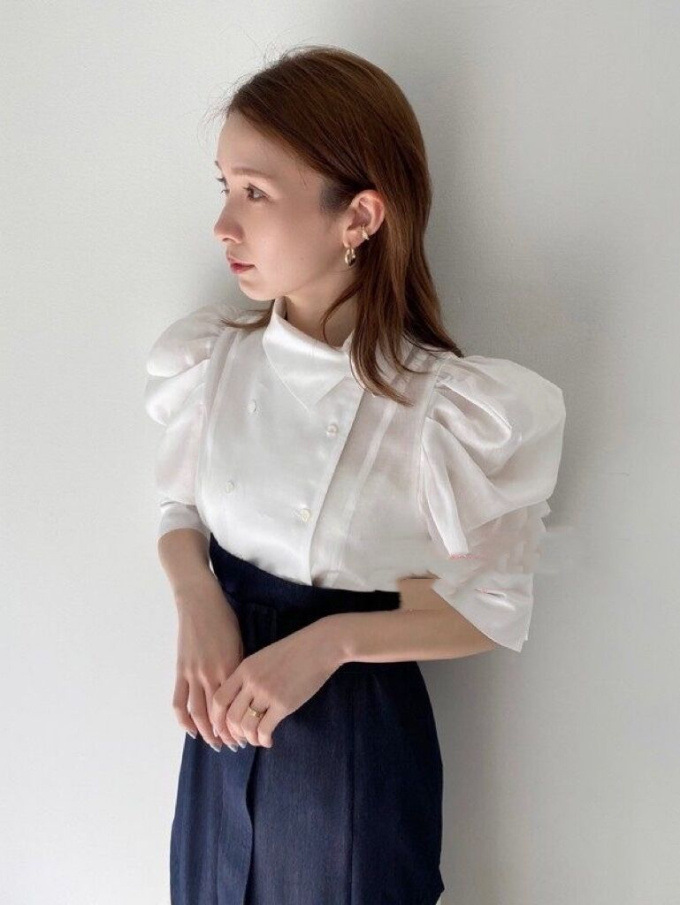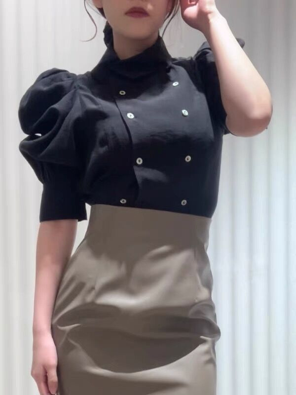 ダブルフロントパフスリーブブラウス