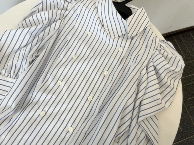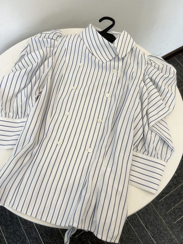 【クラシカルなダブルのフロントデザインが清楚さを印象付けるブラウス】