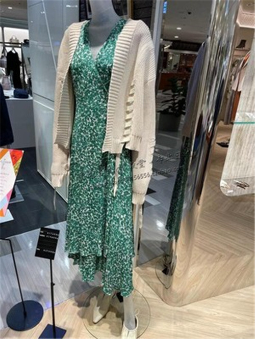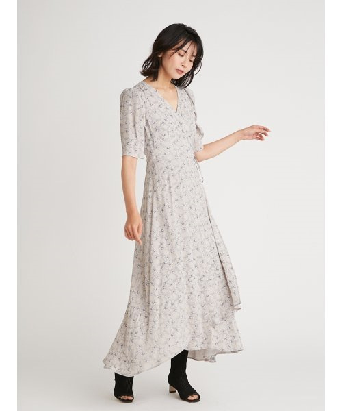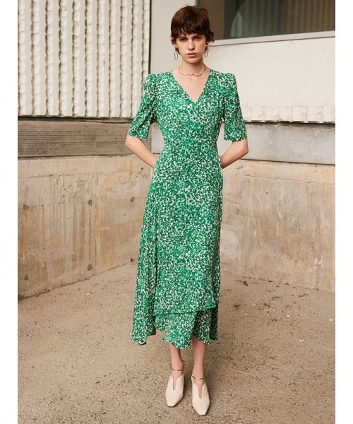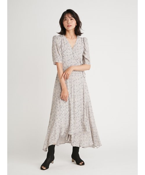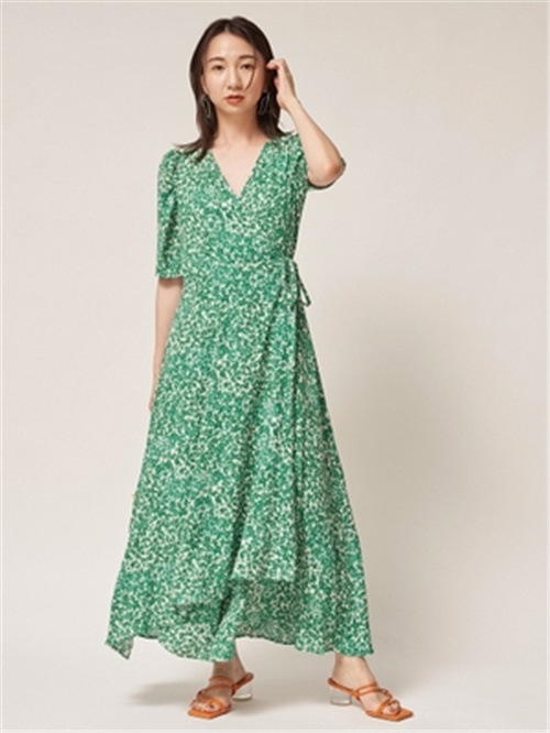 カシュクールデザインとハイウエスト気味なシルエットの組み合わせが大人の女性に似合うほどよい甘さ加減が特徴。