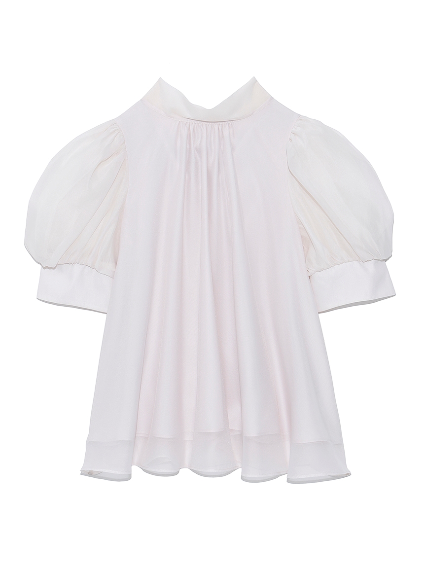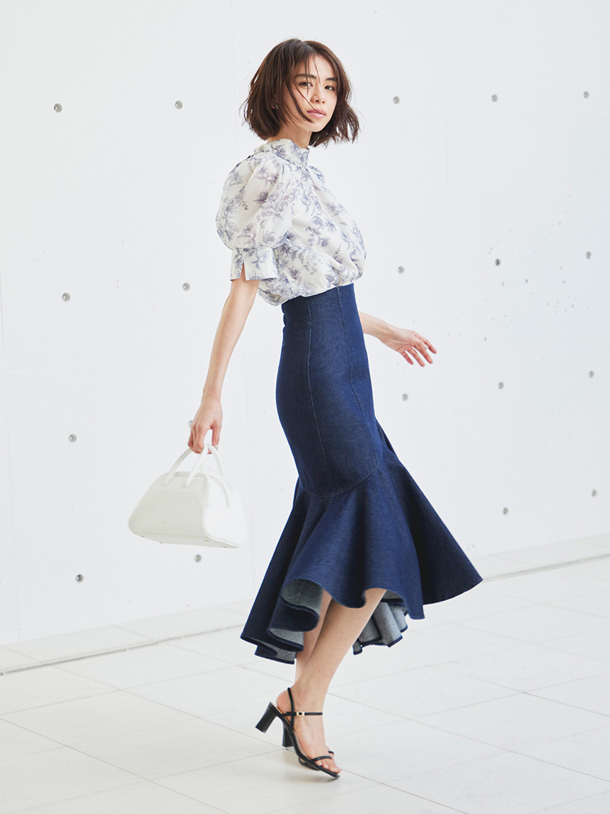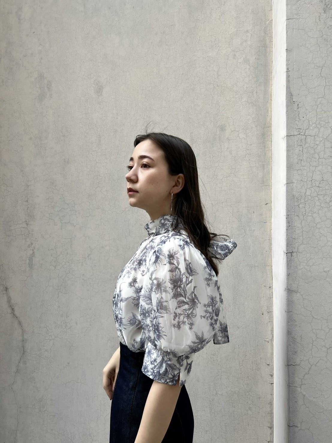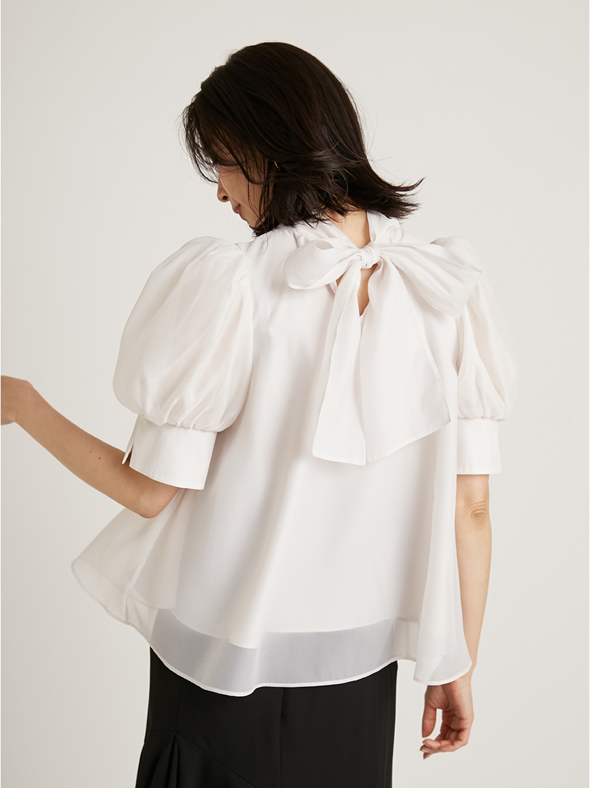 「SNIDEL」定番のオーガンジーシースルーブラウスが今季も登場。前後どちらでも結べる大きなリボンと、Aラインに広がるフレアシルエットで柔らかな印象に仕上げました。一際目を惹くボリュームスリーブは、内側にチュールを施すことで、シアー感と立体感のどちらも実現。パンツに合わせてアウトでも今年らしいハイウエストボトムにインしてもバランス良く決まり、幅広いコーディネートに活躍してくれます。
