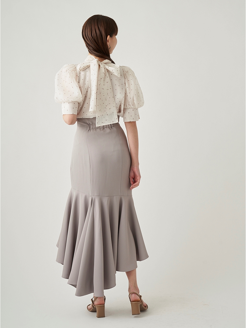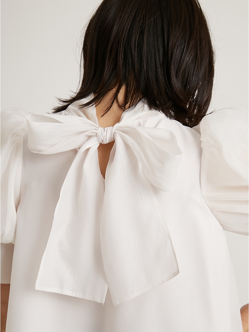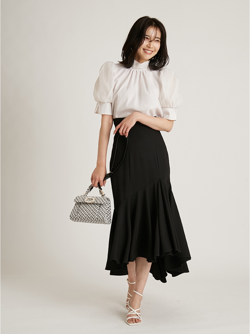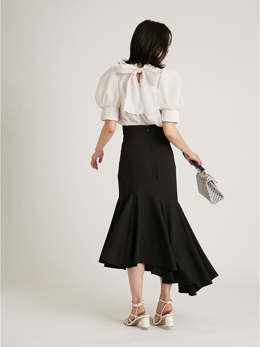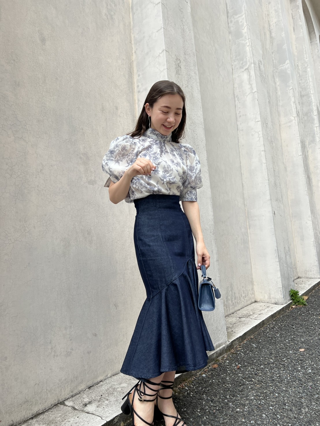 「SNIDEL」定番のオーガンジーシースルーブラウスが今季も登場。前後どちらでも結べる大きなリボンと、Aラインに広がるフレアシルエットで柔らかな印象に仕上げました。一際目を惹くボリュームスリーブは、内側にチュールを施すことで、シアー感と立体感のどちらも実現。パンツに合わせてアウトでも今年らしいハイウエストボトムにインしてもバランス良く決まり、幅広いコーディネートに活躍してくれます。
