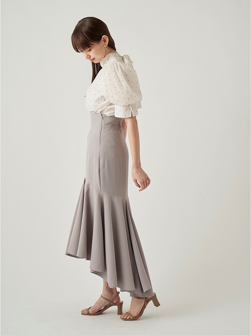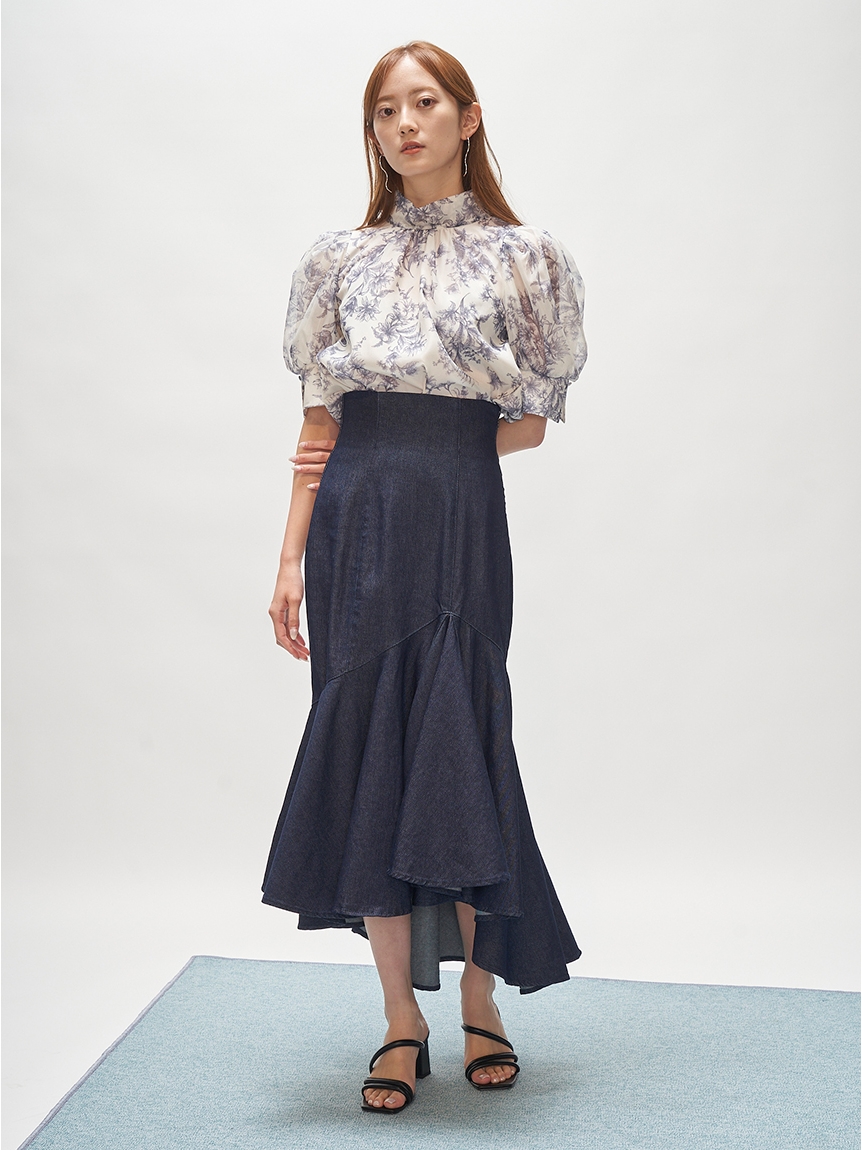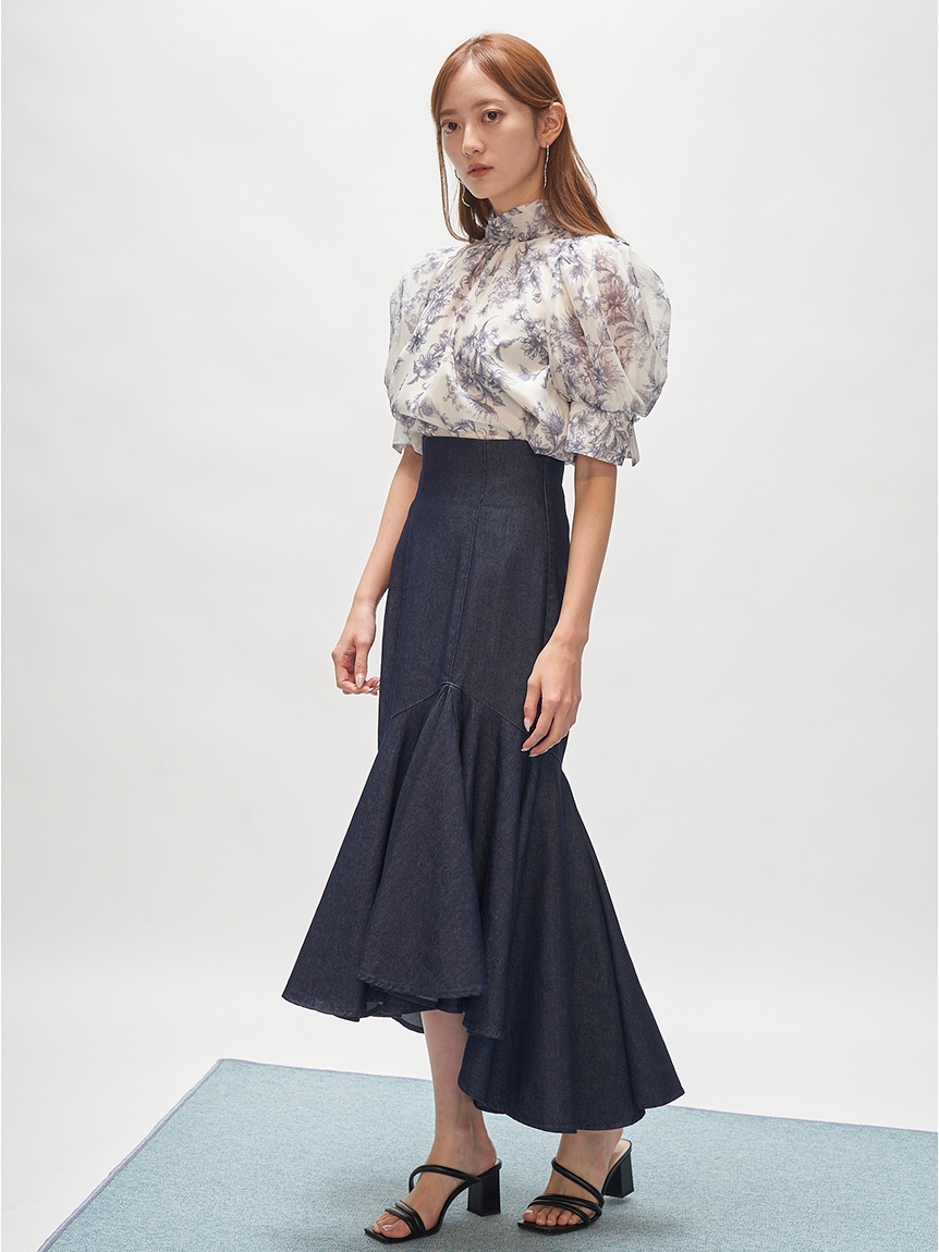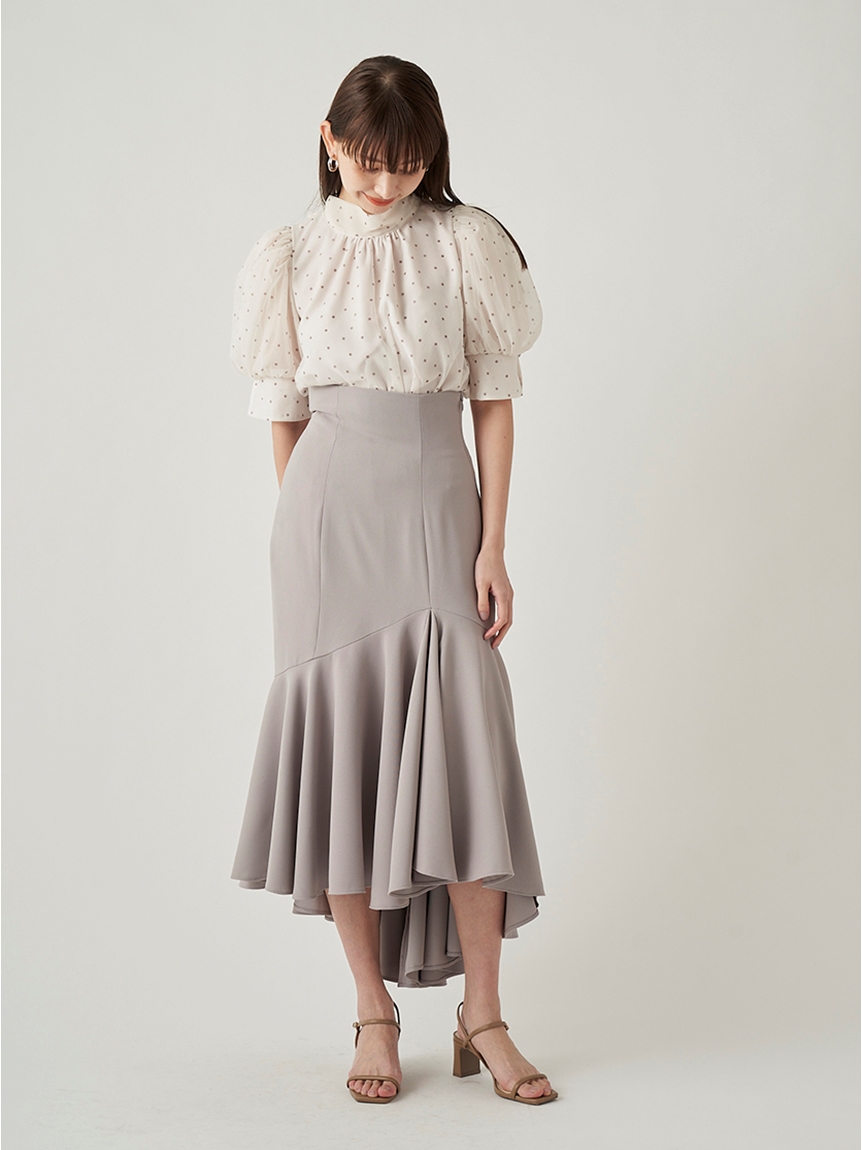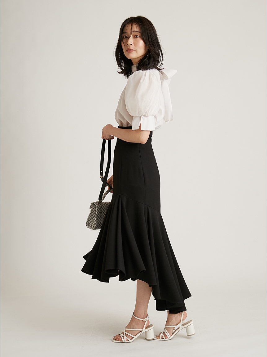 「SNIDEL」定番のオーガンジーシースルーブラウスが今季も登場。前後どちらでも結べる大きなリボンと、Aラインに広がるフレアシルエットで柔らかな印象に仕上げました。一際目を惹くボリュームスリーブは、内側にチュールを施すことで、シアー感と立体感のどちらも実現。パンツに合わせてアウトでも今年らしいハイウエストボトムにインしてもバランス良く決まり、幅広いコーディネートに活躍してくれます。