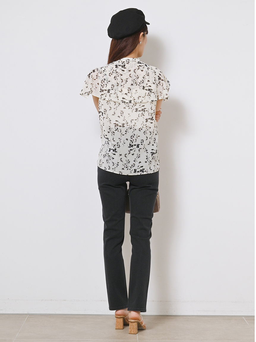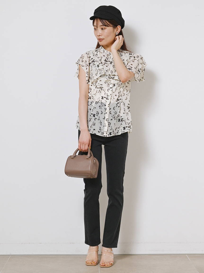 透け感のある軽くしなやかなマテリアルを使用。シンプルな無地のブラック&ホワイトに加え、春らしいフラワー柄を揃えました。