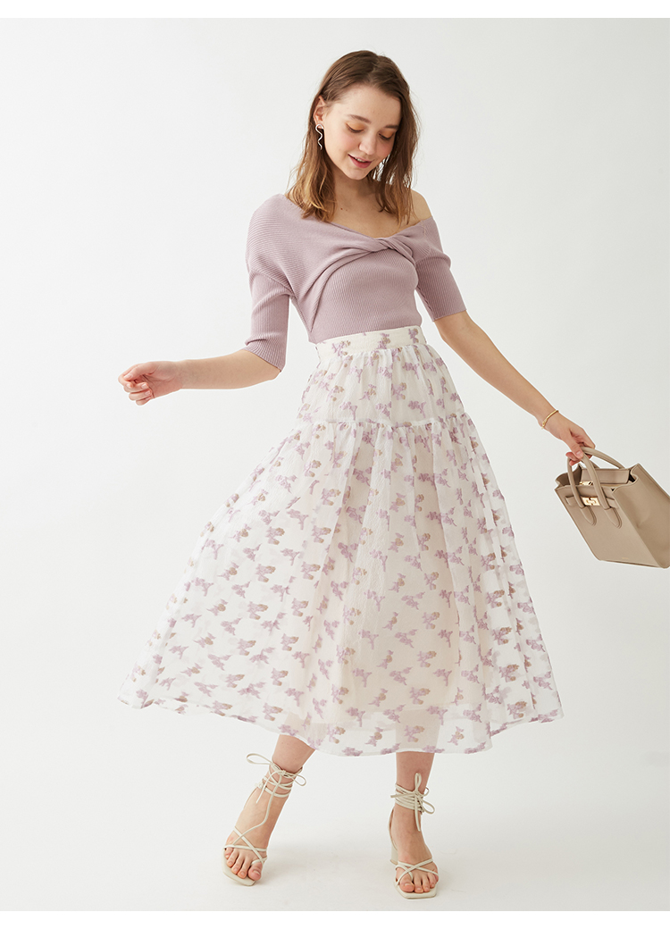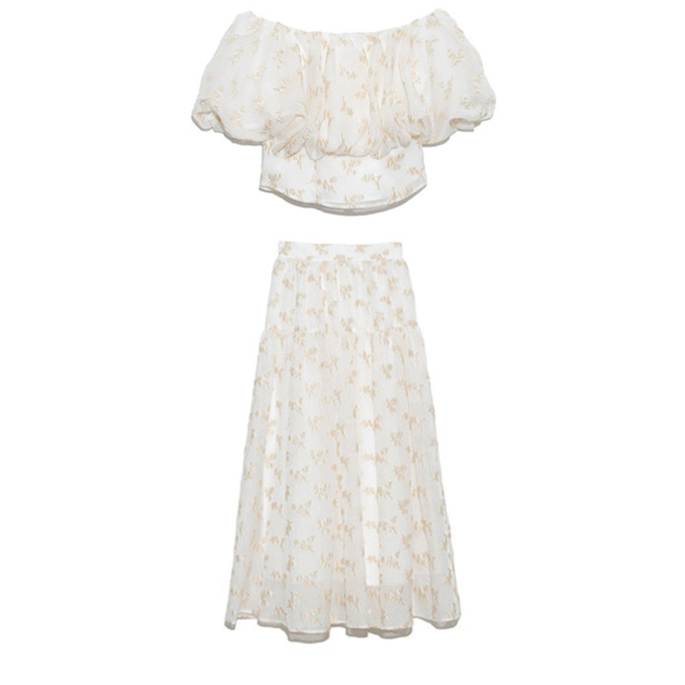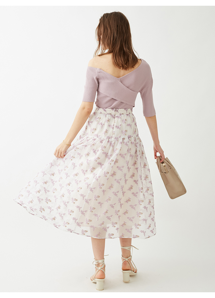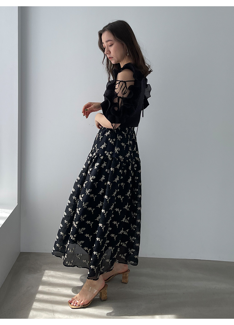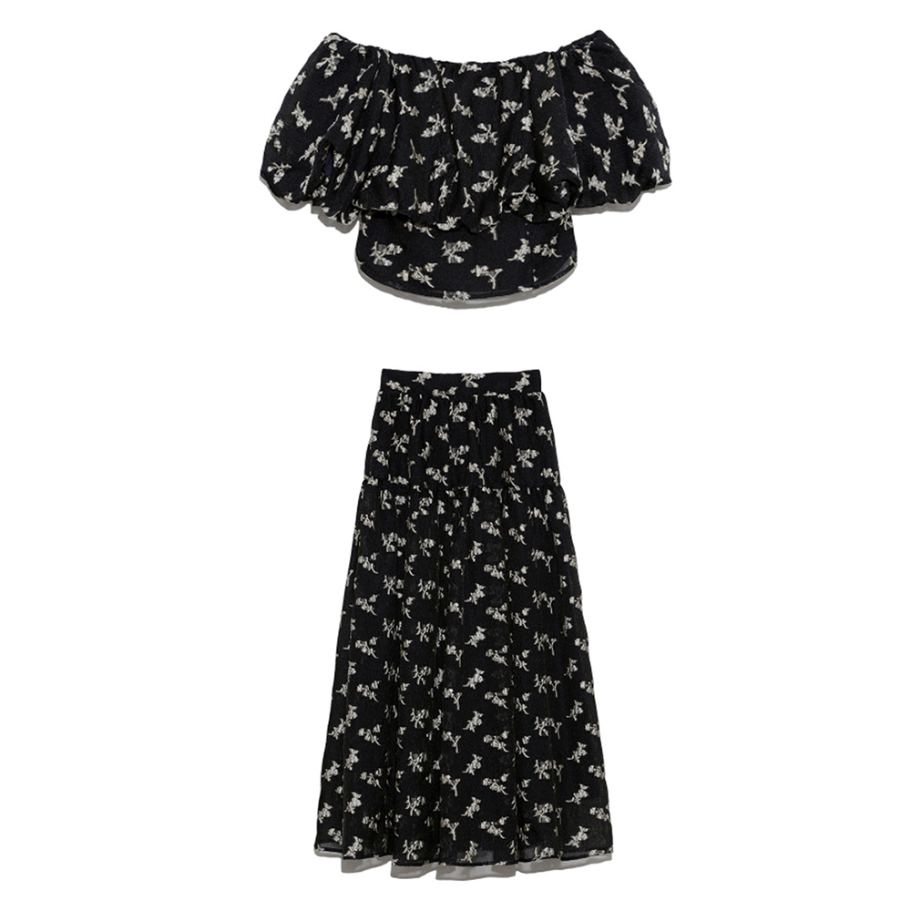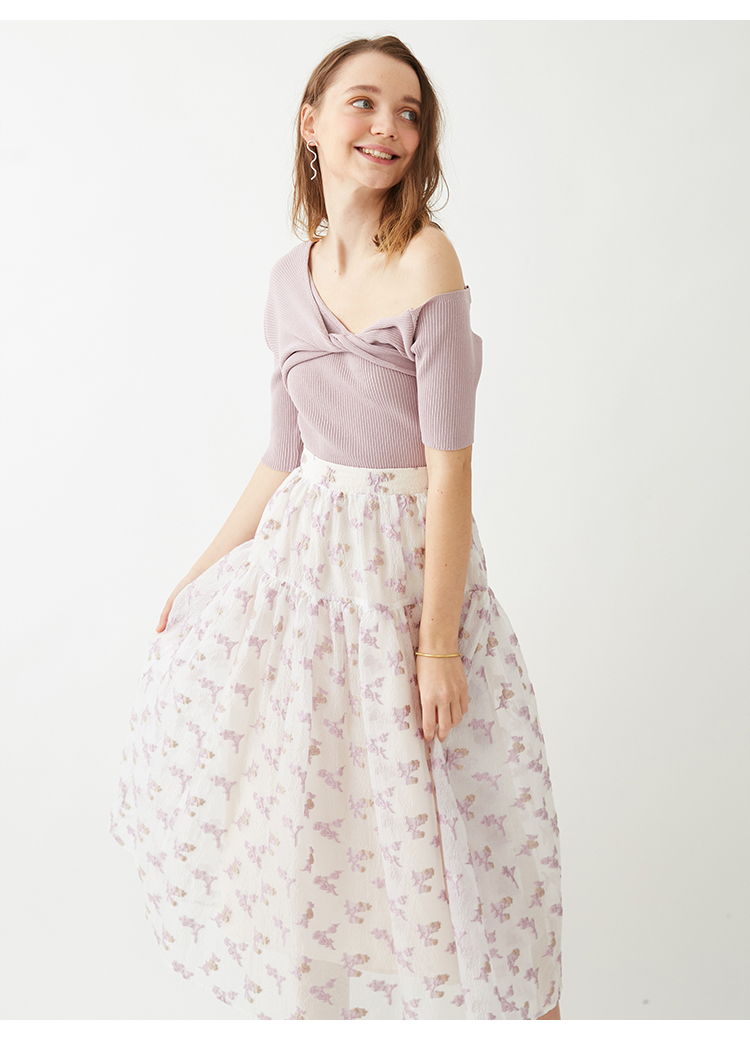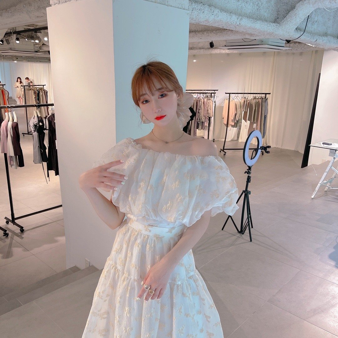 ジャカードオフショルブラウス+ジャガードボリュームスカート