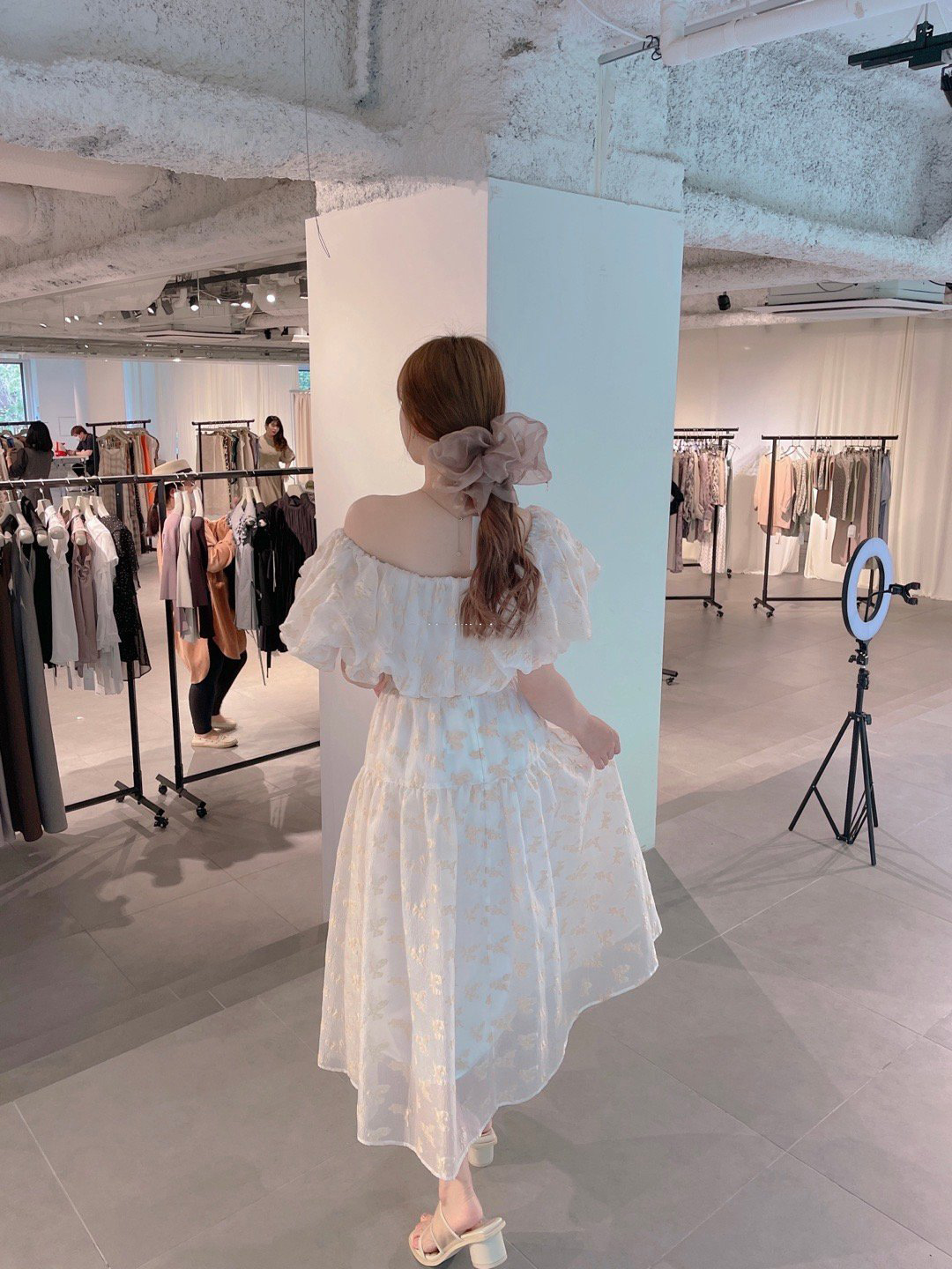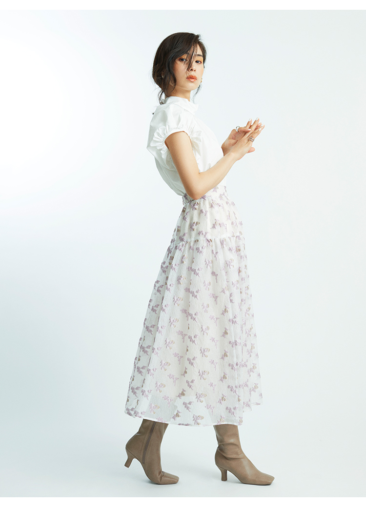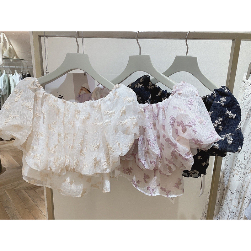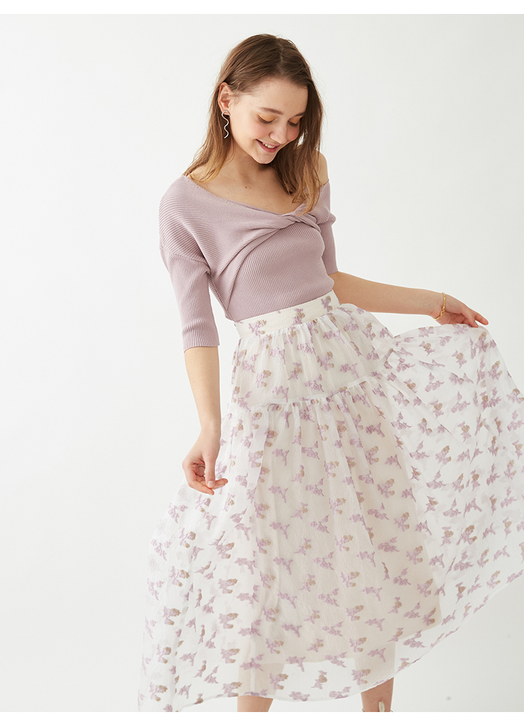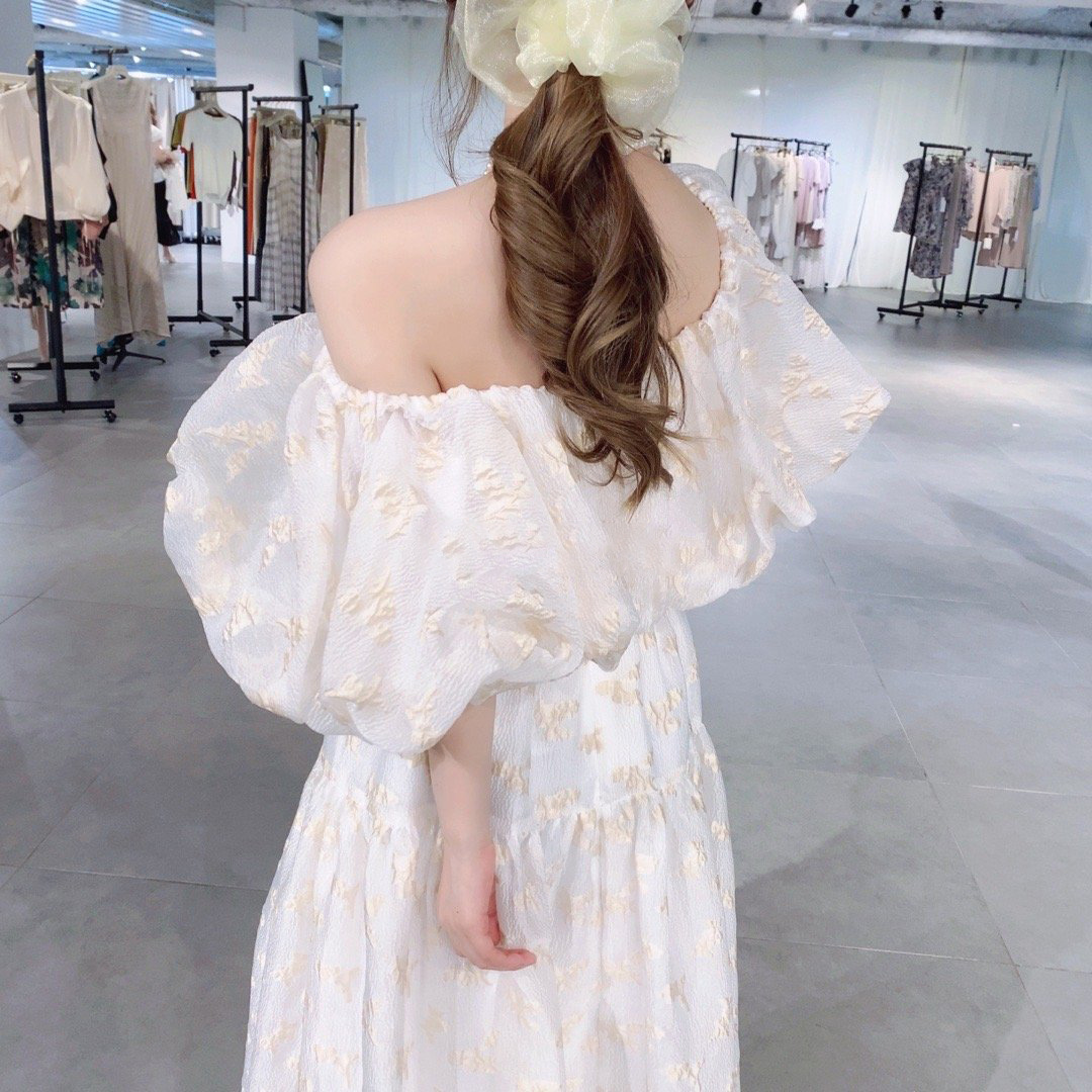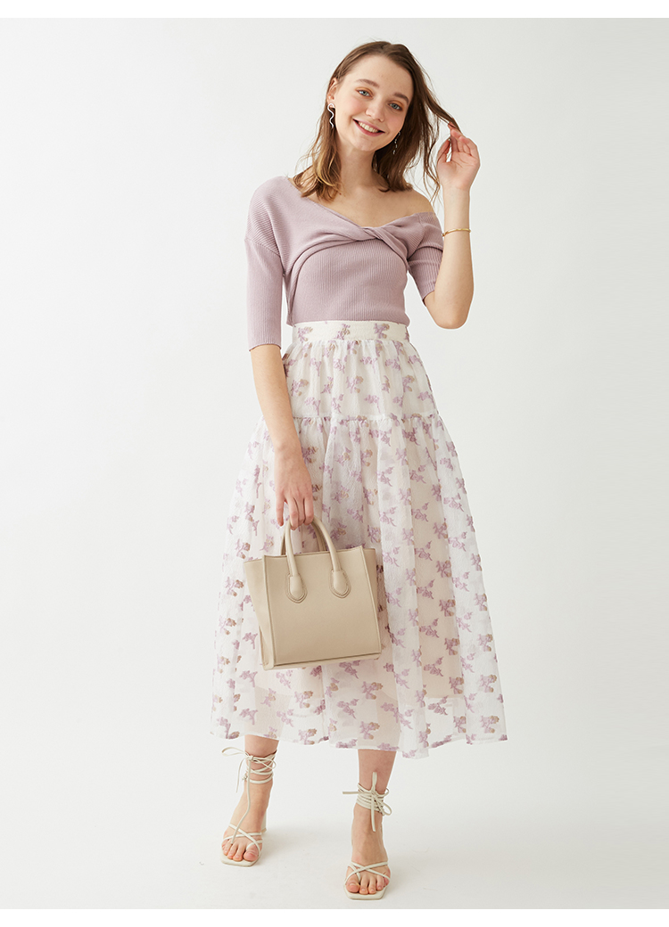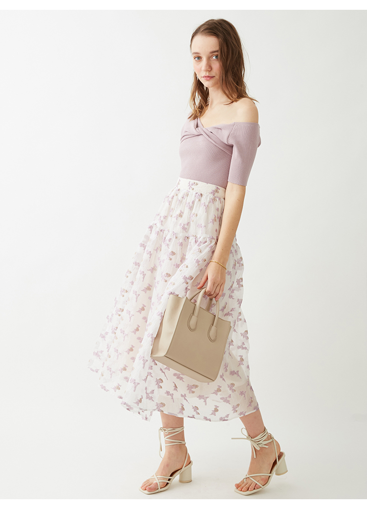 ジャカードオフショルブラウス+ジャガードボリュームスカート