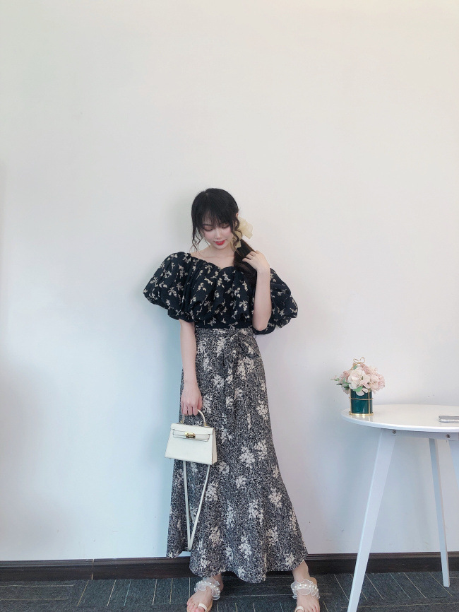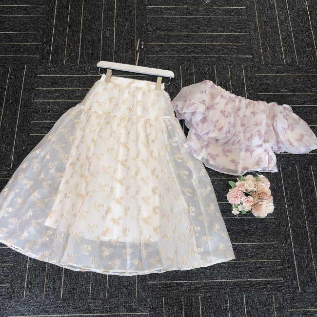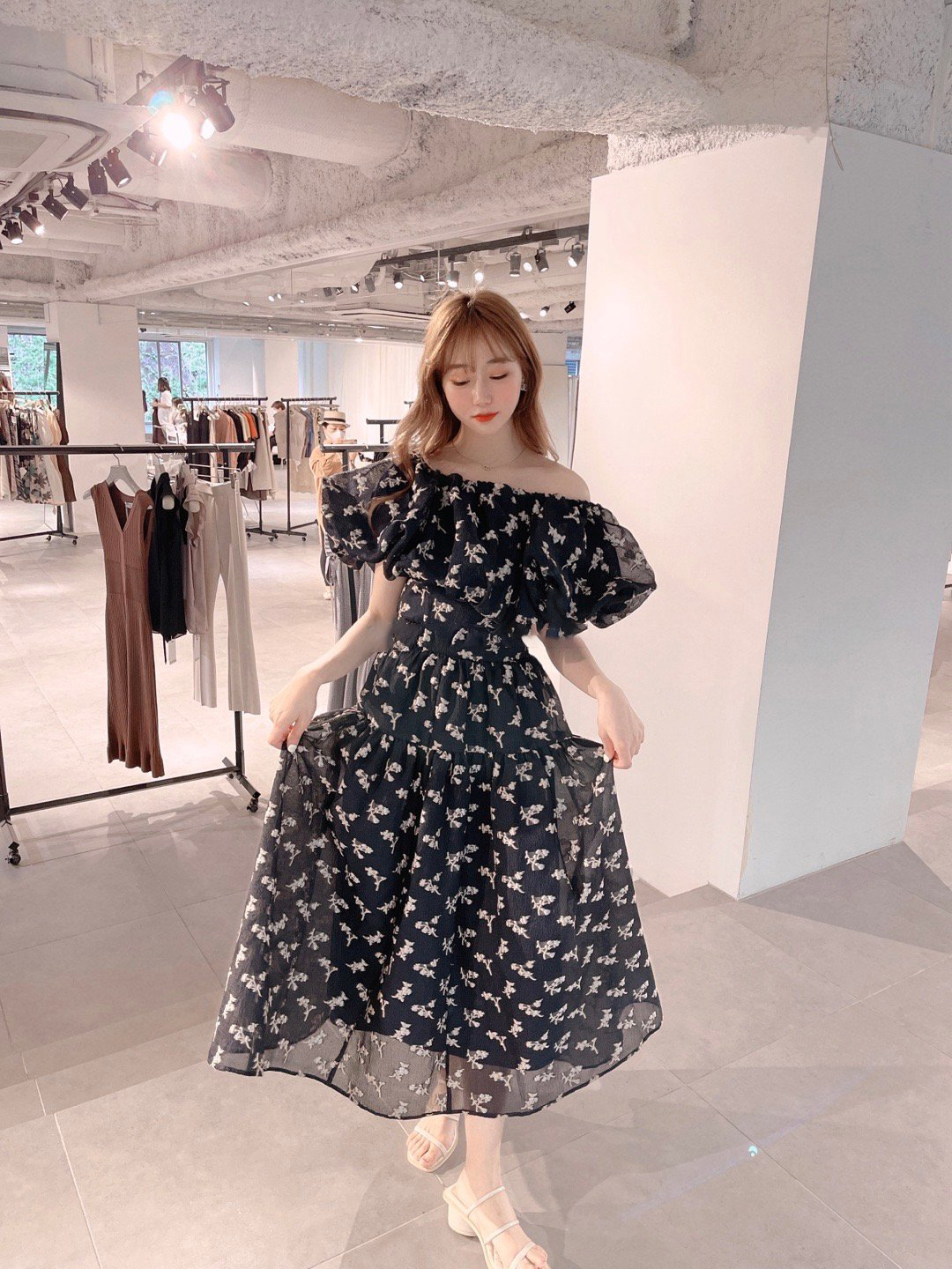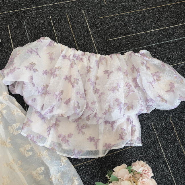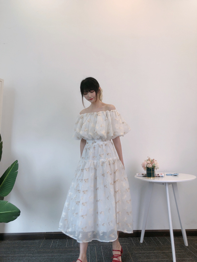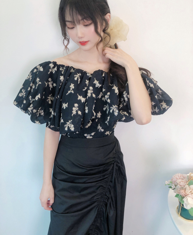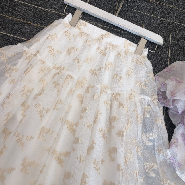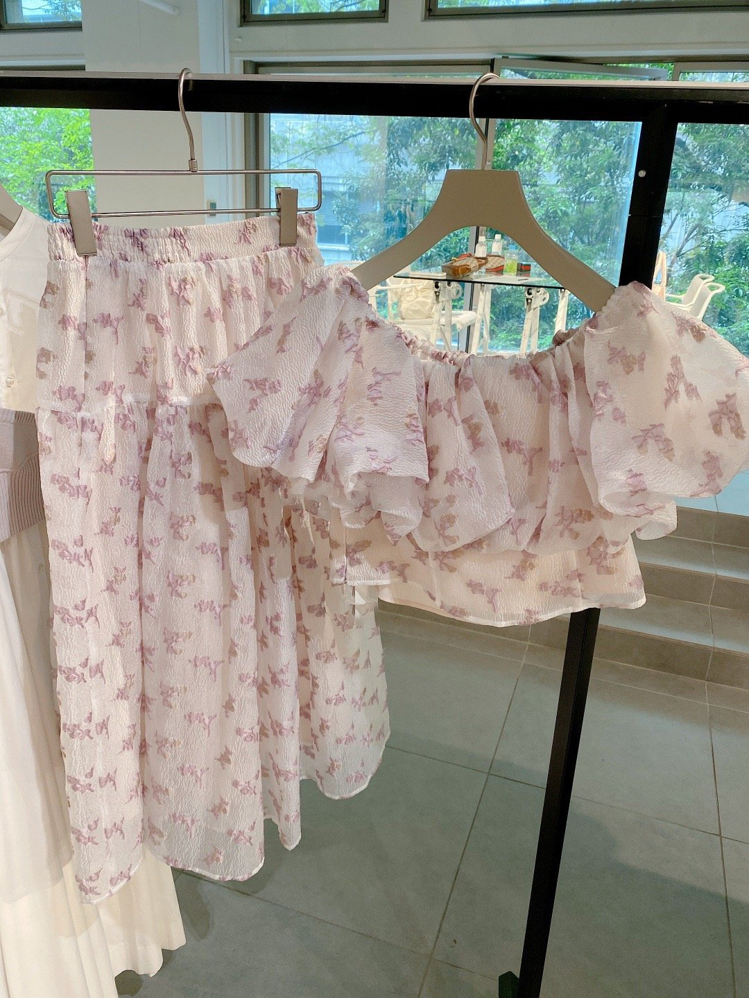 ジャカードオフショルブラウス+ジャガードボリュームスカート