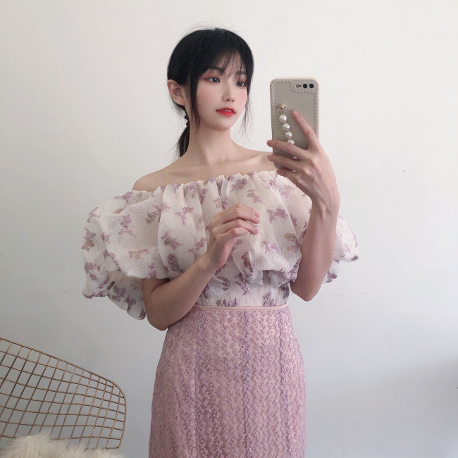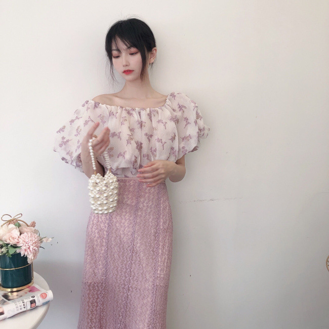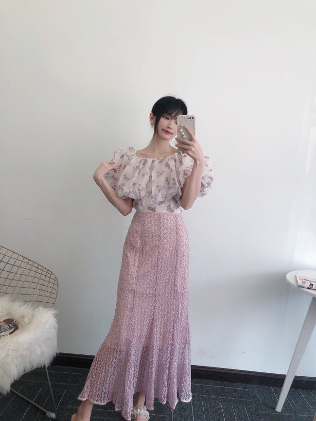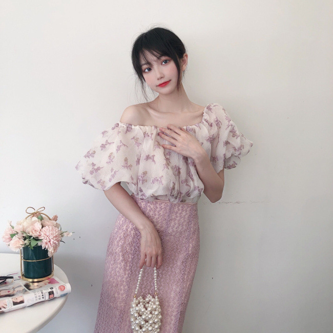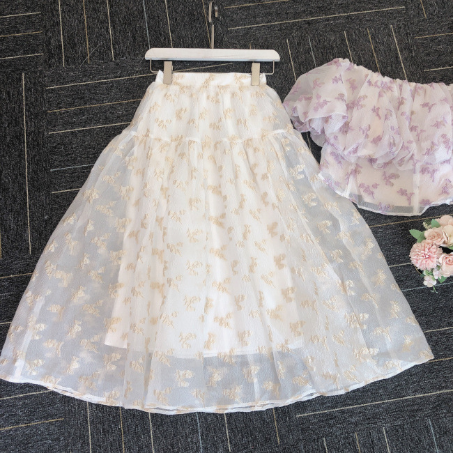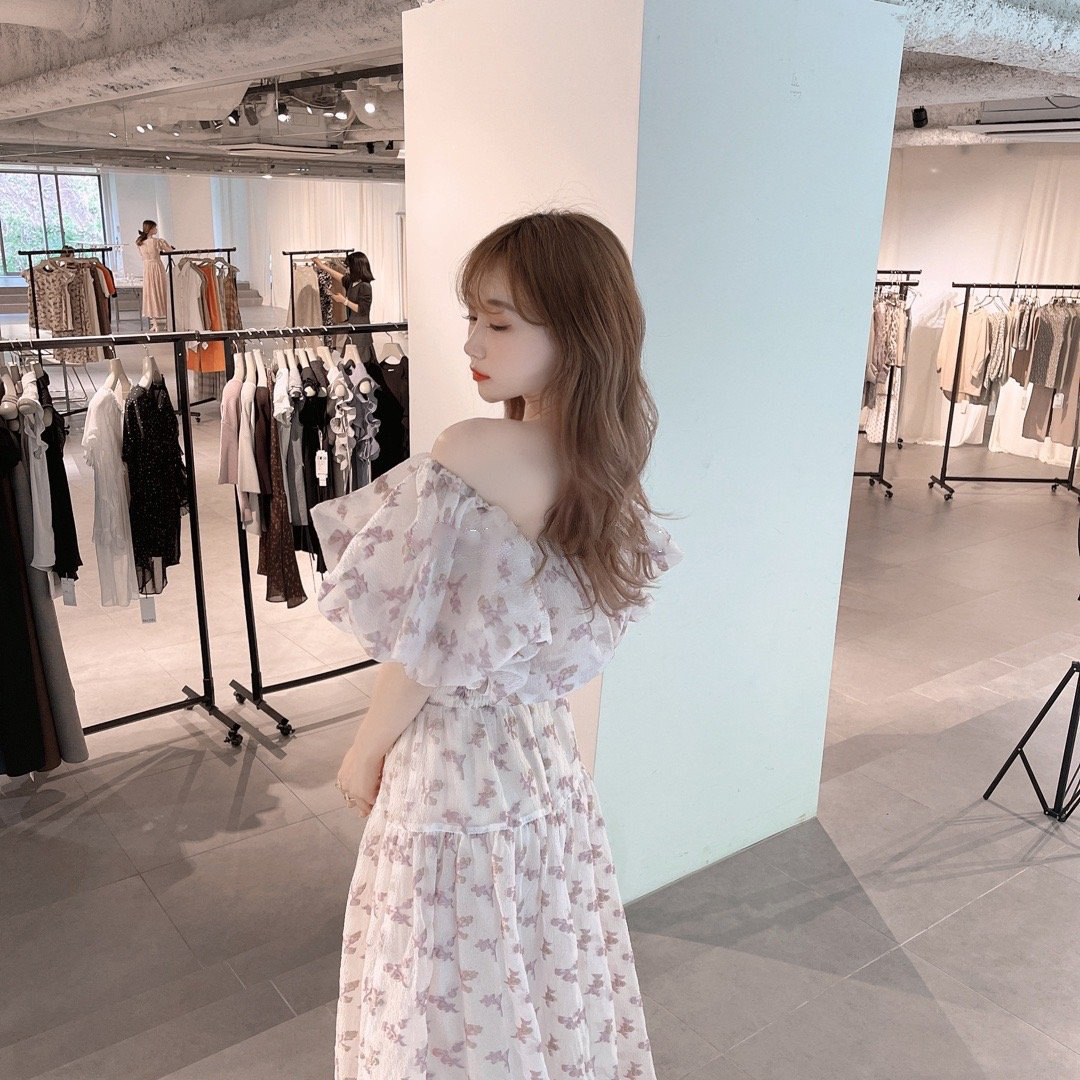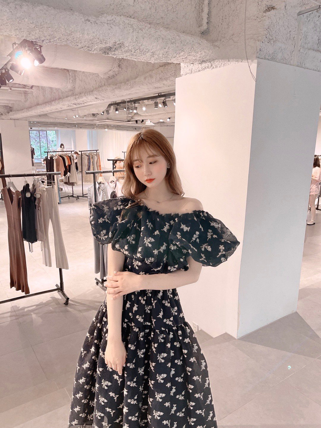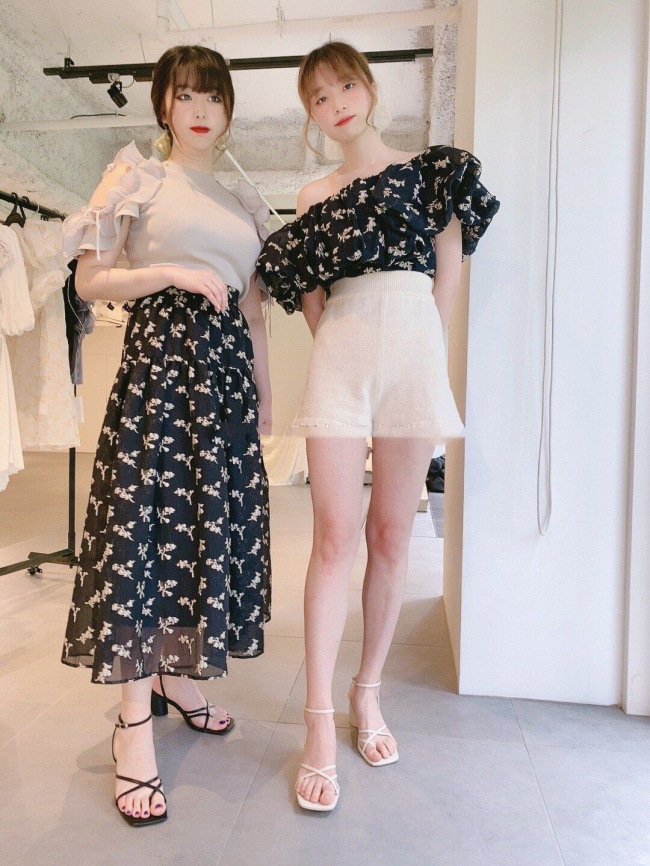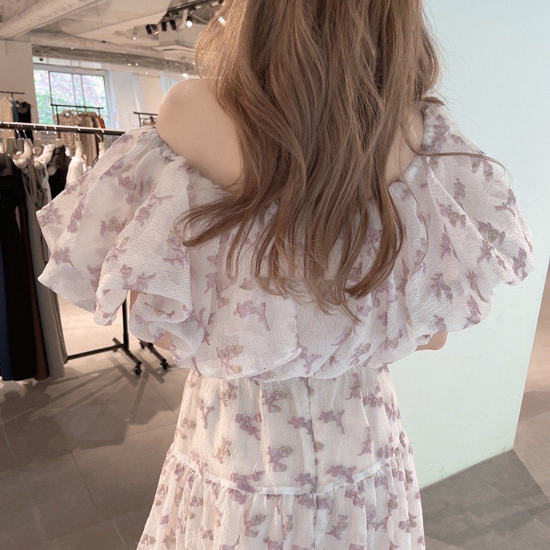 ジャカードオフショルブラウス+ジャガードボリュームスカート