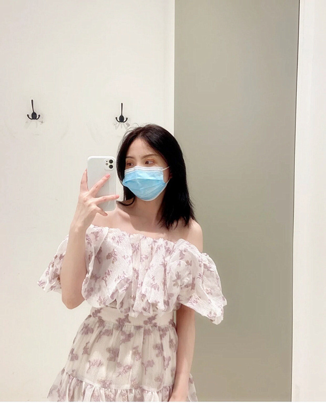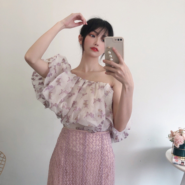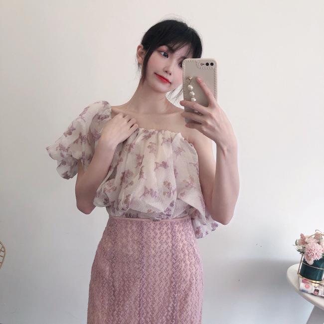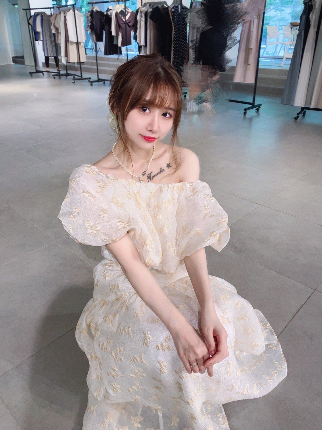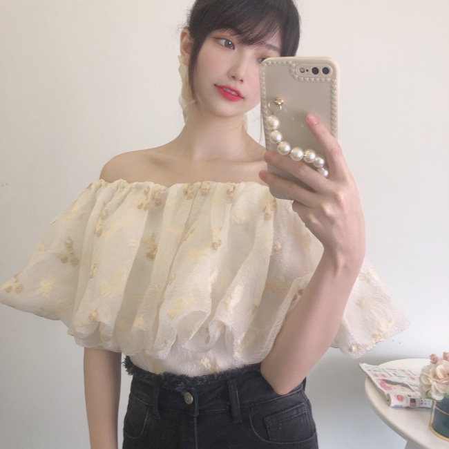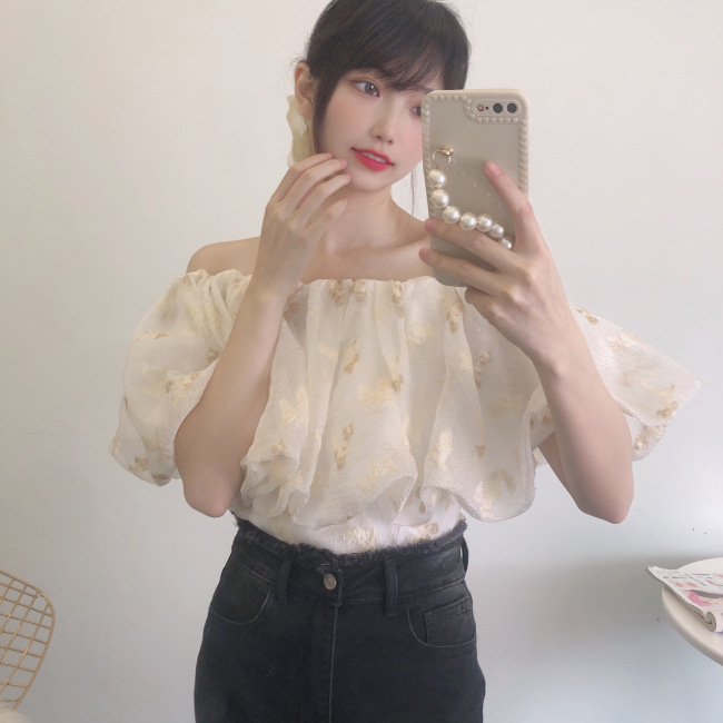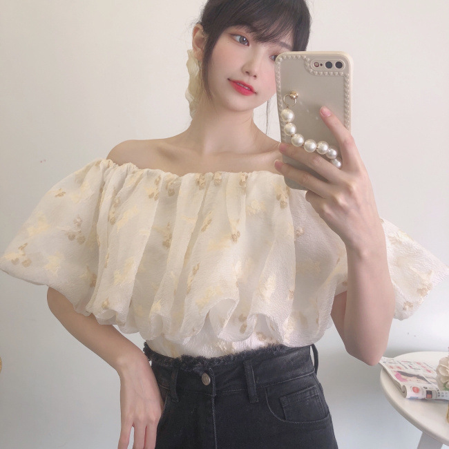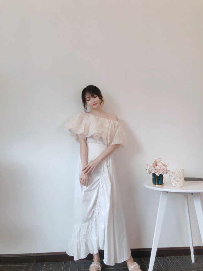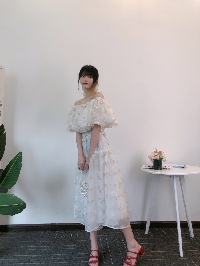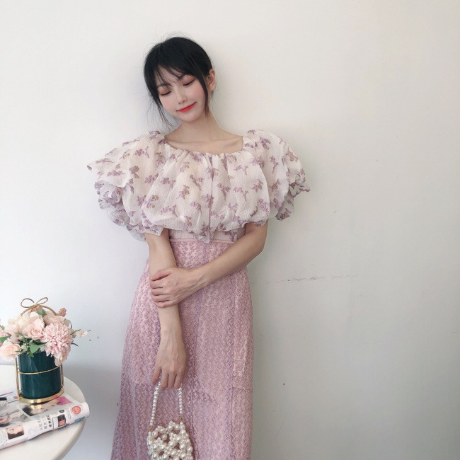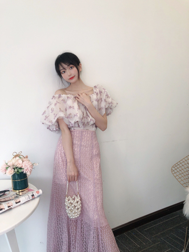 ジャカードオフショルブラウス+ジャガードボリュームスカート