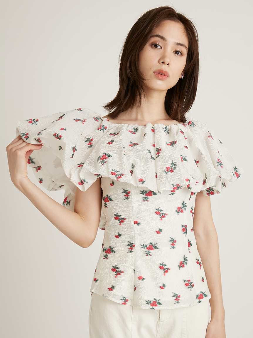 ジャカードオフショルブラウス
