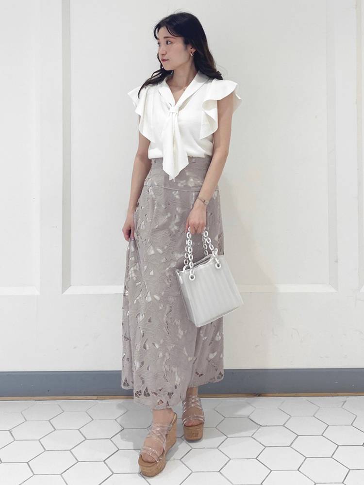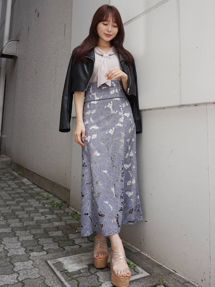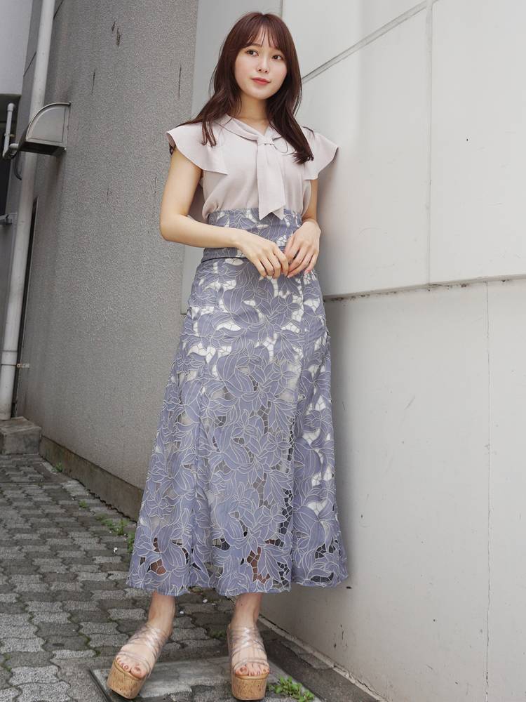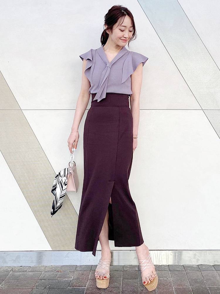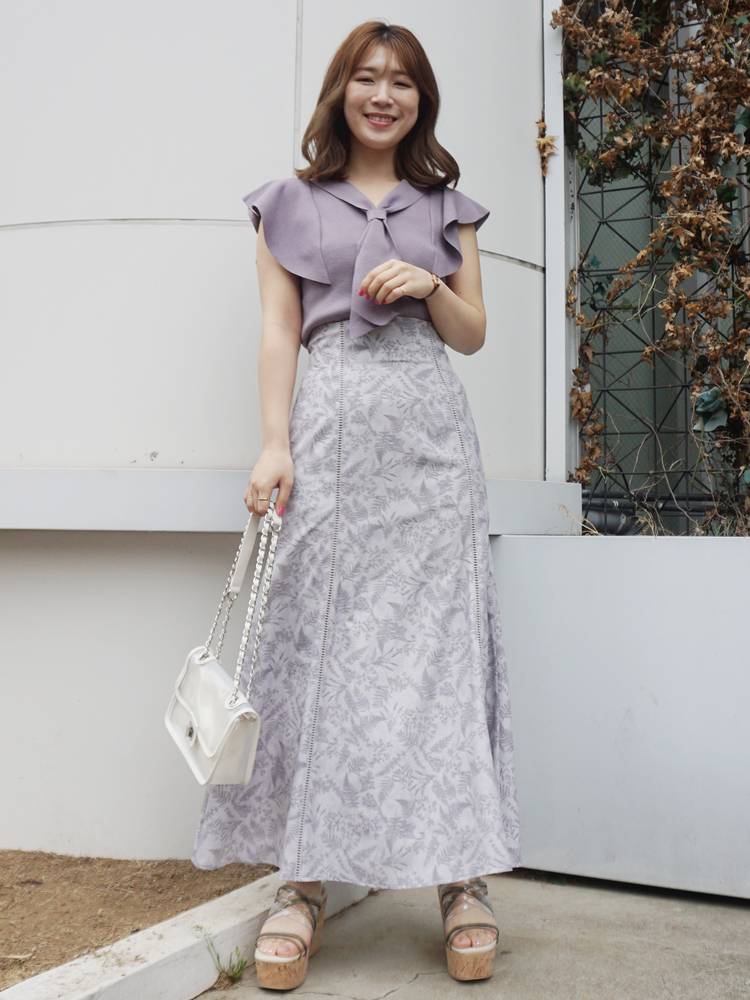 マーメイドシルエットやフレアスカートを合わせてよりフェミニンに仕上げるのがおすすめです。