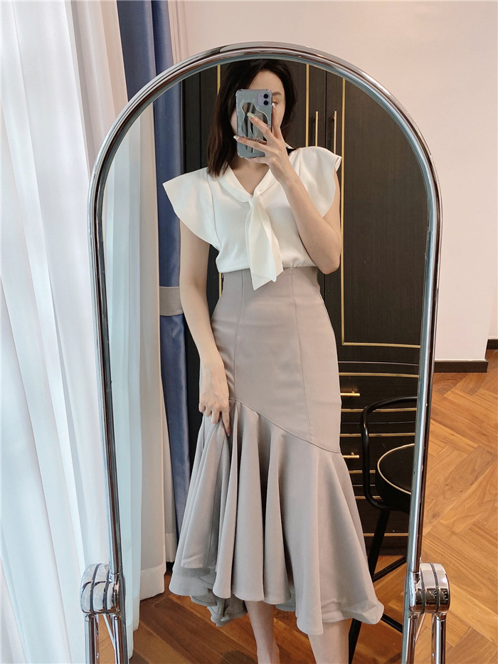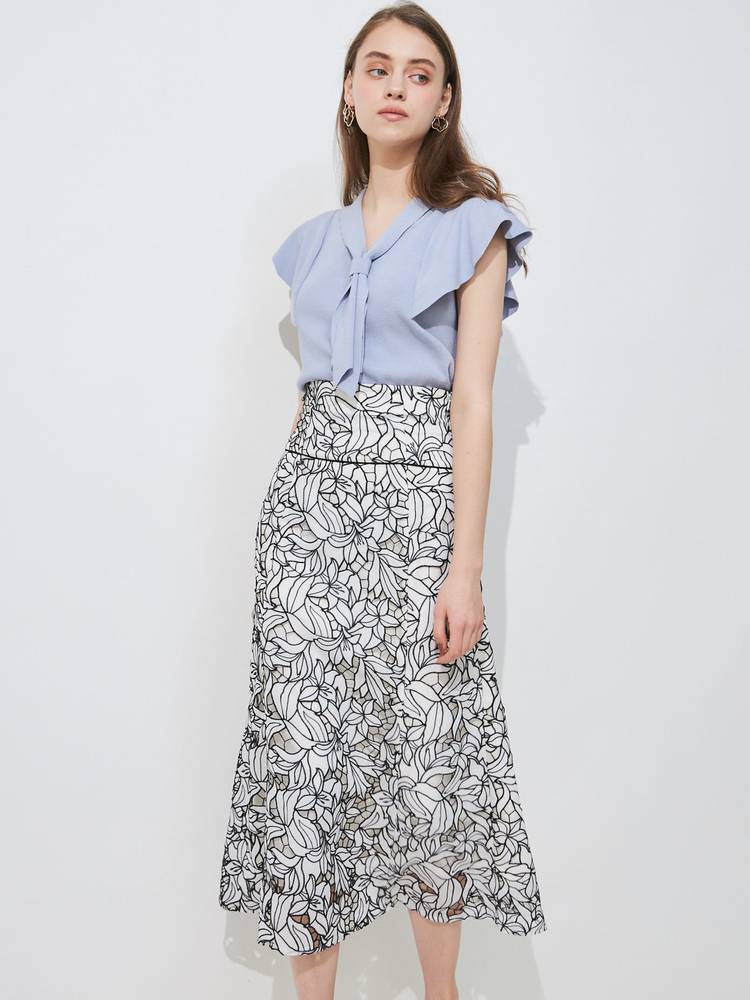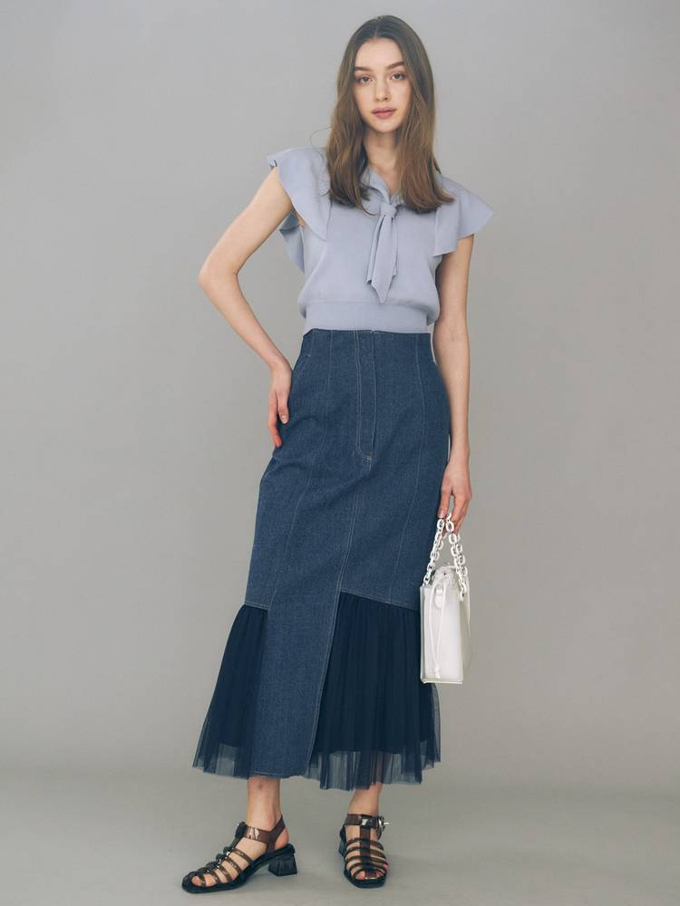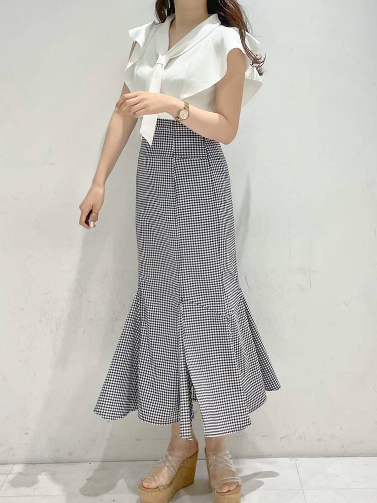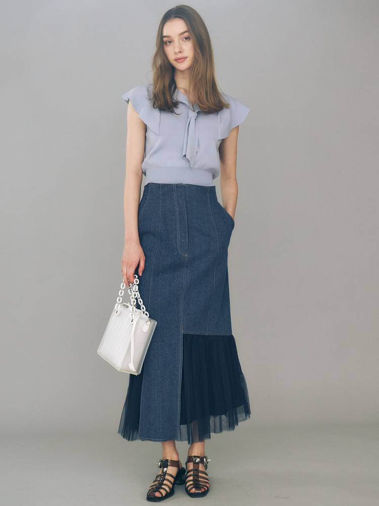 マーメイドシルエットやフレアスカートを合わせてよりフェミニンに仕上げるのがおすすめです。