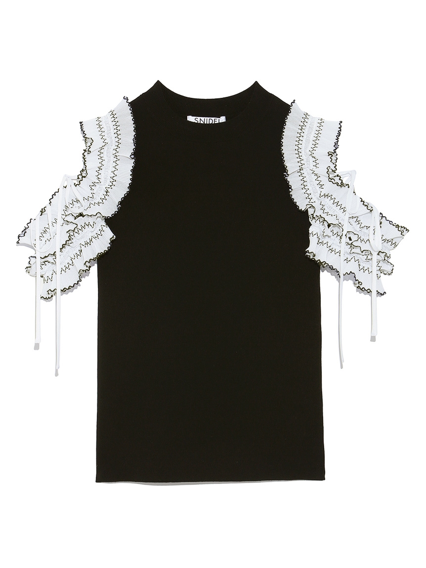Sustainableダブルフリルバイカラーニットプルオーバー
