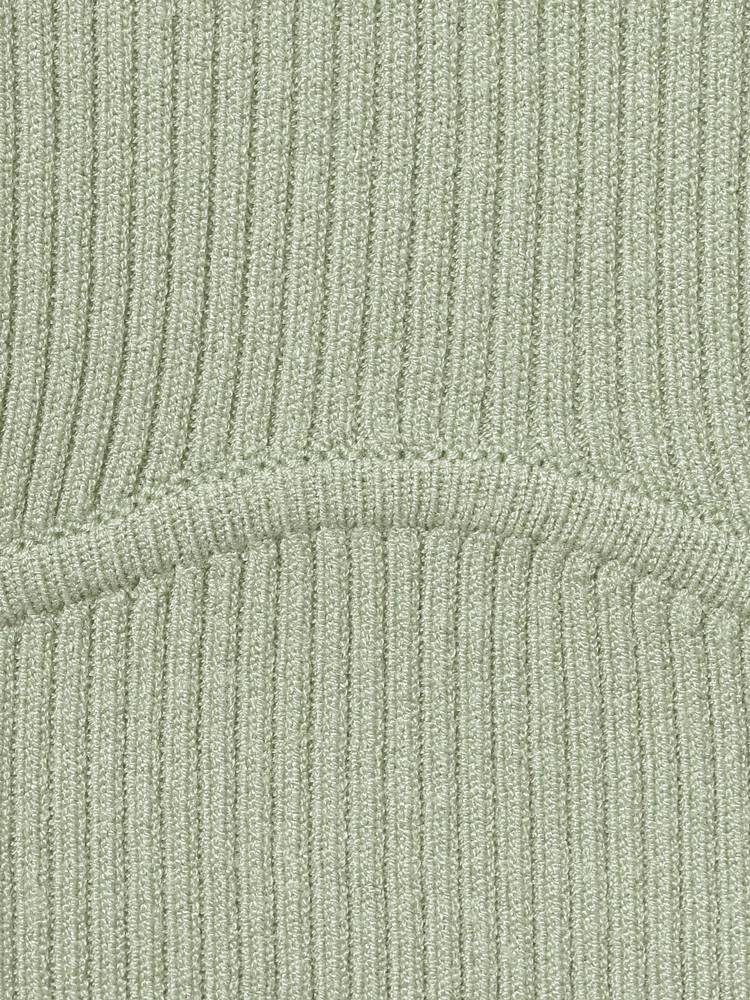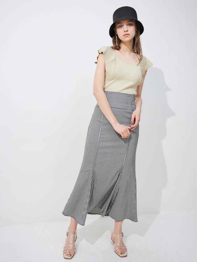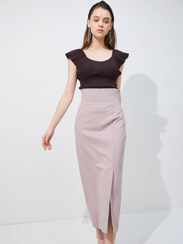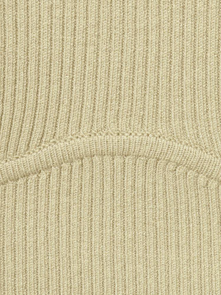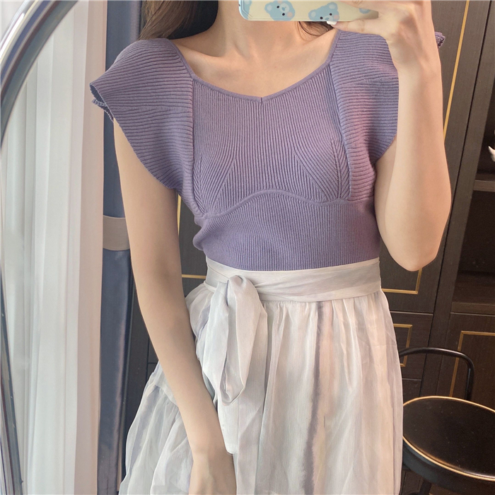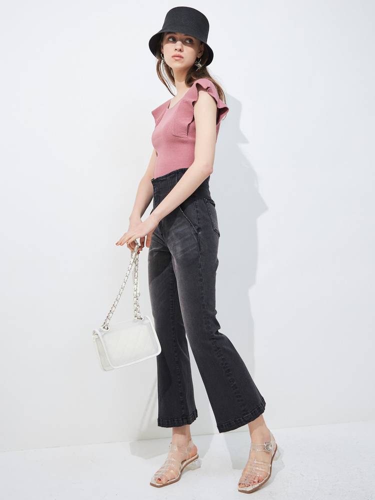 短丈でボトム合わせを迷わないサイジングはそのままに、ビスチェ風な編み柄がデザインポイントです。