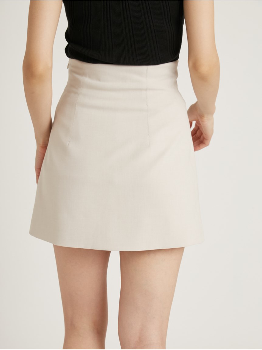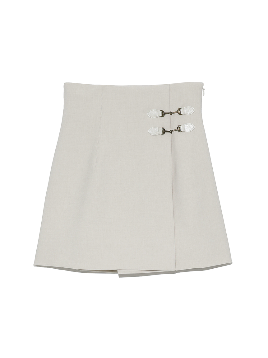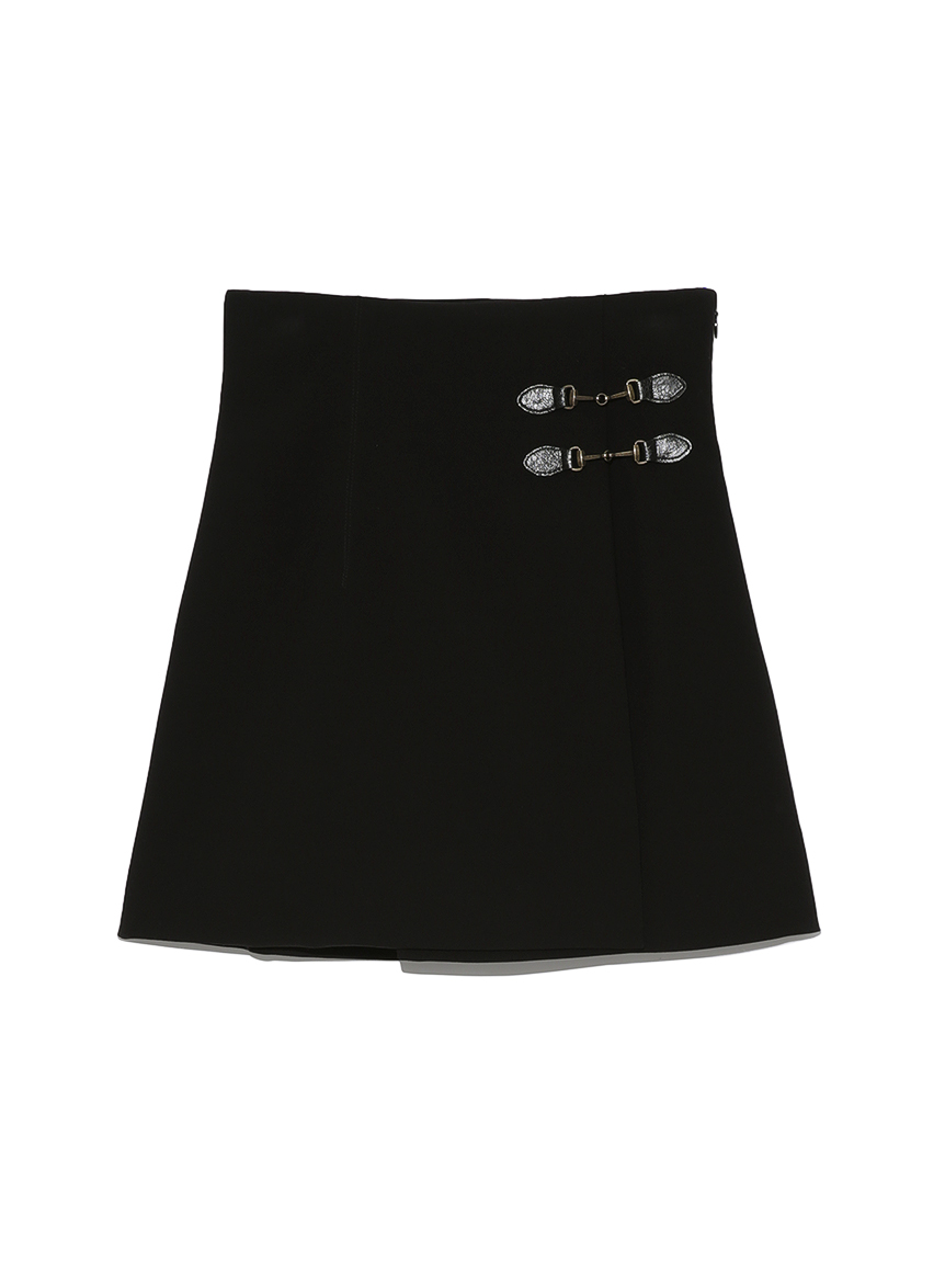 サイドにあしらわれたビットが特徴的な、クラシカルなデザインのスカショーパン。ラップスカートの中にショートパンツをドッキングし、ミニ丈でも気にせず履けるデザインです。タイトな腰回りから裾に向かってゆるやかに広がる女性らしいシルエット。トレンド感のあるハイウエストデザインは、スタイルアップ効果も絶大です。様々なトップスと合わせやすく、幅広いコーディネートに活躍してくれます。