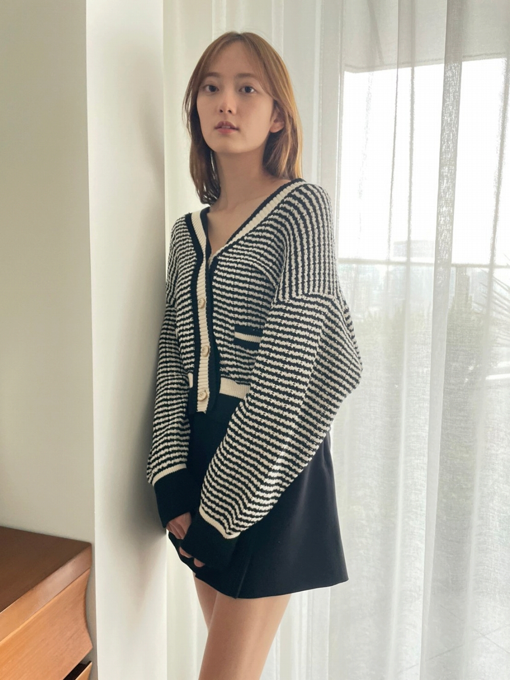 身体のラインを拾いにくい程よい厚みのある生地を使用。スタンダードなアイボリーとブラックに、トラッドなチェックを加えた3色をご用意しました。