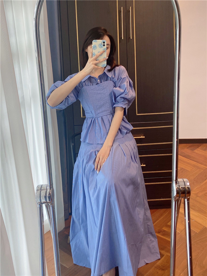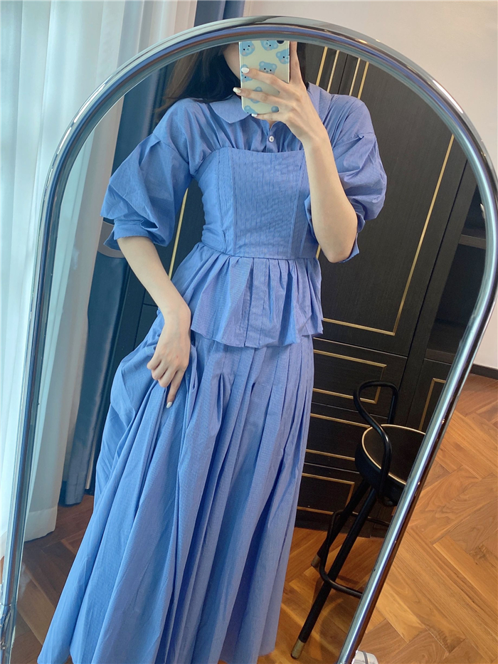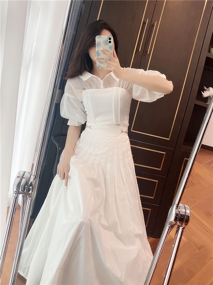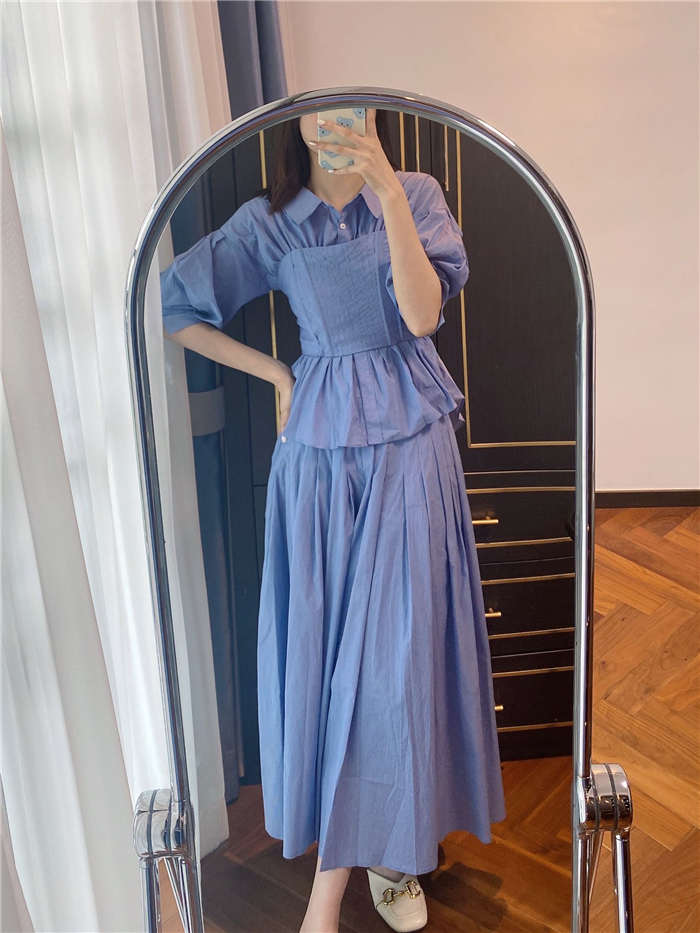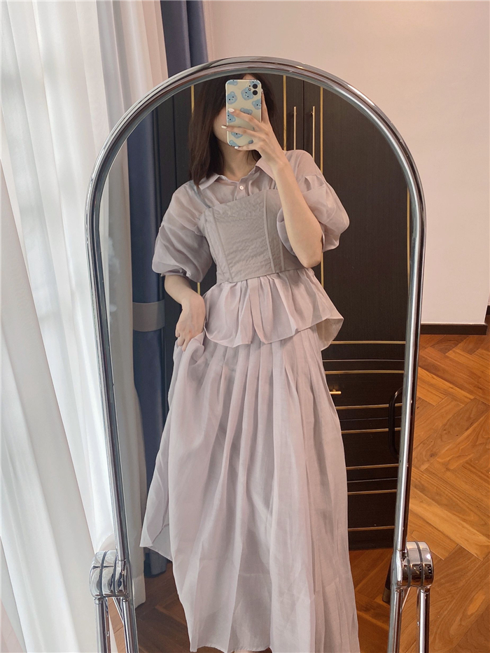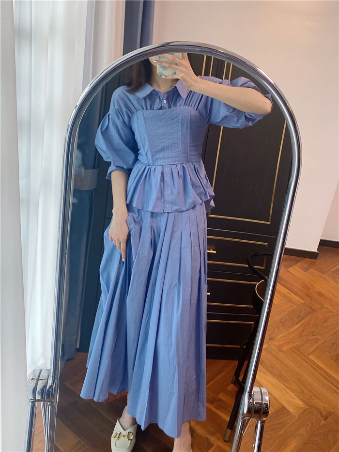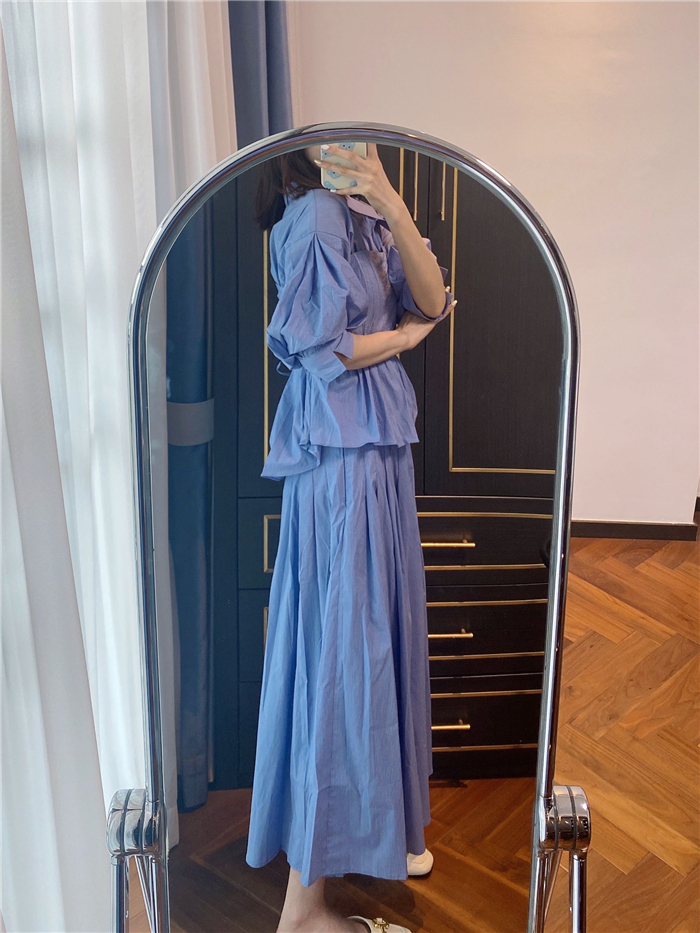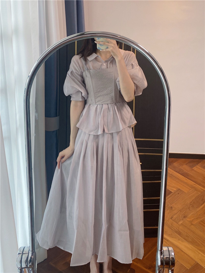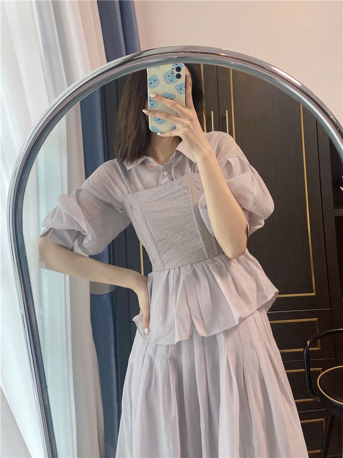 まるでコルセットをレイヤードしているかのようなドッキングデザインのブラウス。ふんわりと丸みのあるボリュームスリーブが愛らしさを高めるポイント。背中部分にはレースアップデザインを落とし込み、後ろ姿までフェミニンに仕上げています。裾部分に広がりのあるシルエットなので気になるボディラインがカバーできるのも嬉しい。同素材を使用したスカート(SWFS222095)とセットアップで着用いただけます。