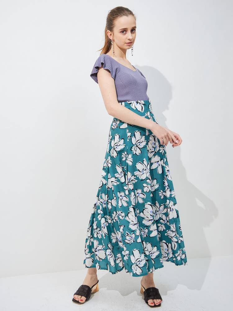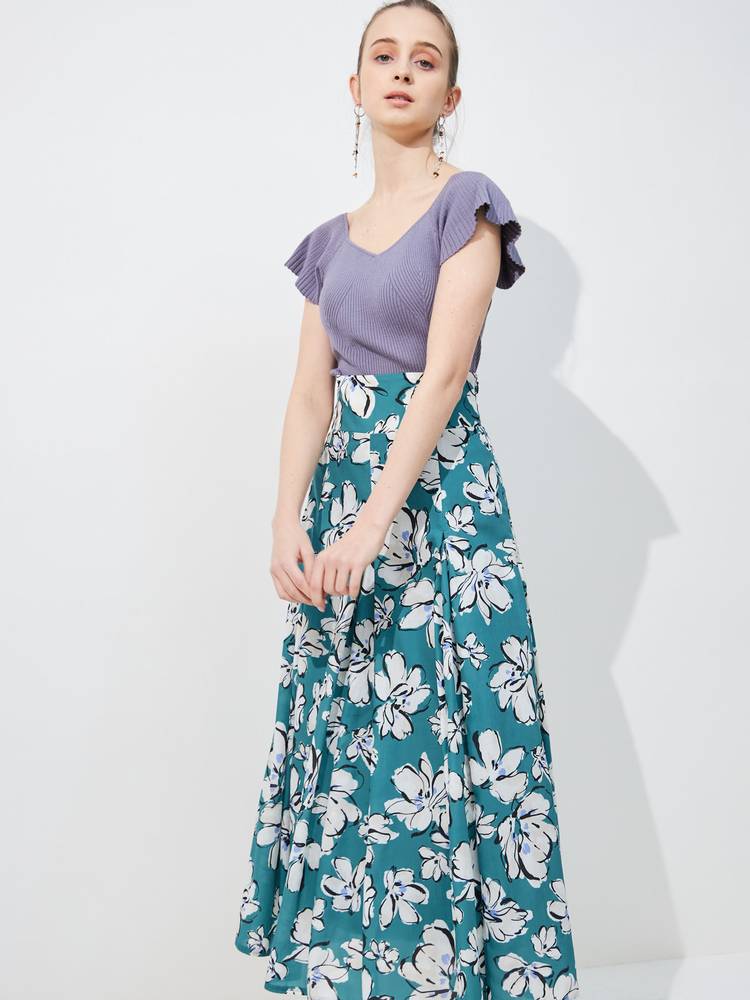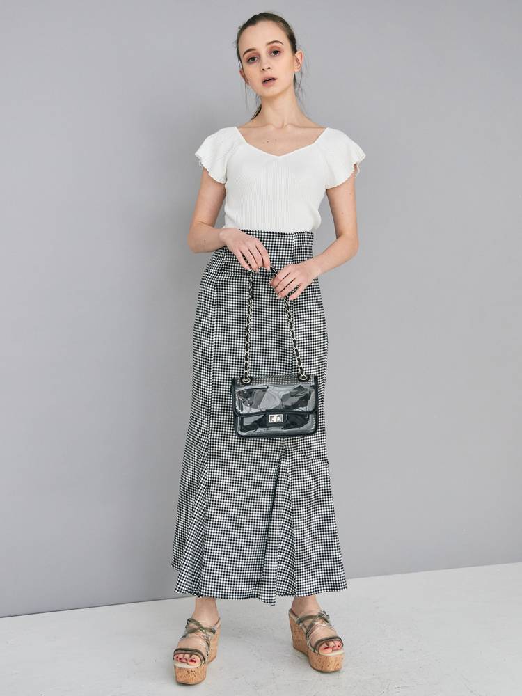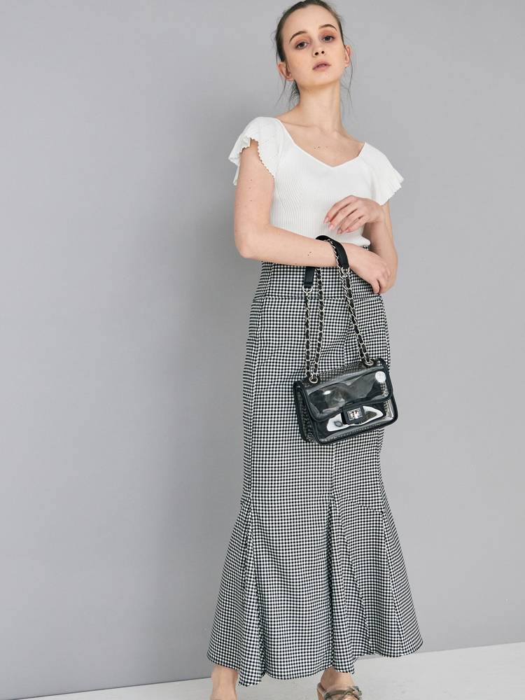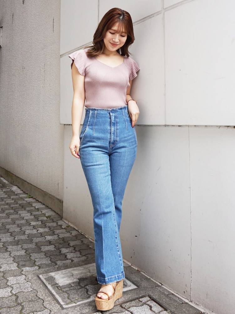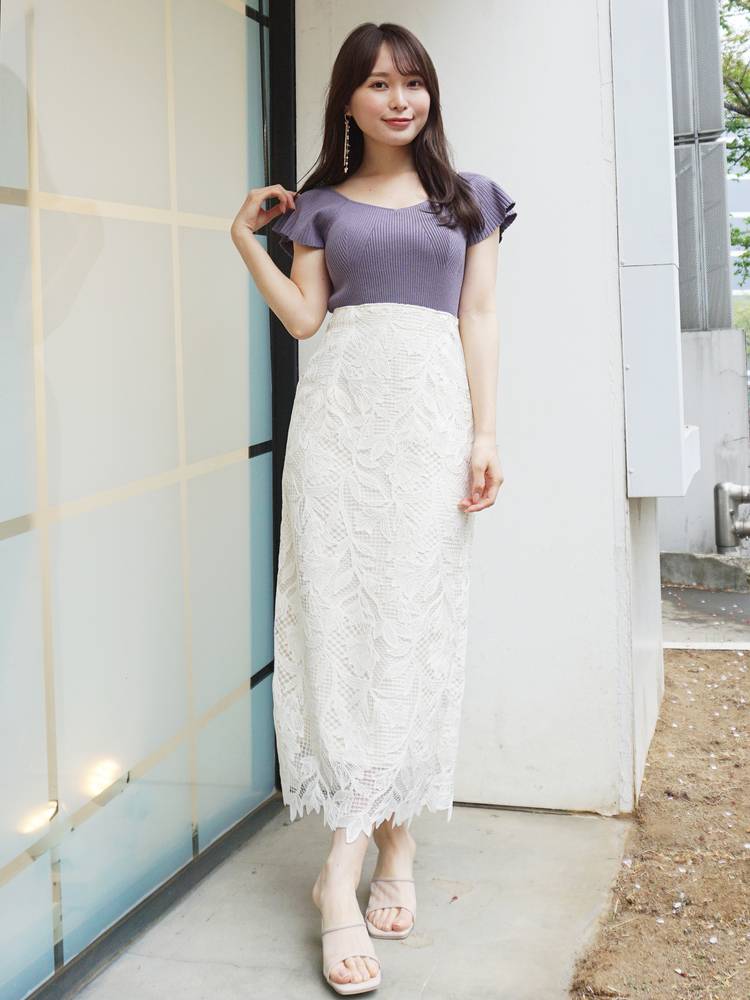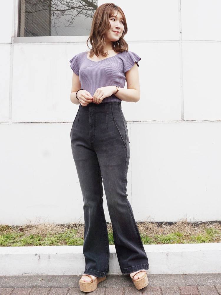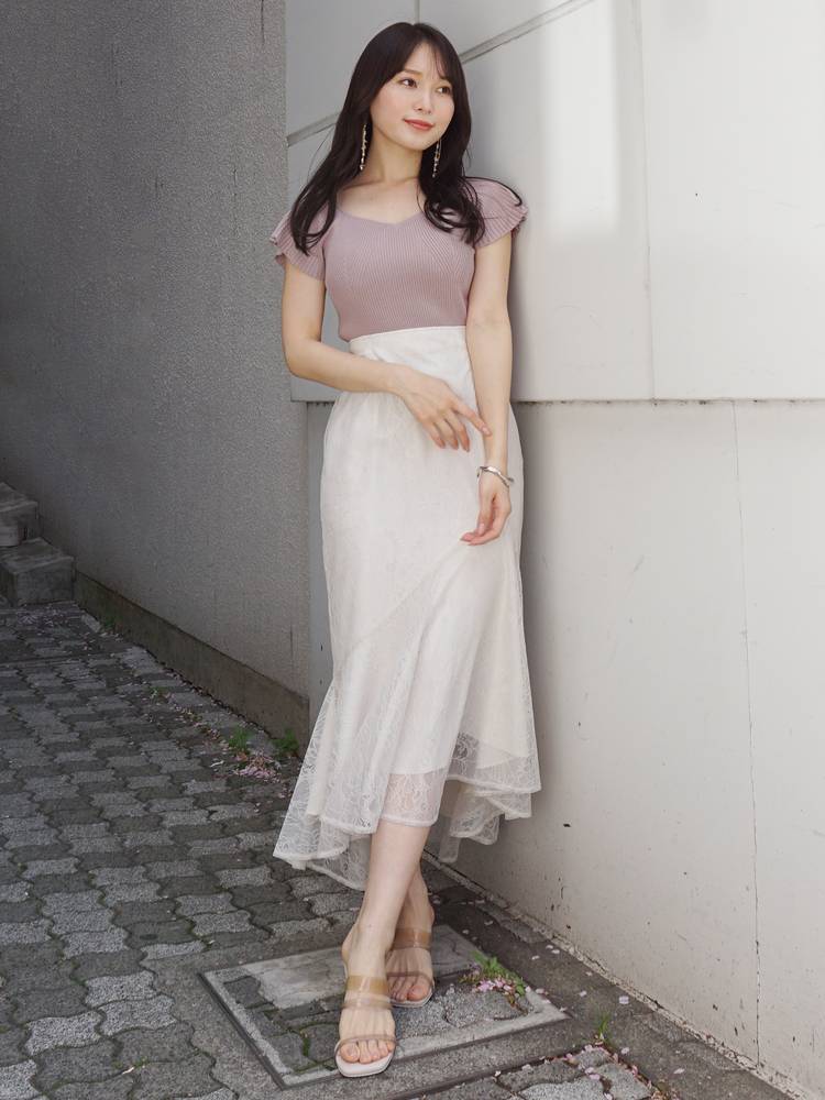 レーススカートやプリントのスカートなどフェミニンなアイテムにはもちろん、デニムやパンツスタイルと甘辛ミックススタイルも楽しめます。