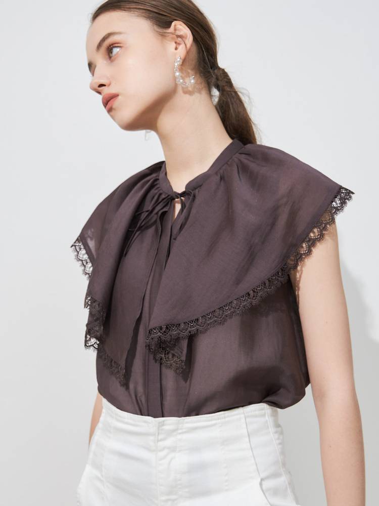 上品な光沢感と程よいシアー感のある生地を使用したブラウス。