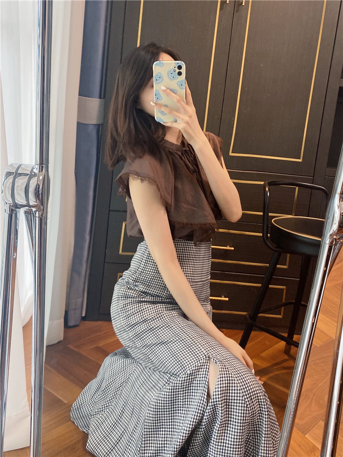 少し長めの着丈にしているので、パンツやミニボトムと合わせてアウトスタイリングで着ることもできます。