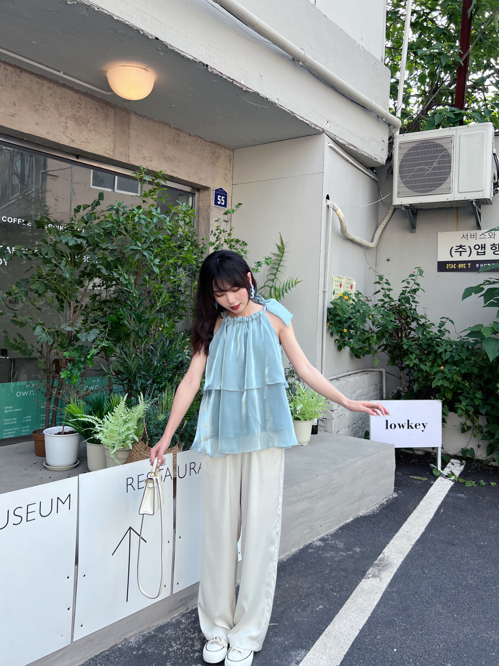 軽量でパール調のシルク生地が全体の印象を引き締める ケーキスカート風のトップスがガーリーな雰囲気を醸し出し、ゆったりとした着心地は涼しげで、夏のお出かけにぴったりです。 サイズ 着丈 バスト S 54cm 130cm M 55cm 132cm L 56cm 134cm