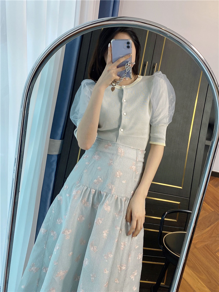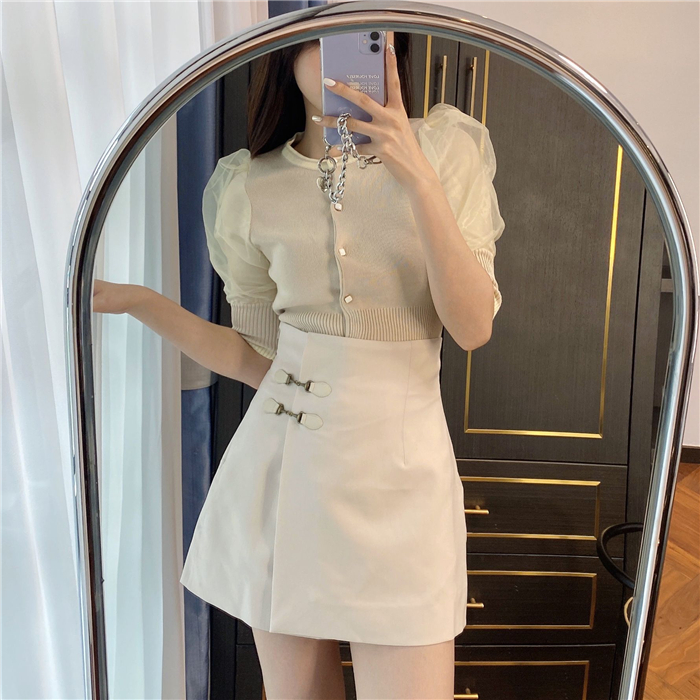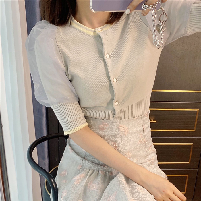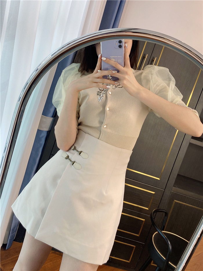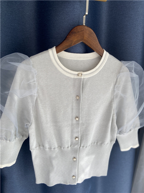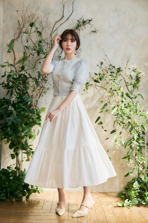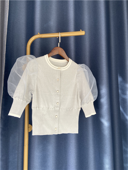 ホリデーシーズンのOrgandy Fairy Knit Topが可愛かったので半袖バージョンを作ってみました!今回は優しいニュアンスカラーのmilky saxとbeigeの2色展開です。