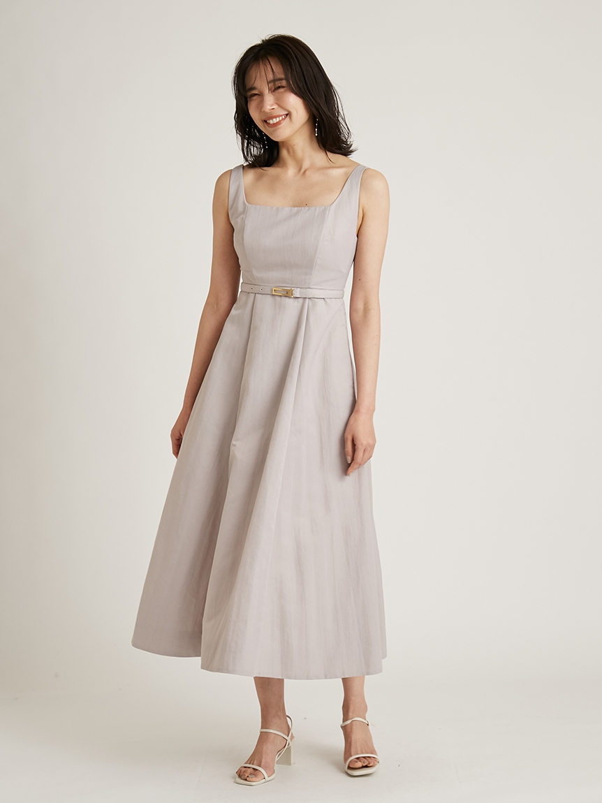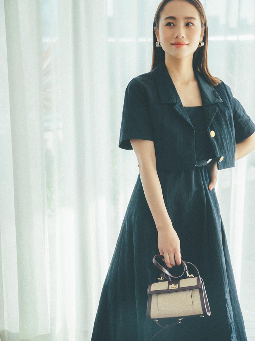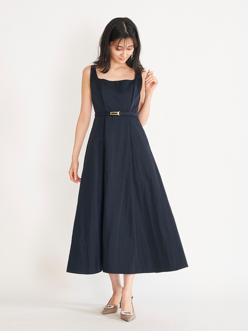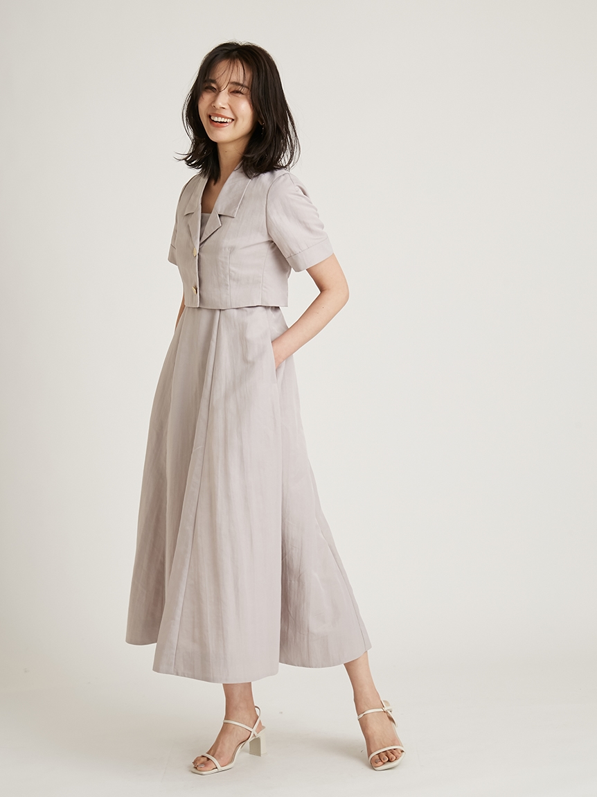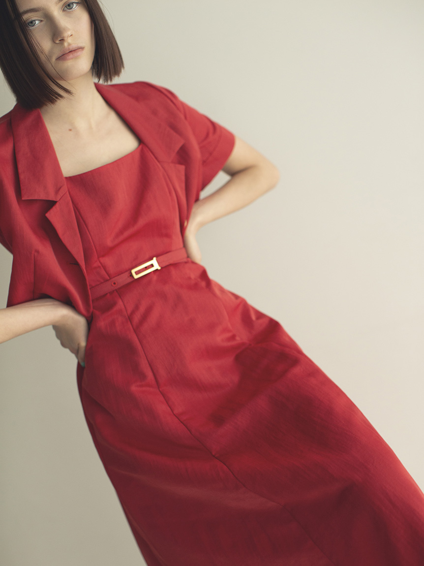 タイトな身頃から裾に向かってふんわりと広がる立体的なフレアラインが印象的。クラシカルなフィット&フレアシルエットで上品に仕上げた、オケージョンシーンにぴったりのワンピースが届きました。ゴールドバックルが光るベルトでウエストをマークすればより洗練された印象に。すっきりと開いたスクエアネックは同素材のジャケット(SWFJ222136)とバランスが良く、セットアップで着ていただくのもおすすめです。