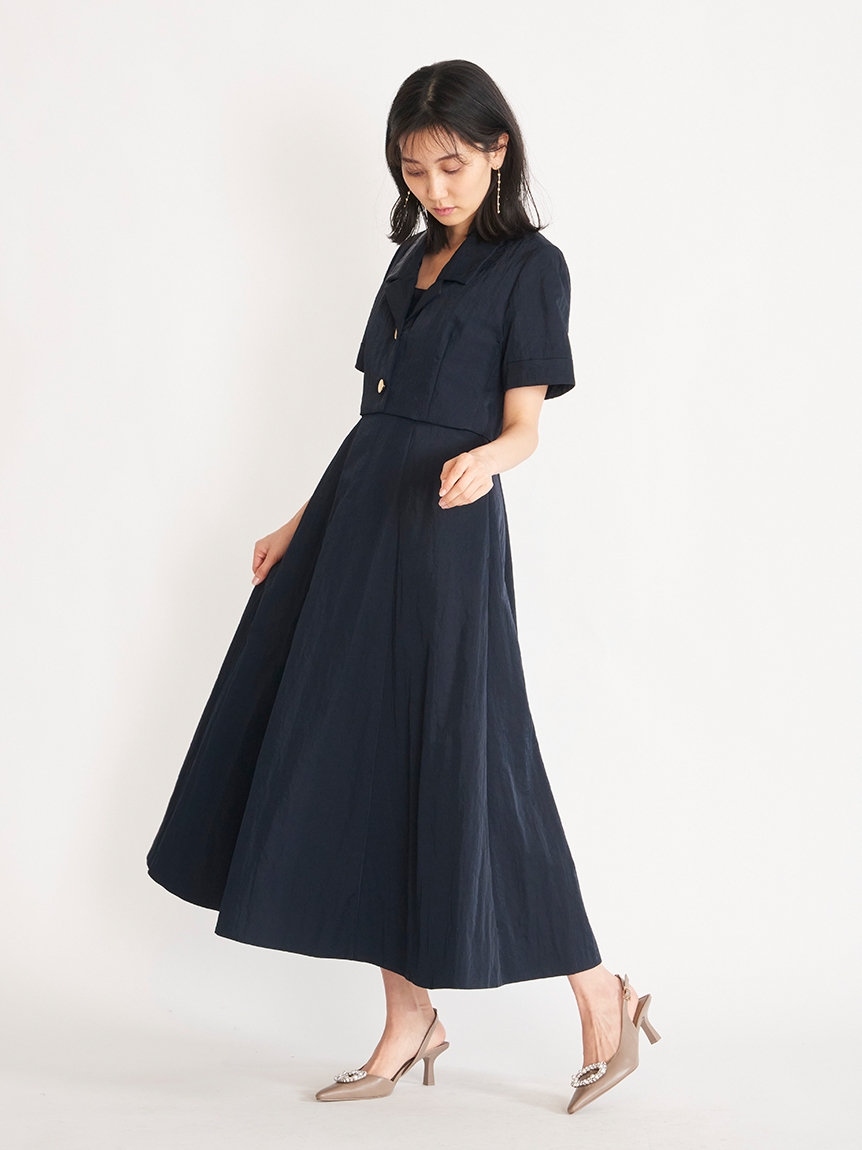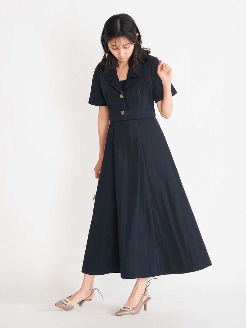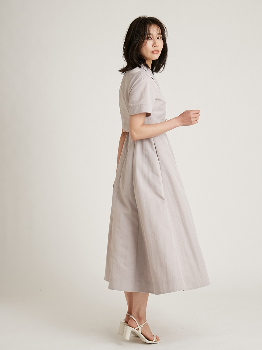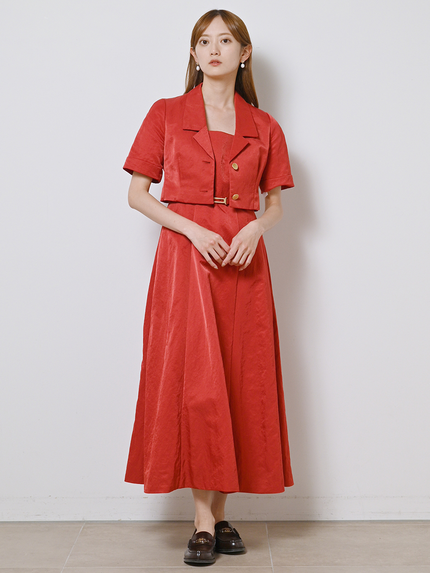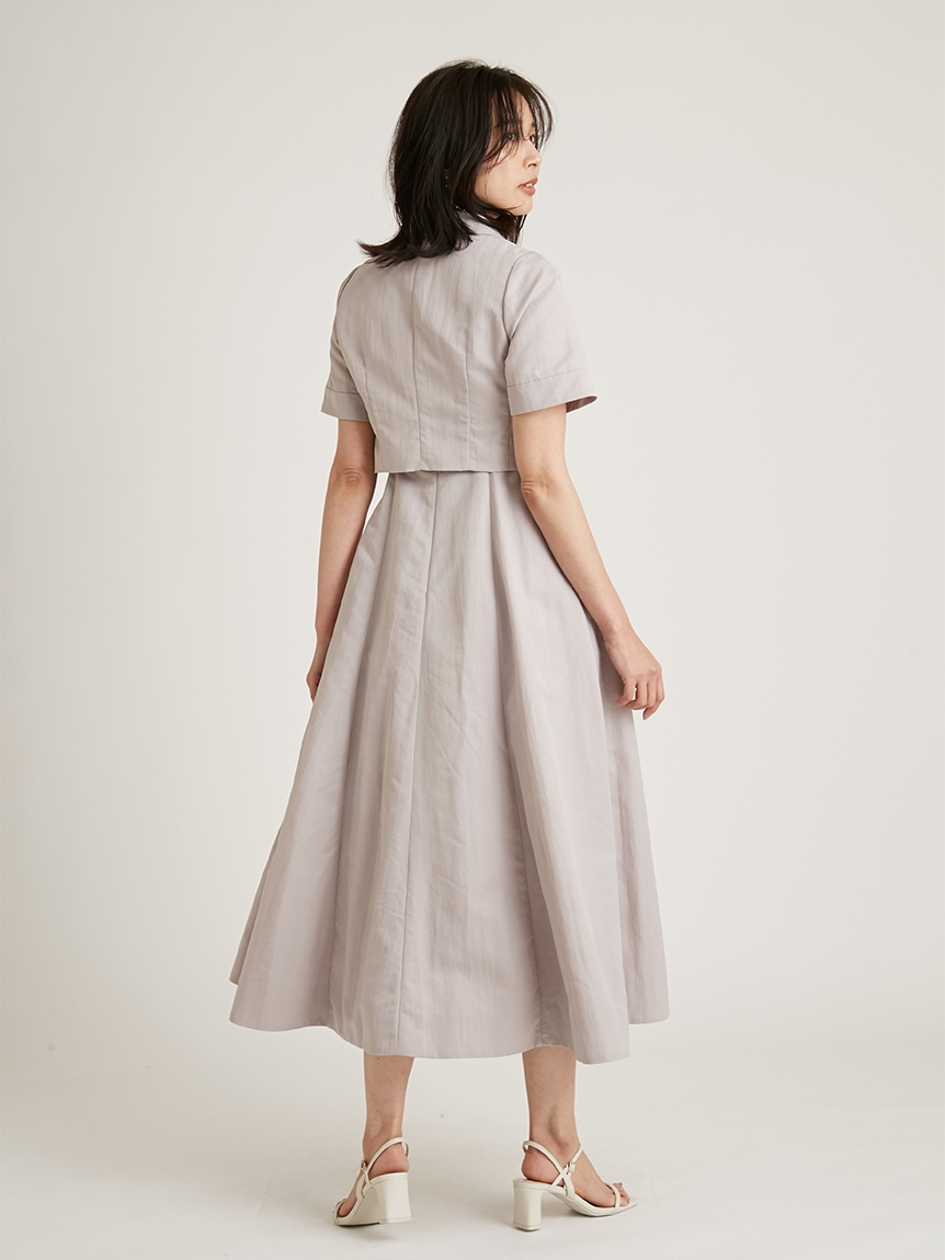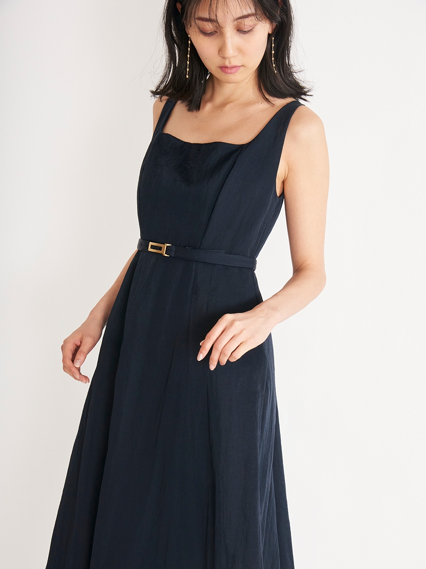 タイトな身頃から裾に向かってふんわりと広がる立体的なフレアラインが印象的。クラシカルなフィット&フレアシルエットで上品に仕上げた、オケージョンシーンにぴったりのワンピースが届きました。ゴールドバックルが光るベルトでウエストをマークすればより洗練された印象に。すっきりと開いたスクエアネックは同素材のジャケット(SWFJ222136)とバランスが良く、セットアップで着ていただくのもおすすめです。