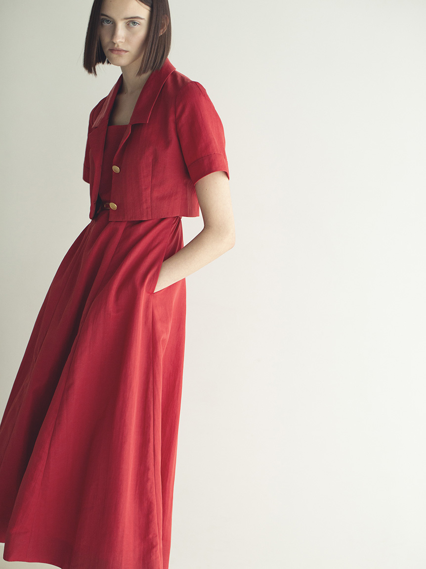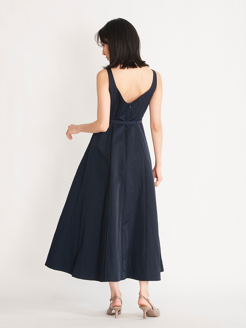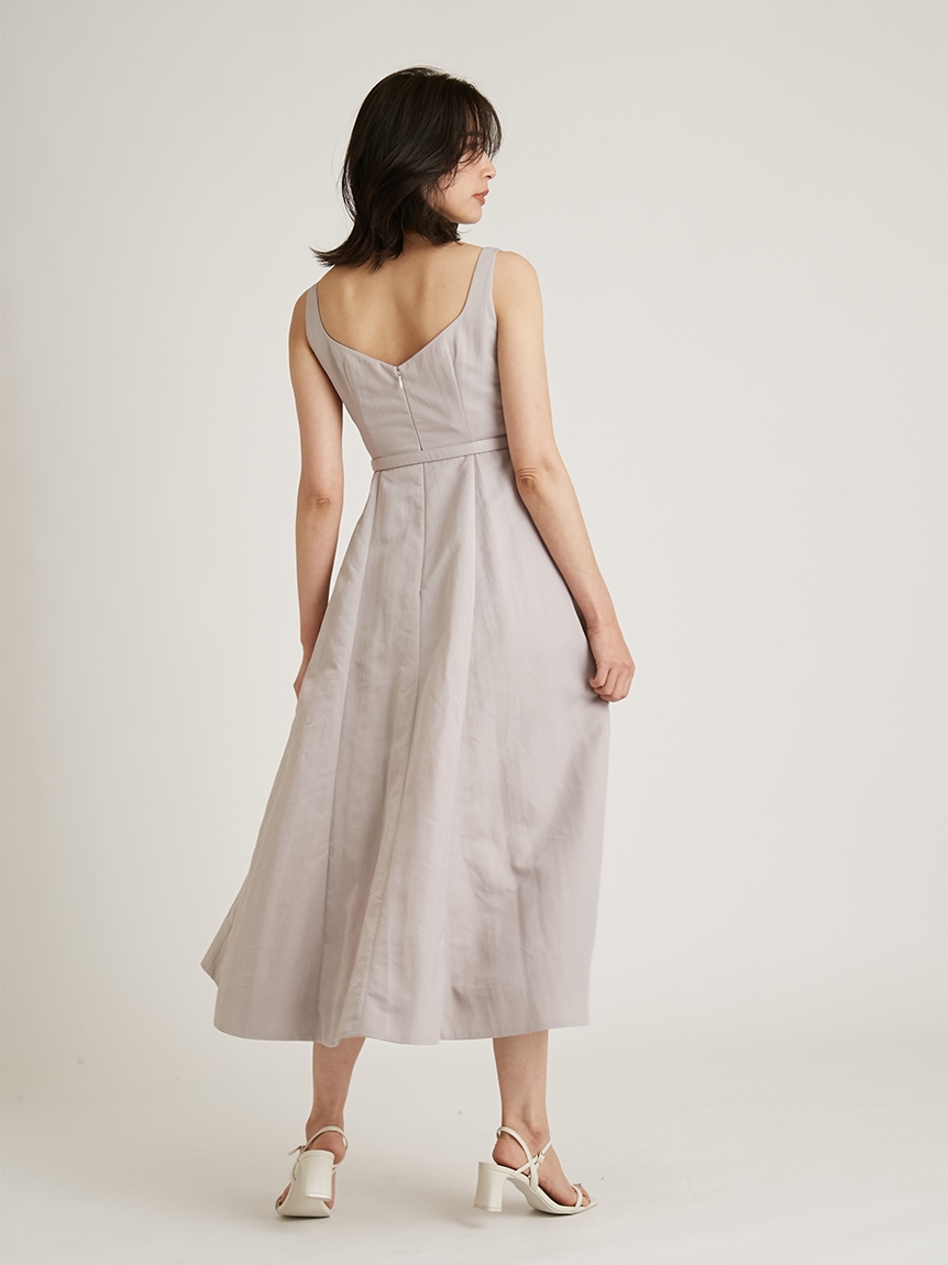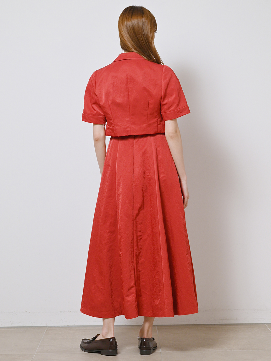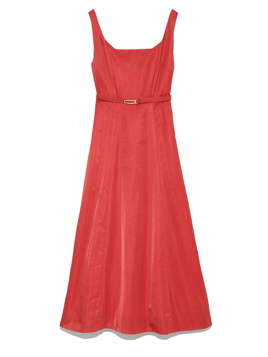 タイトな身頃から裾に向かってふんわりと広がる立体的なフレアラインが印象的。クラシカルなフィット&フレアシルエットで上品に仕上げた、オケージョンシーンにぴったりのワンピースが届きました。ゴールドバックルが光るベルトでウエストをマークすればより洗練された印象に。すっきりと開いたスクエアネックは同素材のジャケット(SWFJ222136)とバランスが良く、セットアップで着ていただくのもおすすめです。