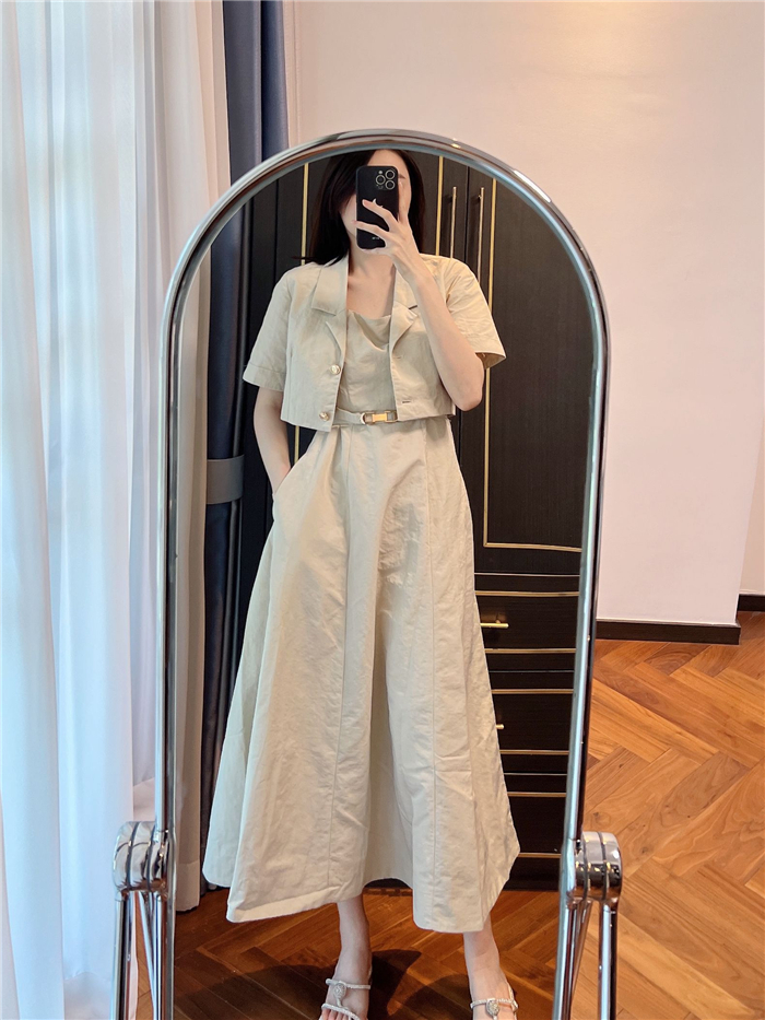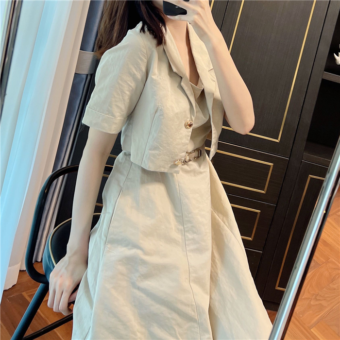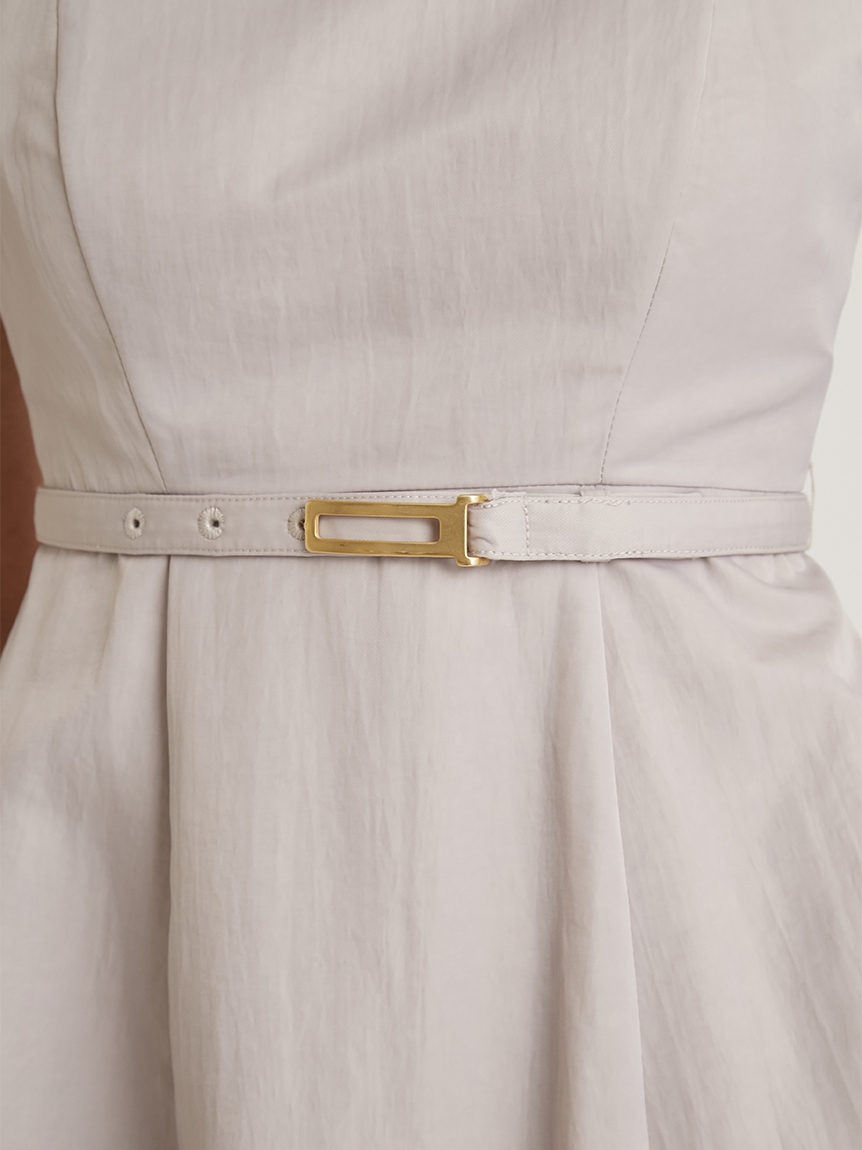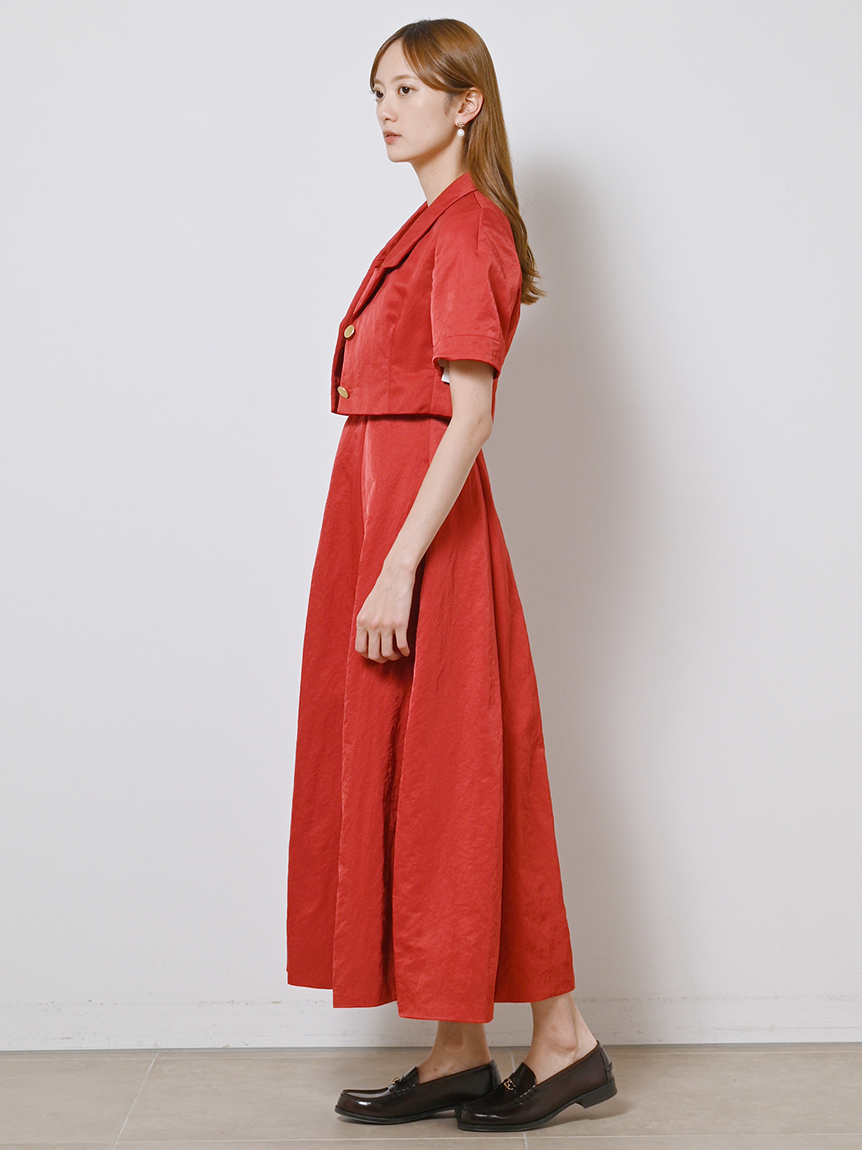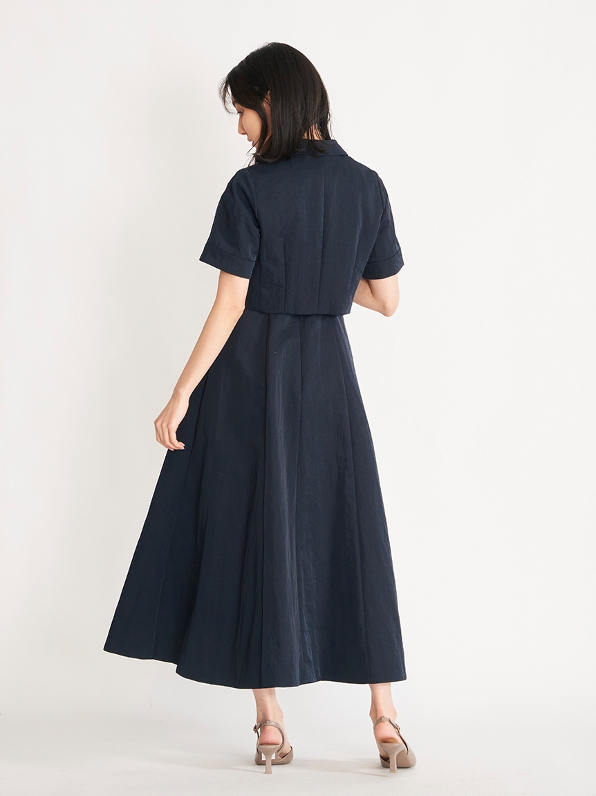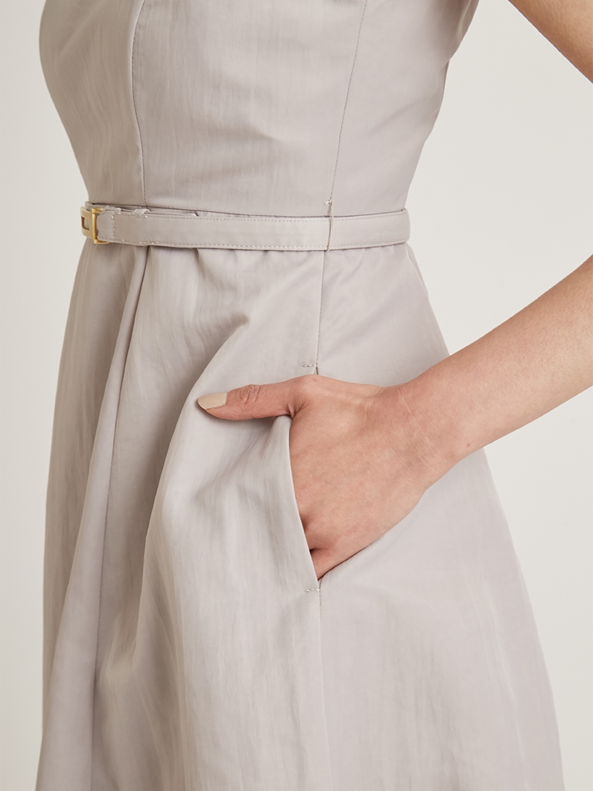 タイトな身頃から裾に向かってふんわりと広がる立体的なフレアラインが印象的。クラシカルなフィット&フレアシルエットで上品に仕上げた、オケージョンシーンにぴったりのワンピースが届きました。ゴールドバックルが光るベルトでウエストをマークすればより洗練された印象に。すっきりと開いたスクエアネックは同素材のジャケット(SWFJ222136)とバランスが良く、セットアップで着ていただくのもおすすめです。
